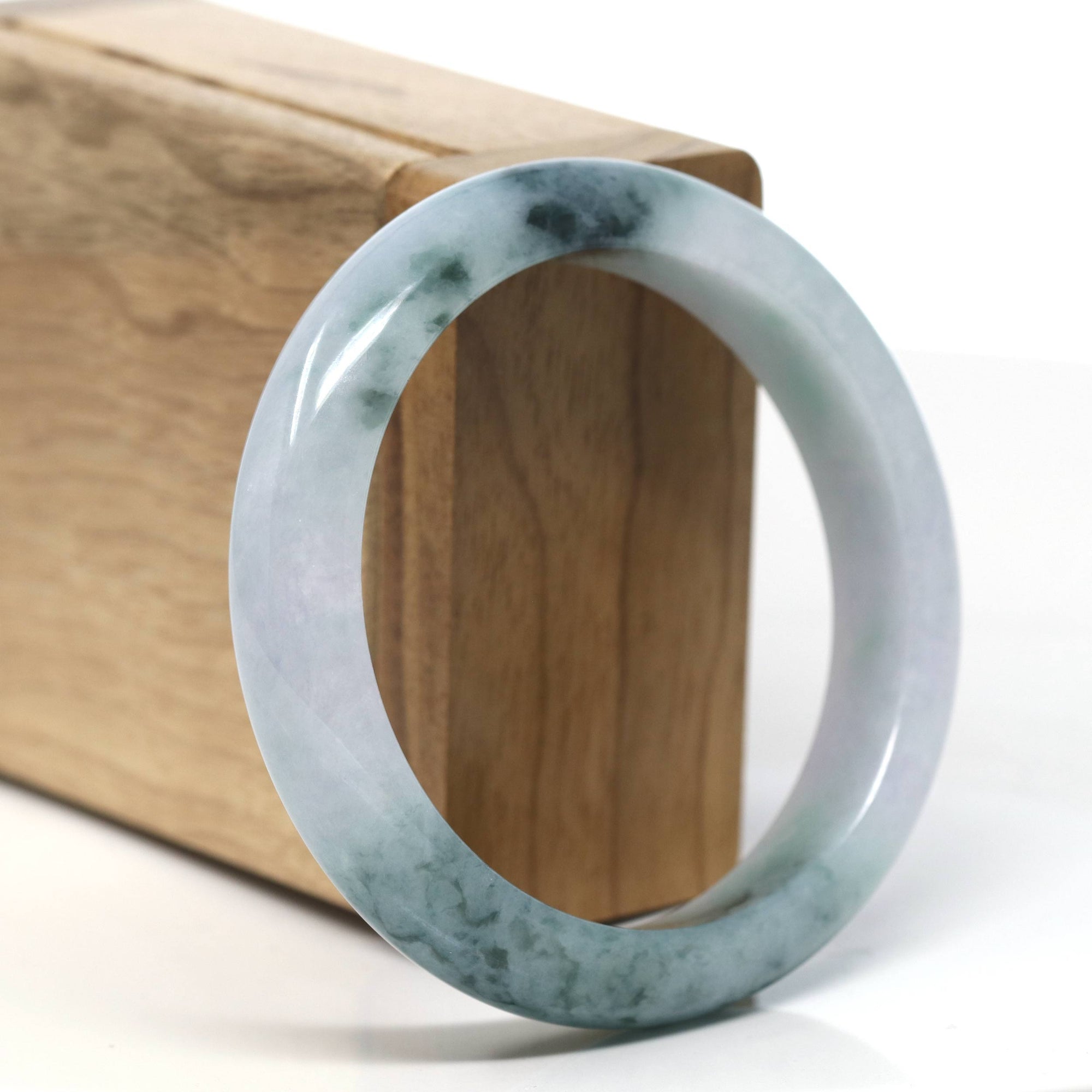 Baikalla High End Natural Jadeite Jade Light Lavender Blue Green Flower Bangle Bracelet (56 mm)#T760