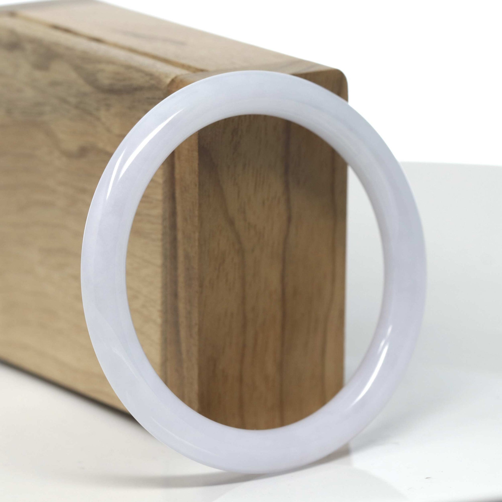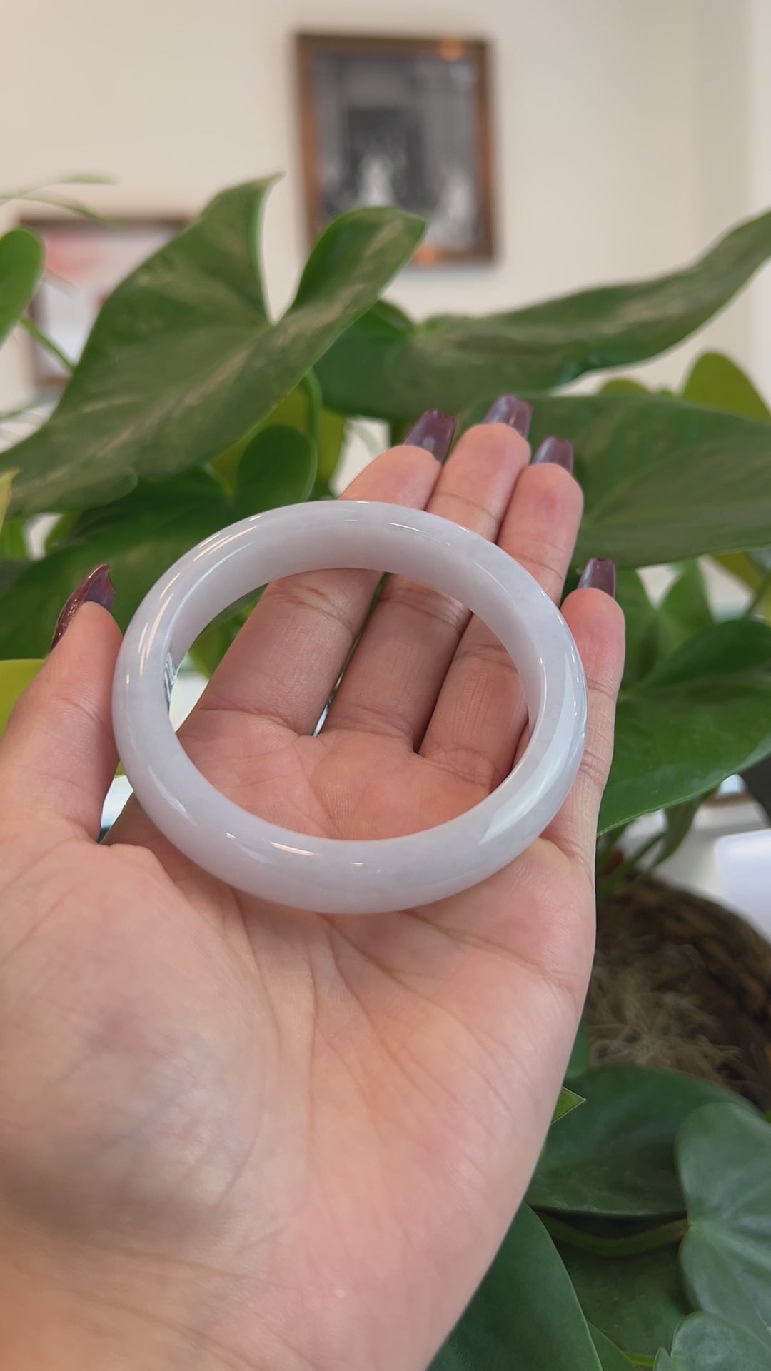 Genuine Burmese Jadeite Jade White-Lavender Bangle Bracelet (56.08 mm) #T129