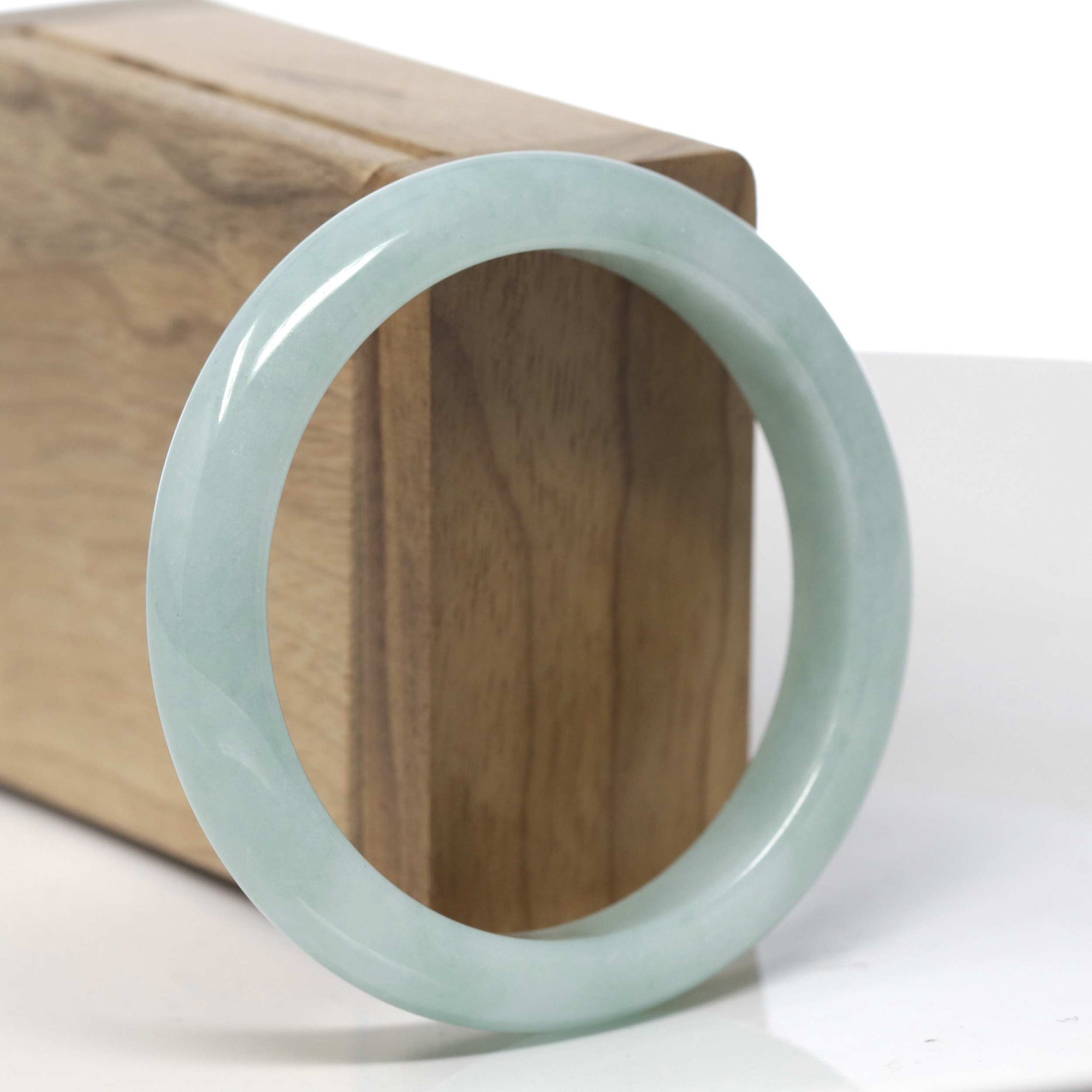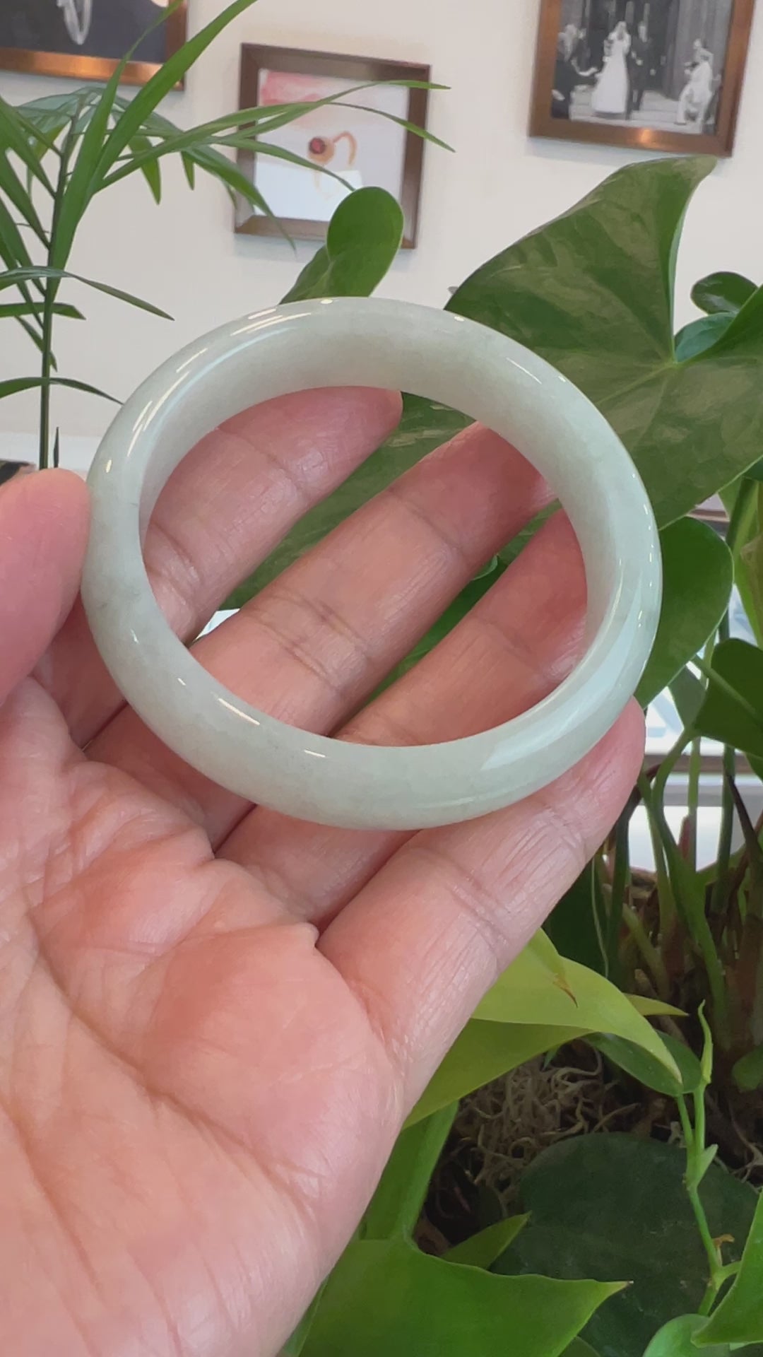 Natural Burmese Light Icy Green Jadeite Jade Traditional Bangle Bracelet (56.4 mm) #T911