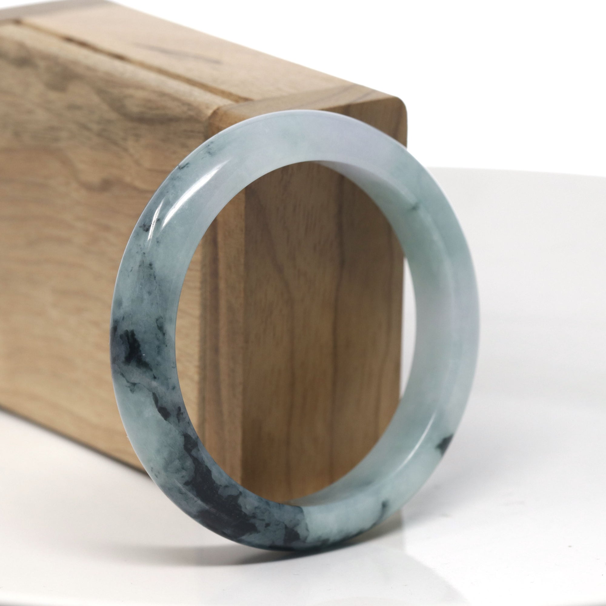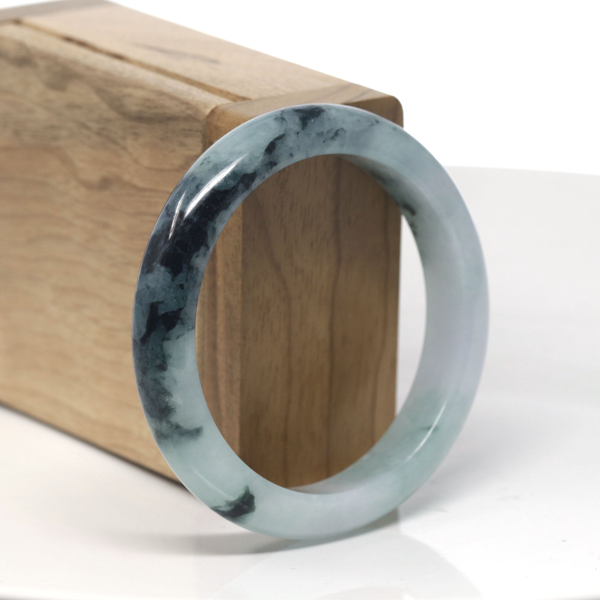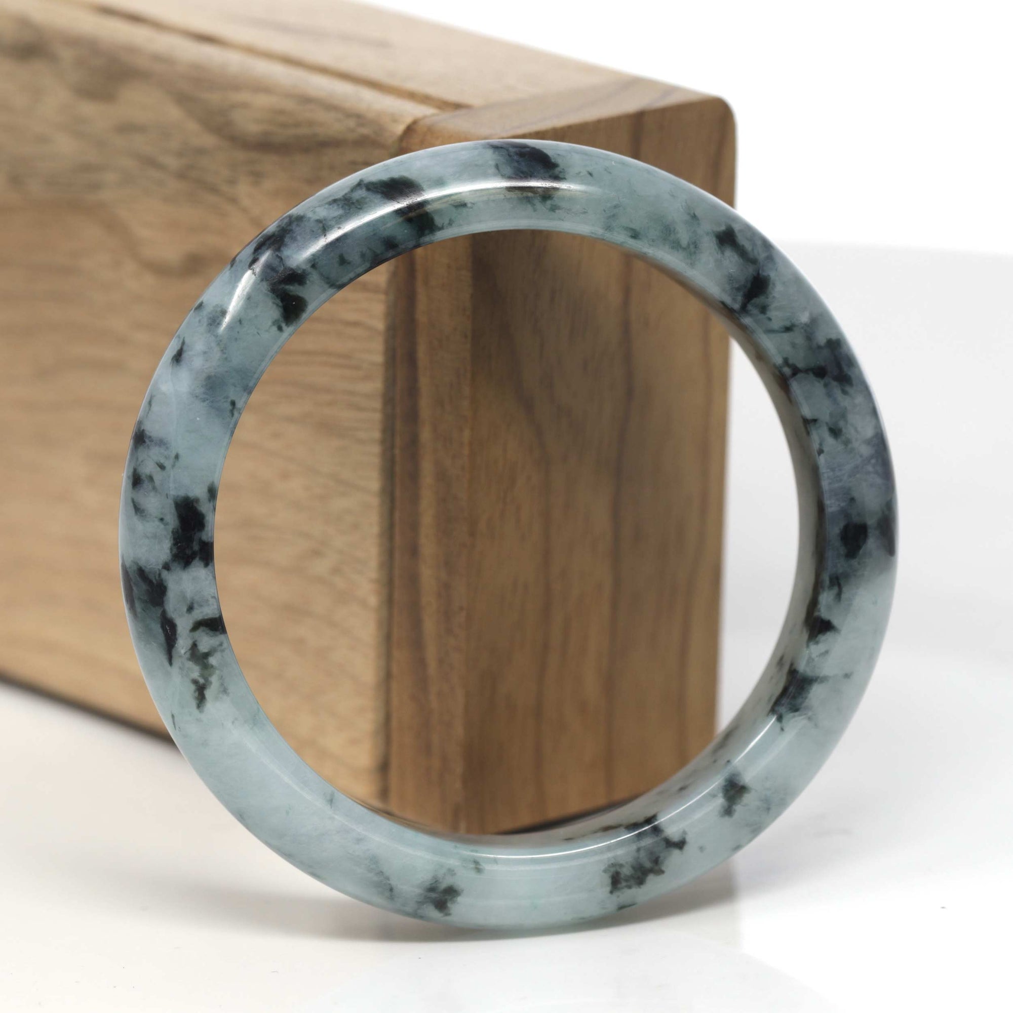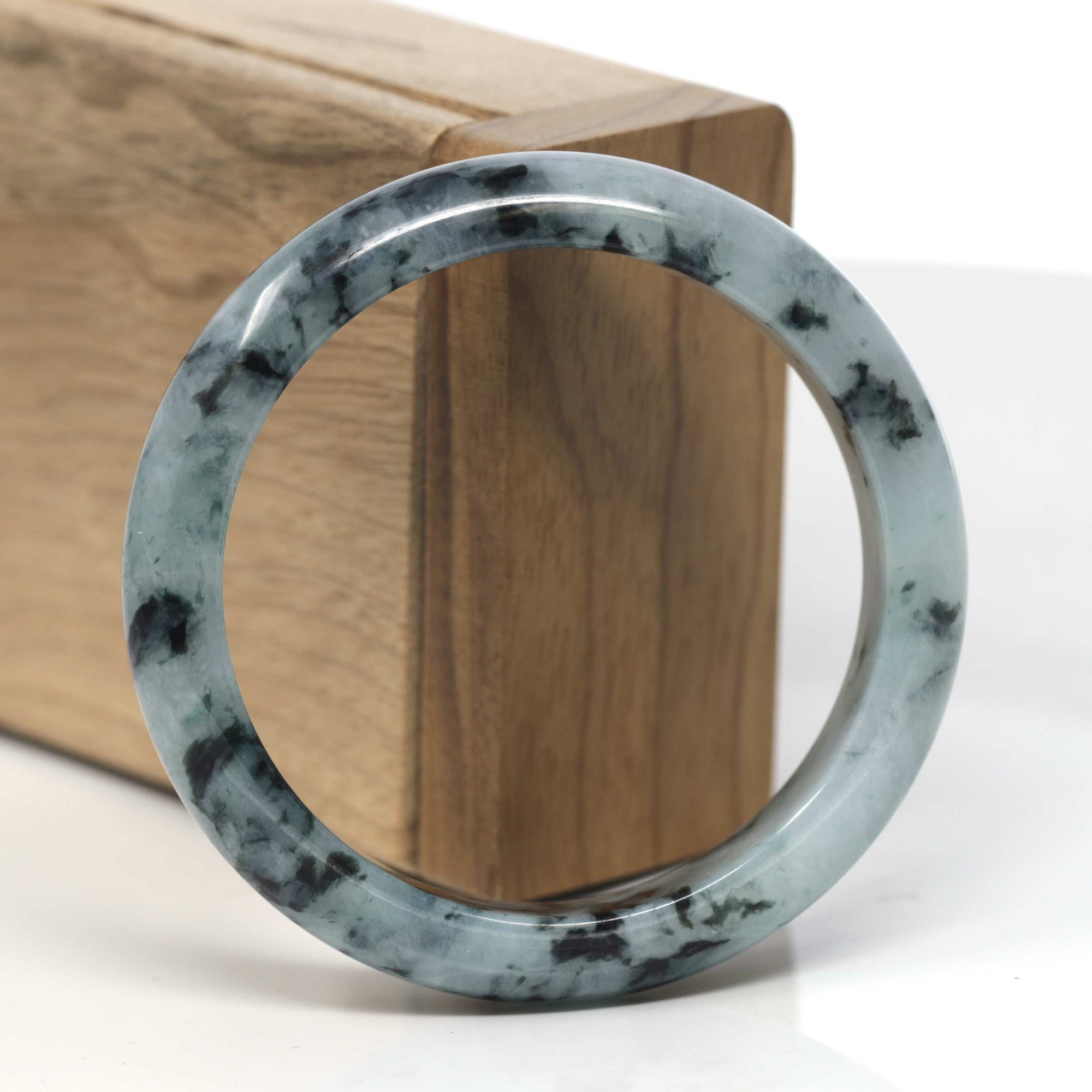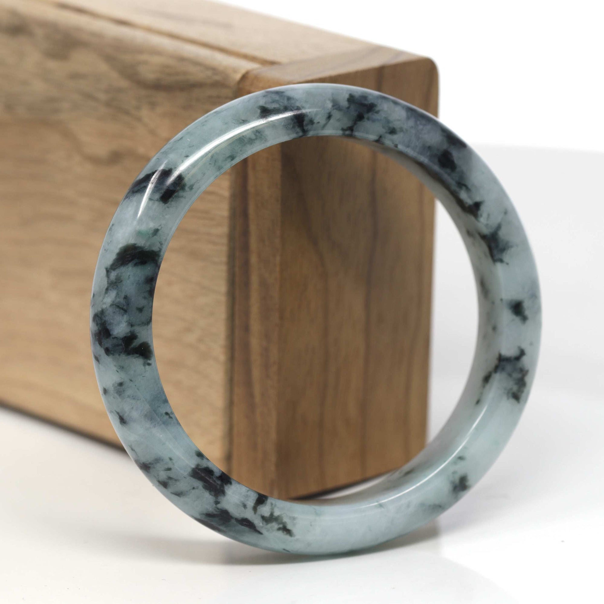 Baikalla Genuine Burmese Black Wuji Jadeite Jade Bangle Bracelet (55mm-59mm) #TT194