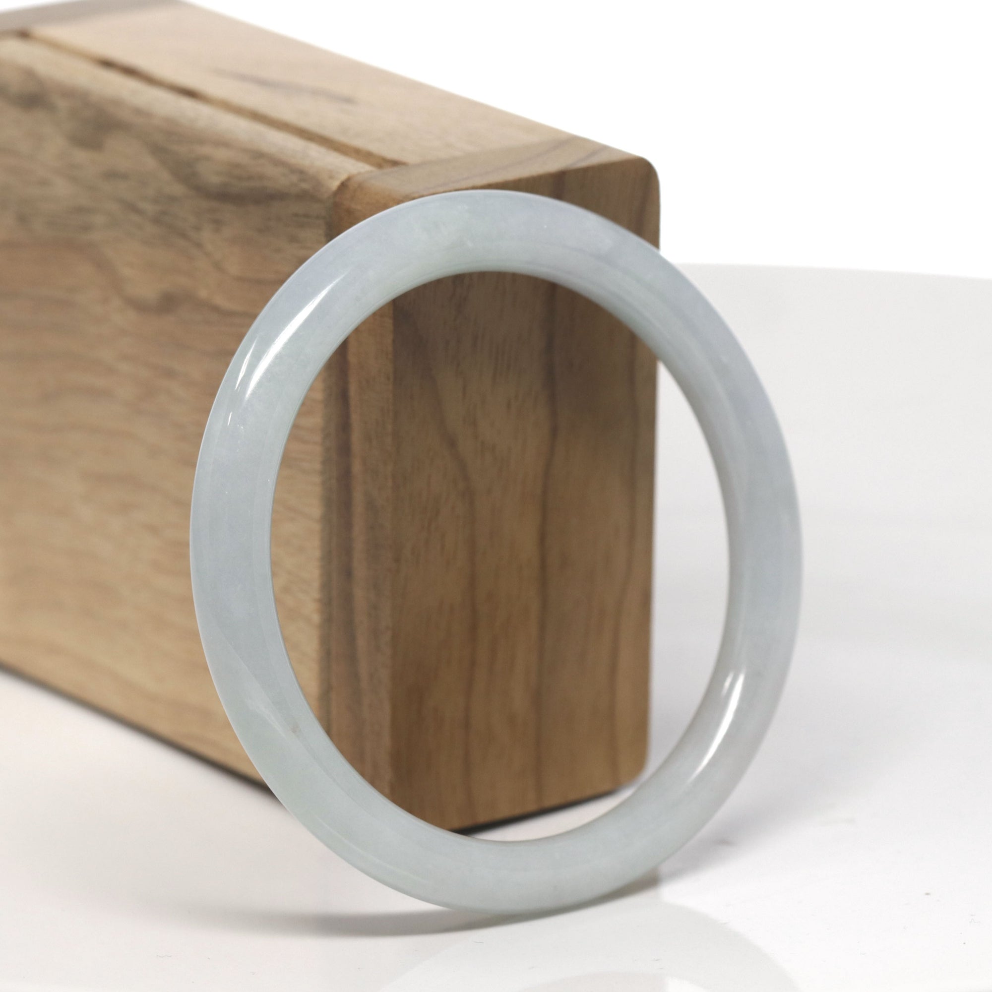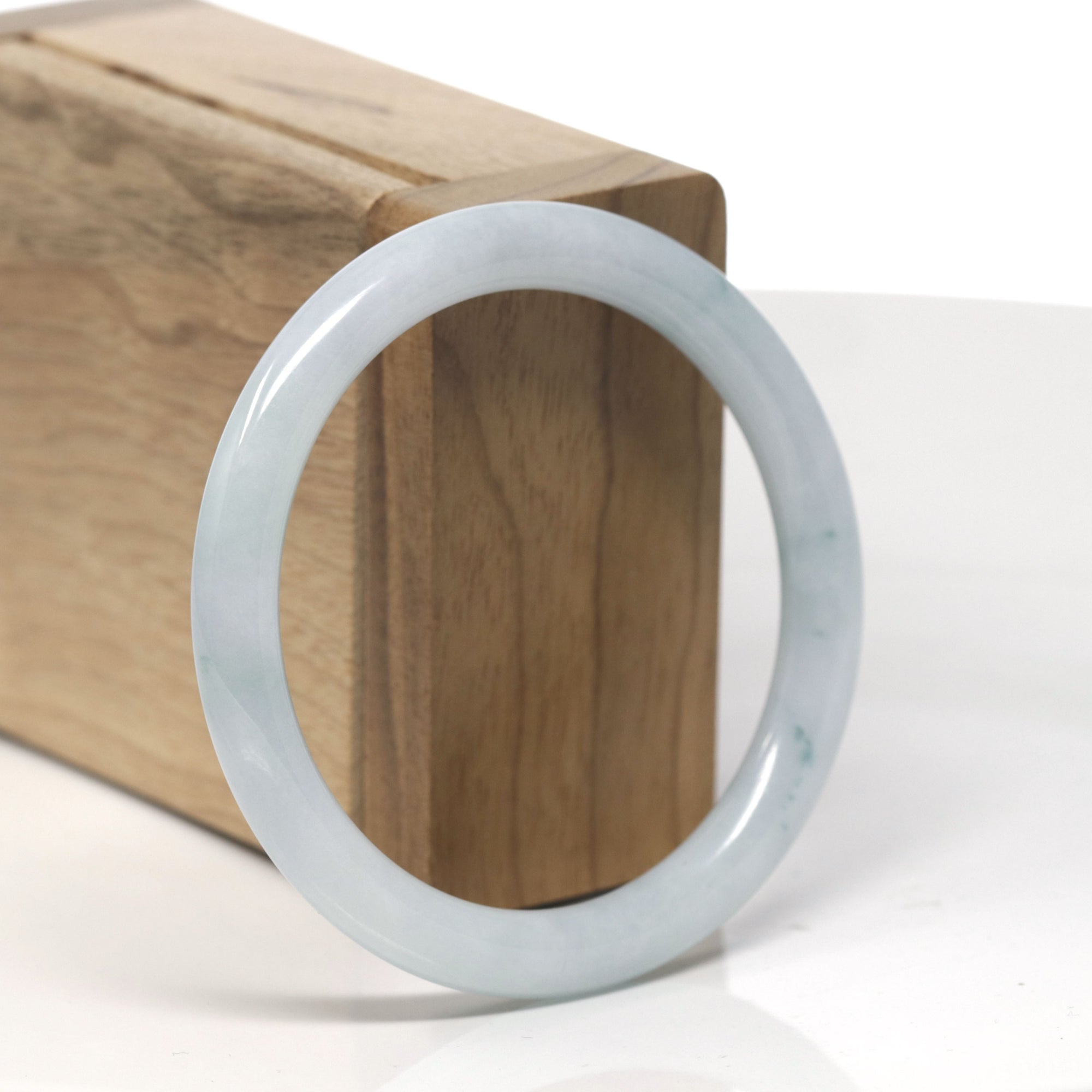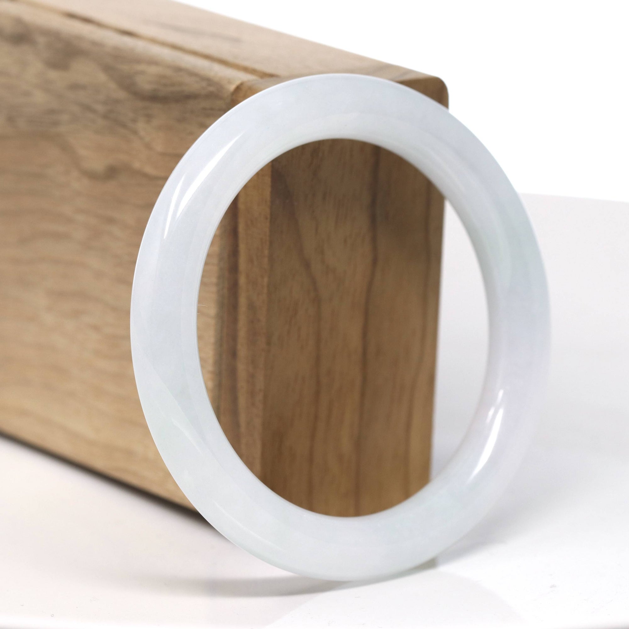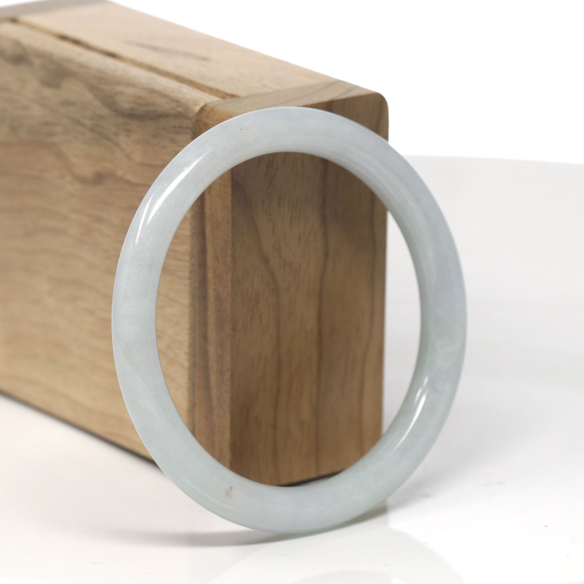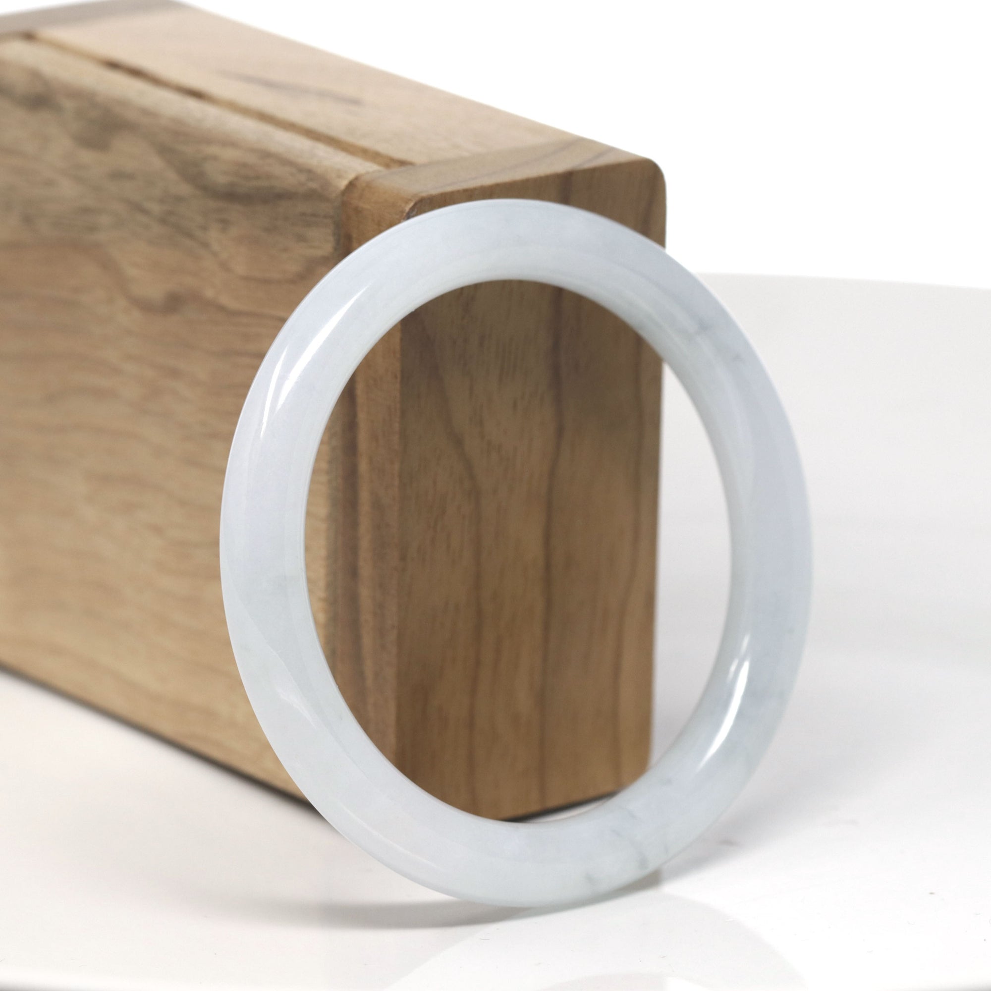 Baikalla Natural "Icy Moonlight" Jadeite Jade Traditional Round Bangle Bracelet (55 mm) #T964