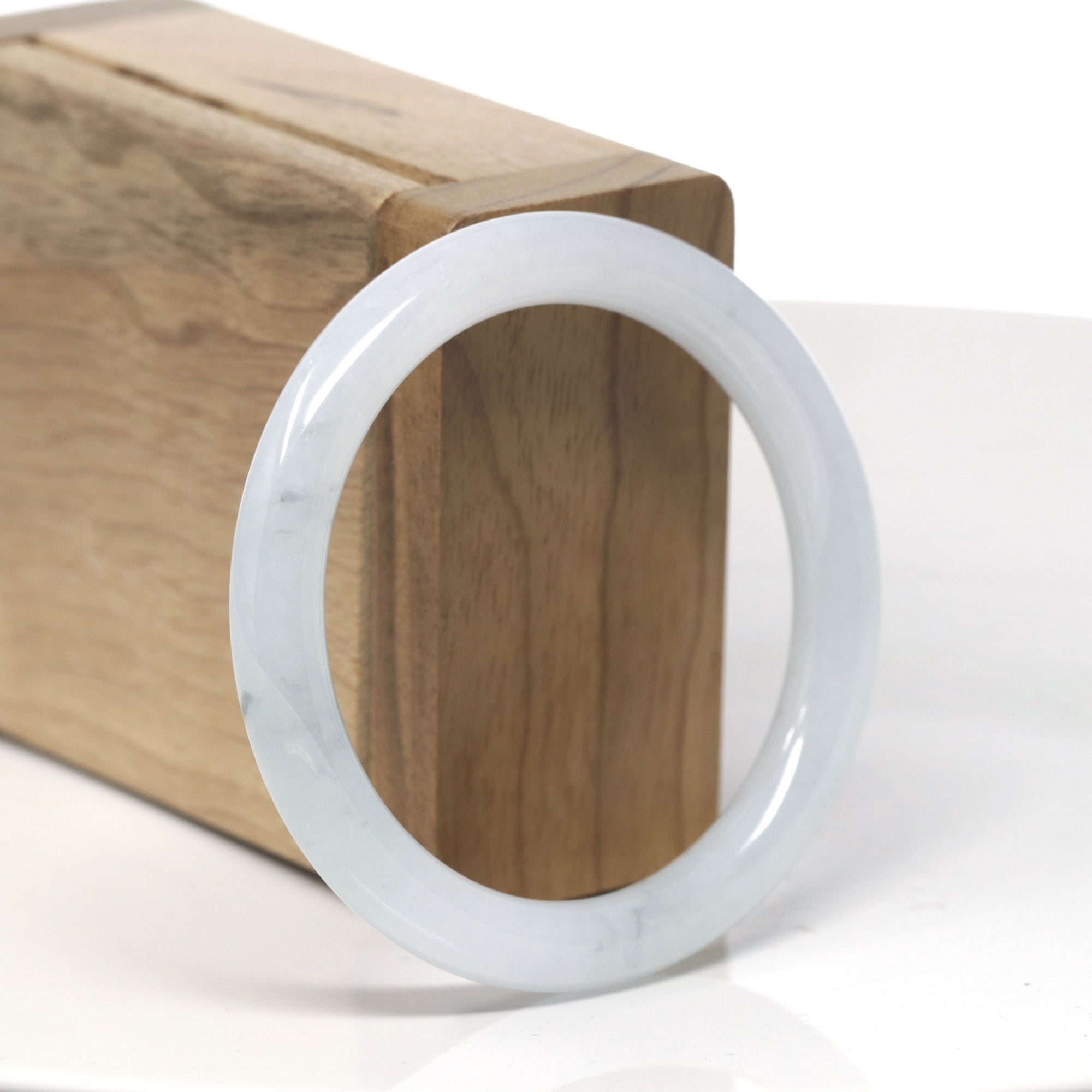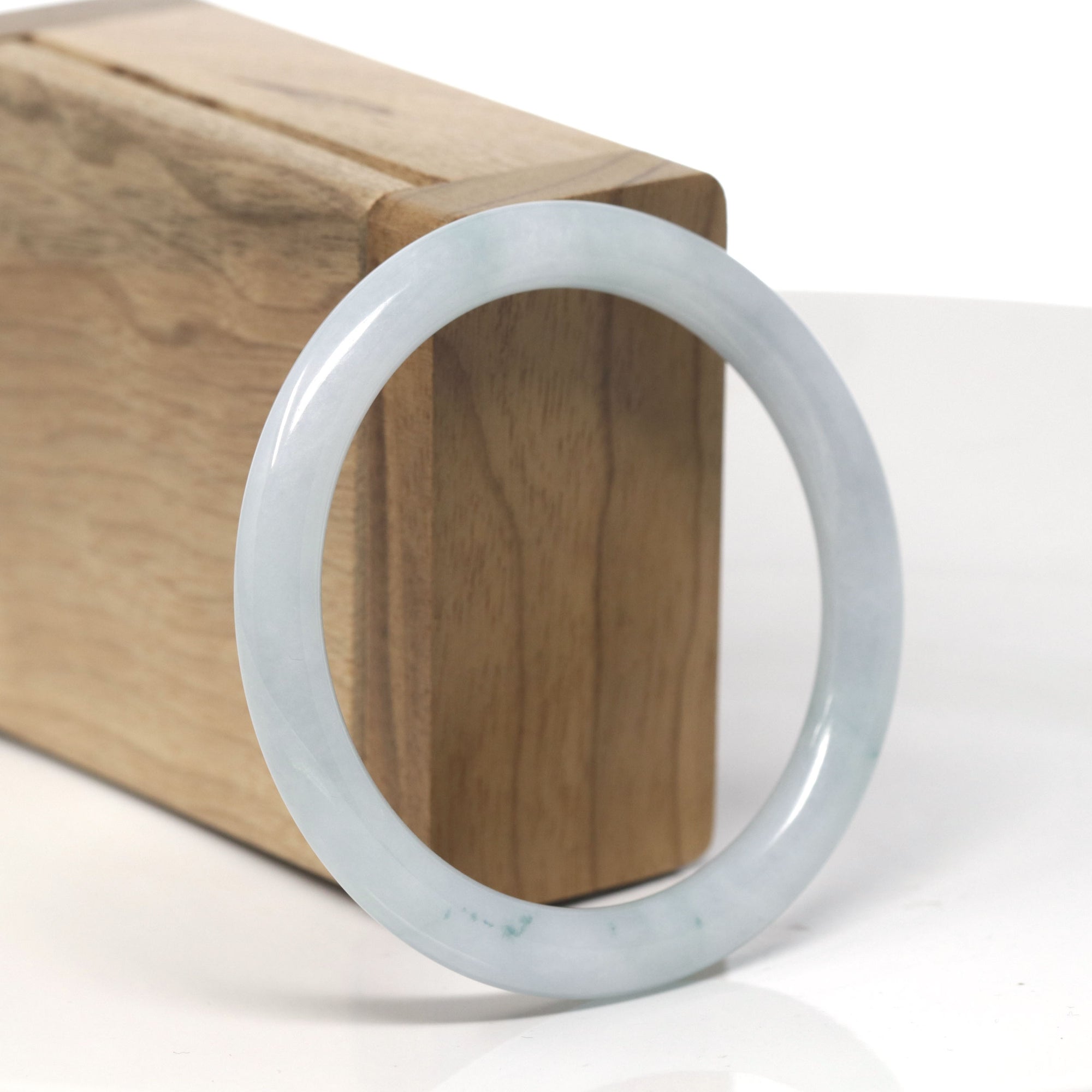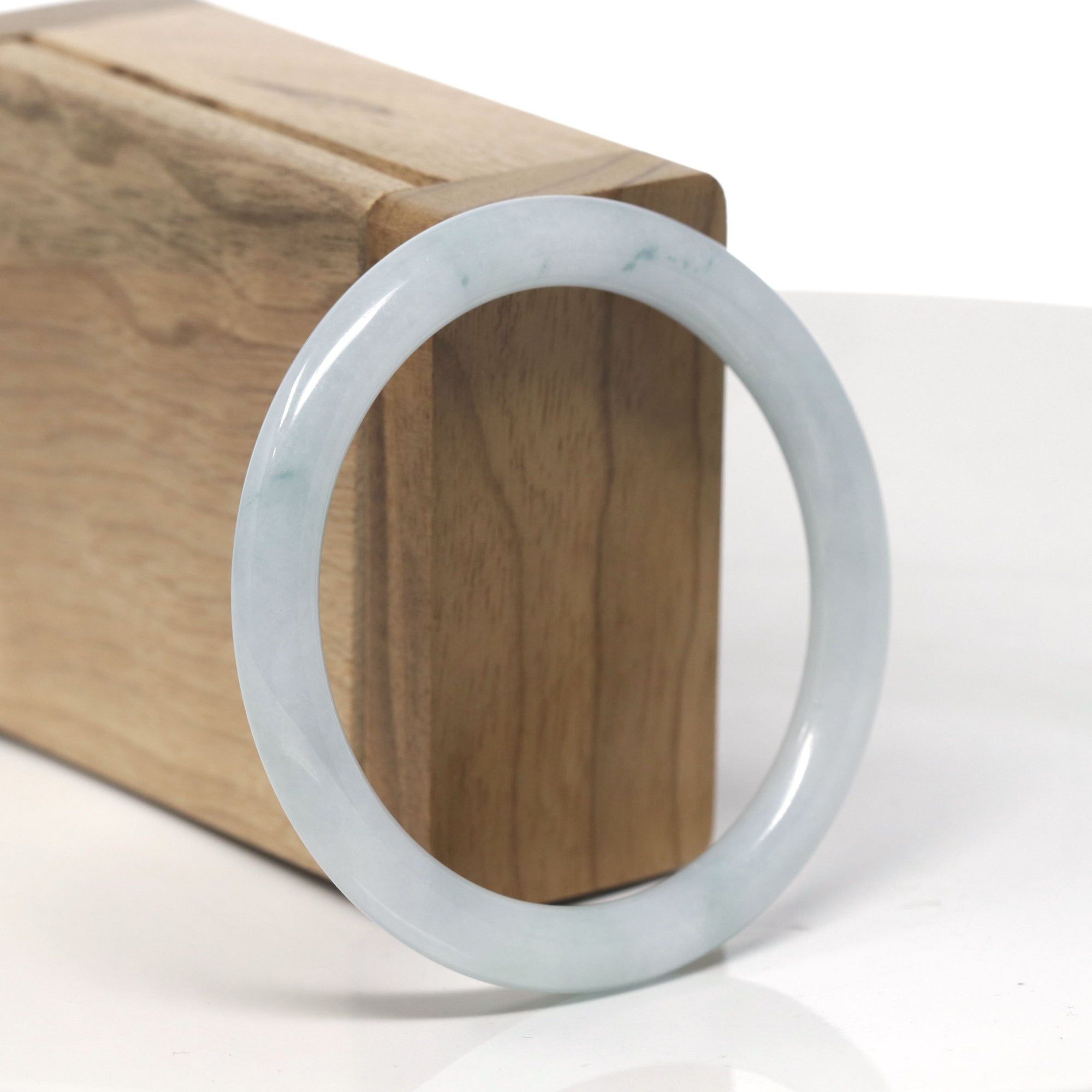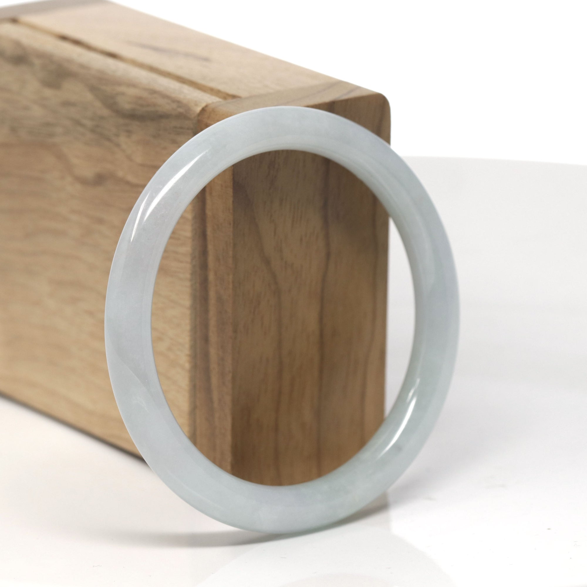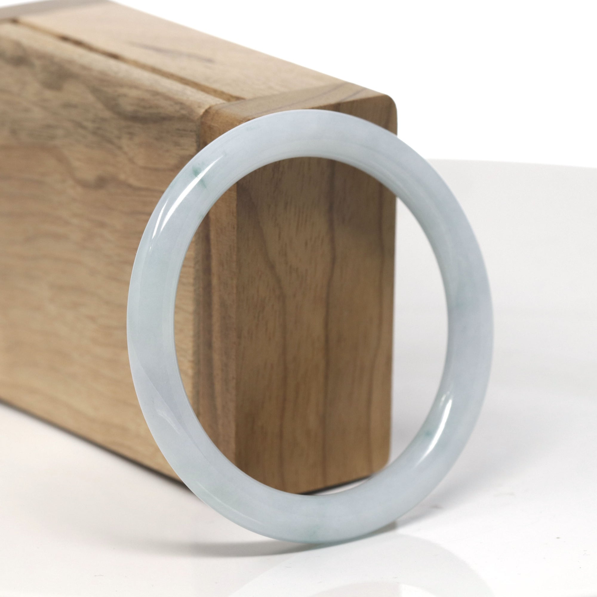 Baikalla Natural "Icy Moonlight" Jadeite Jade Traditional Round Bangle Bracelet (55 mm) #T964
