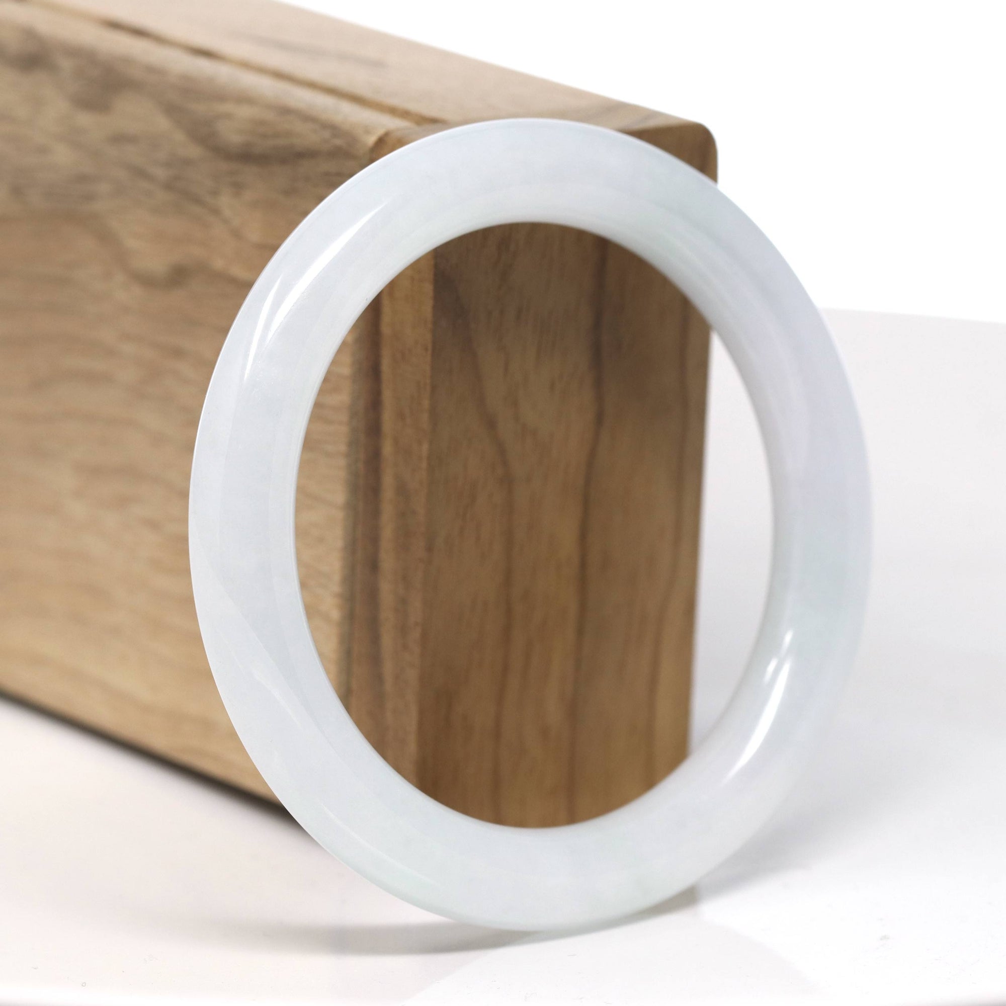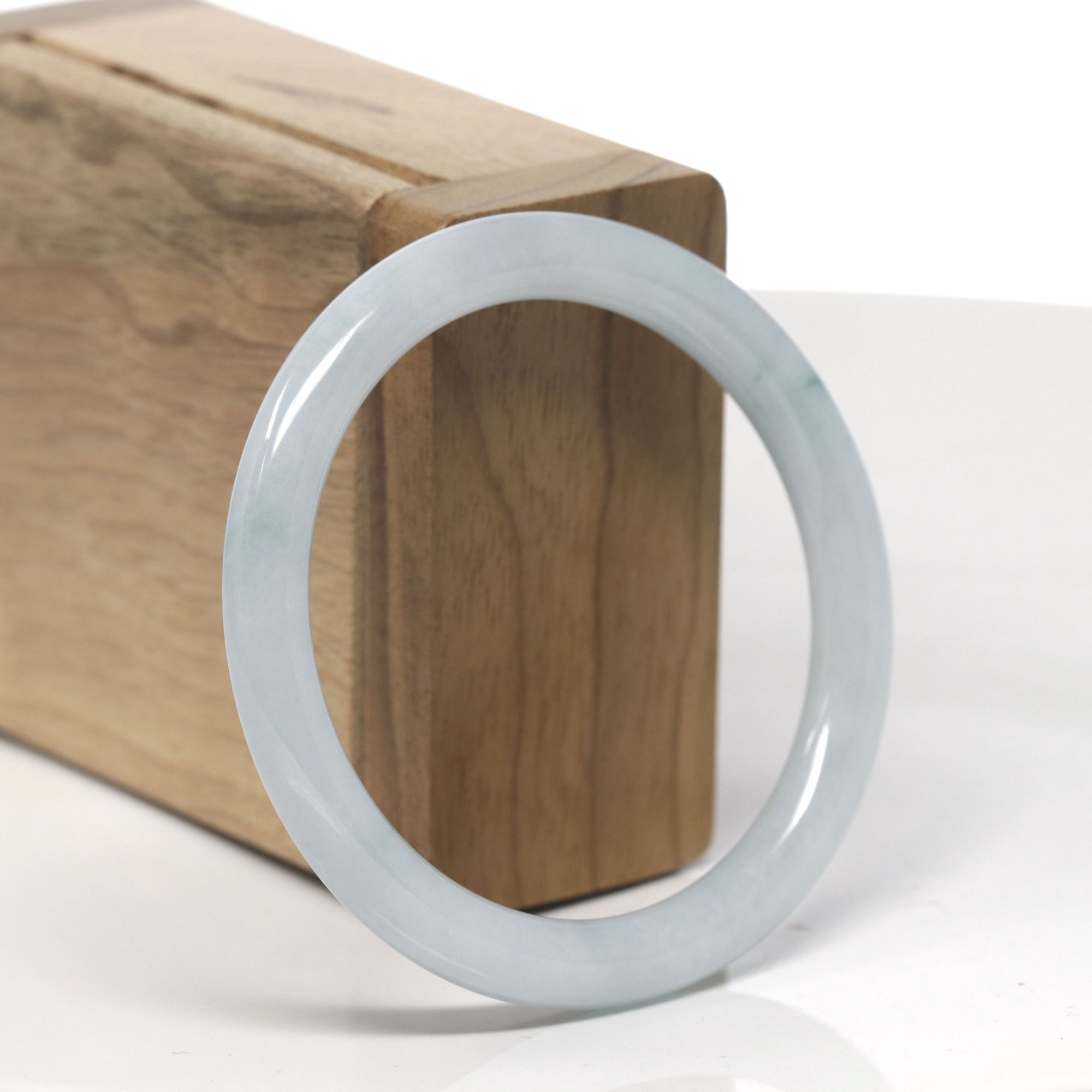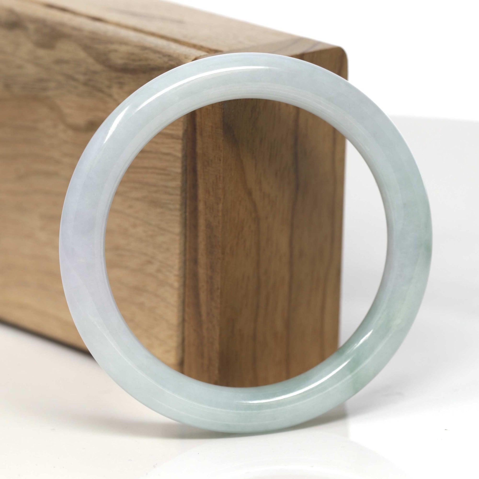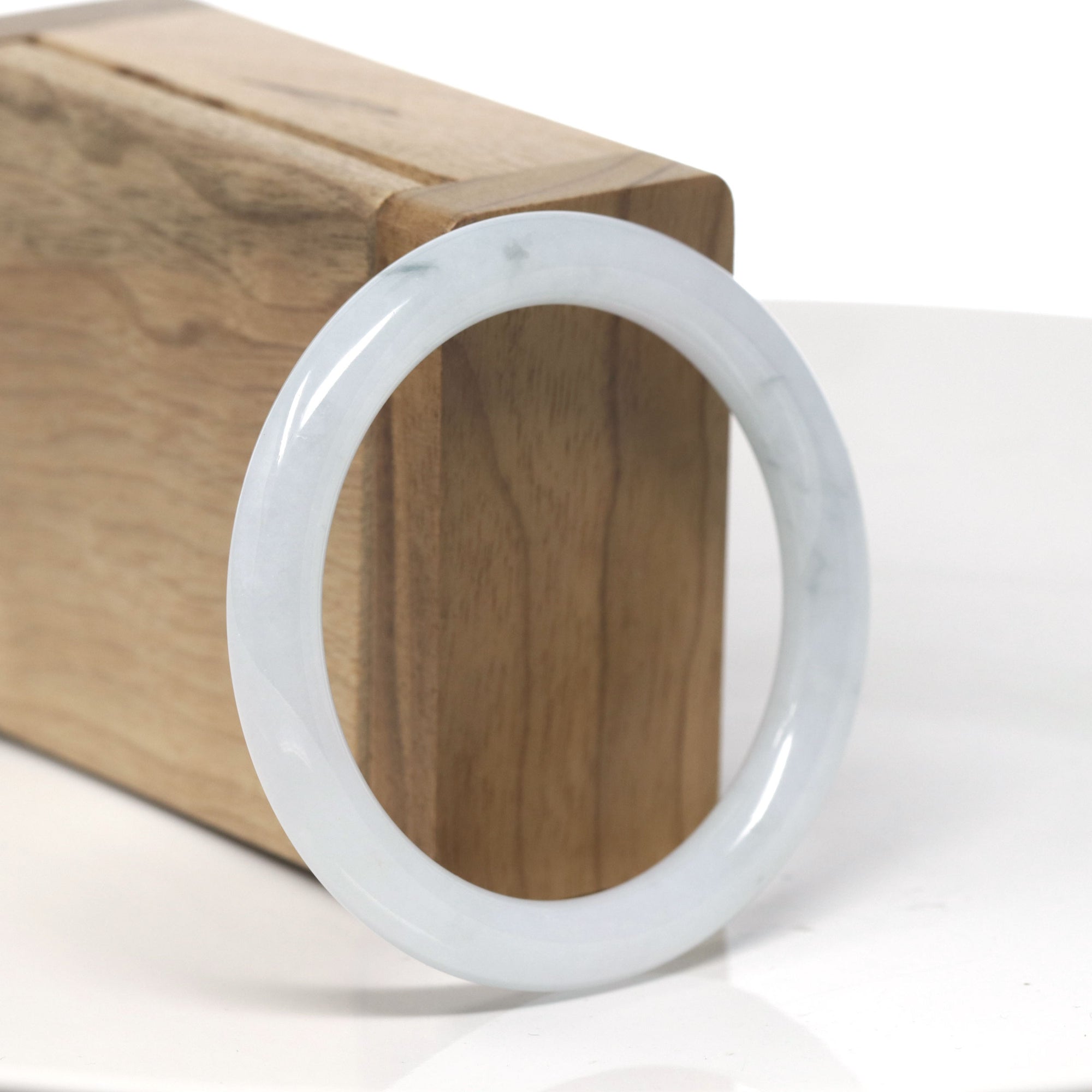 Baikalla Natural "Icy Moonlight" Jadeite Jade Traditional Round Bangle Bracelet (55 mm) #T964