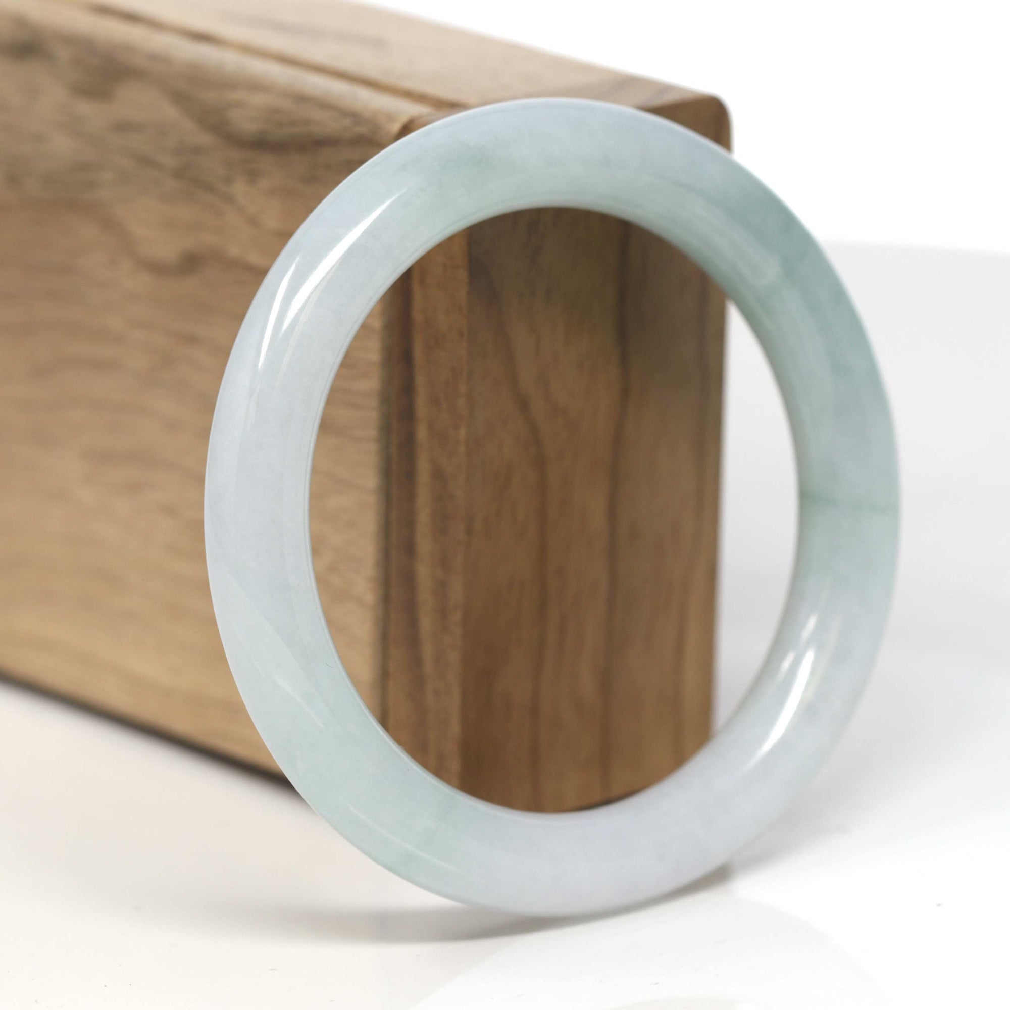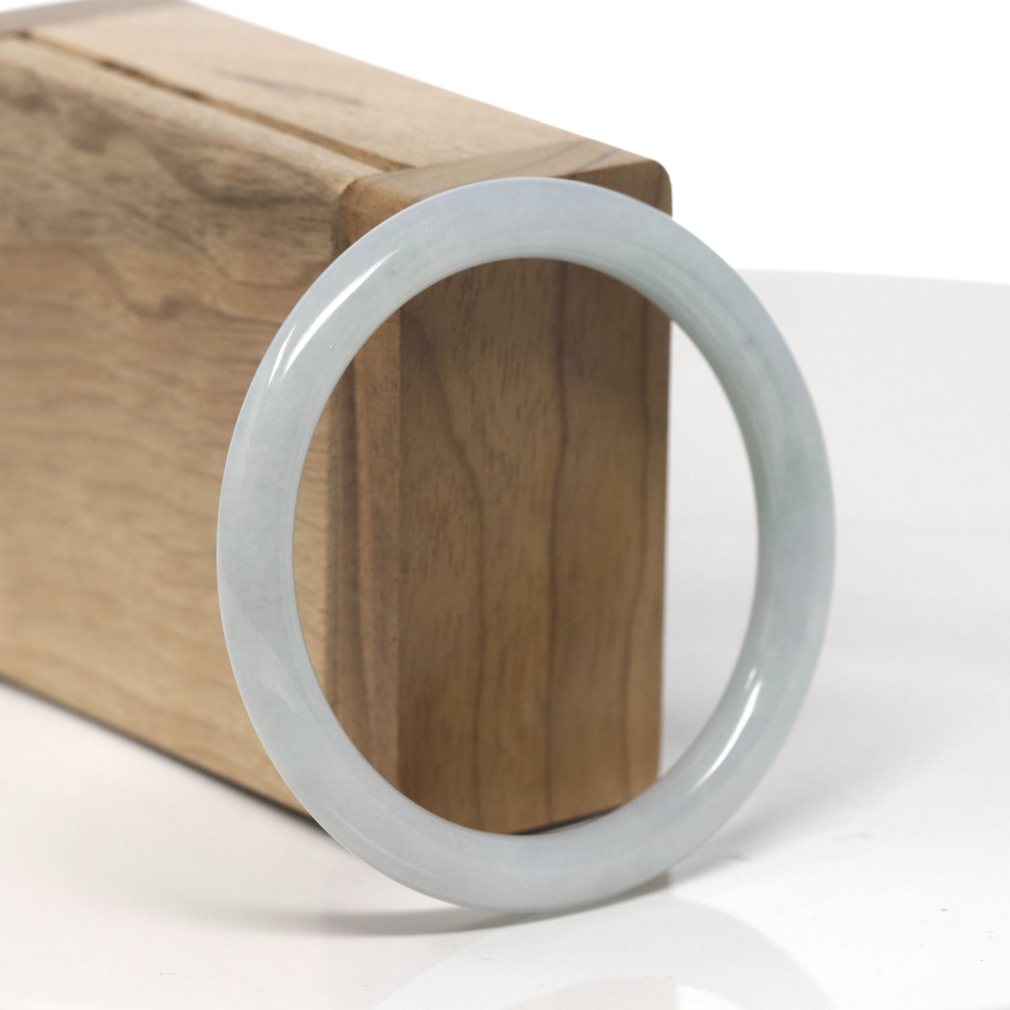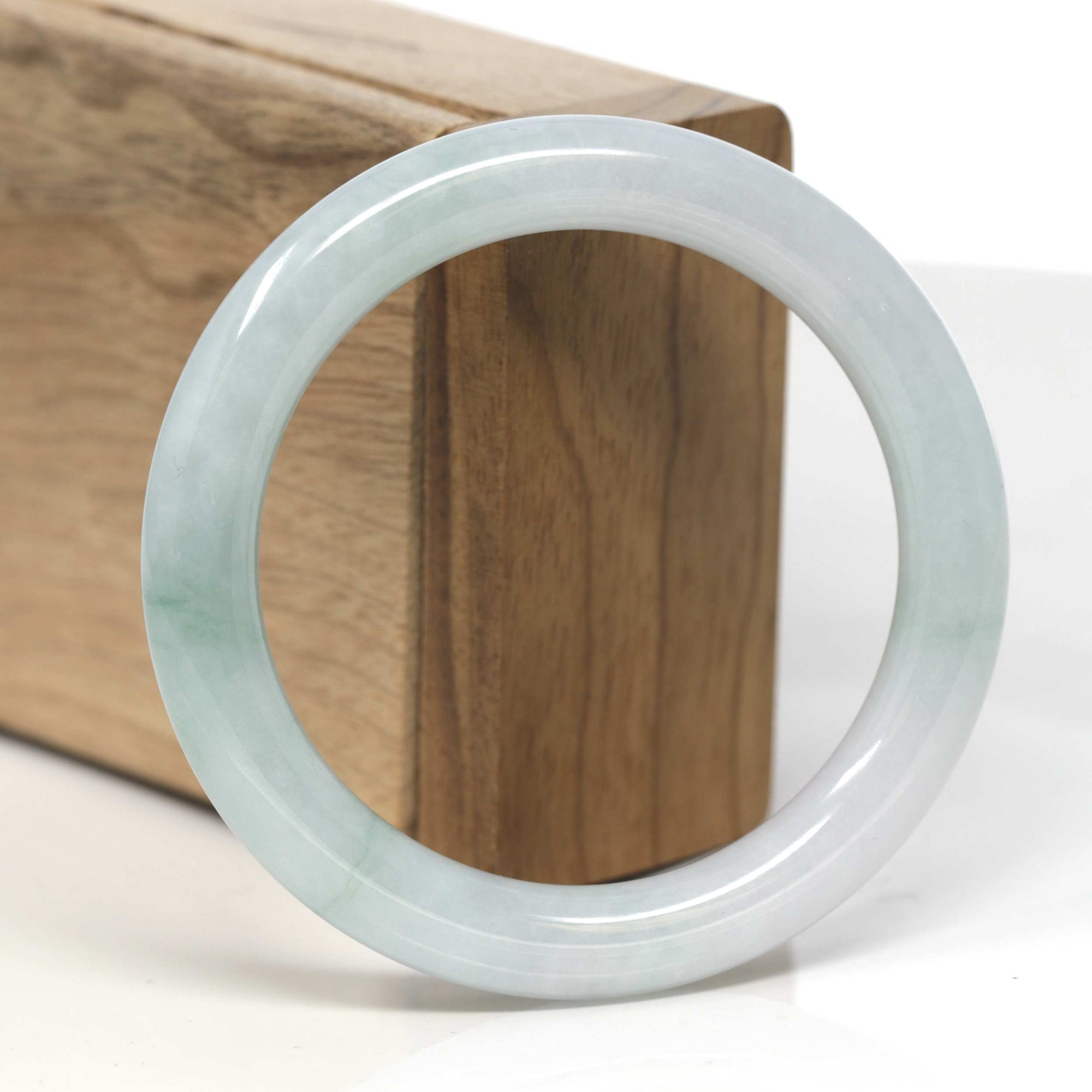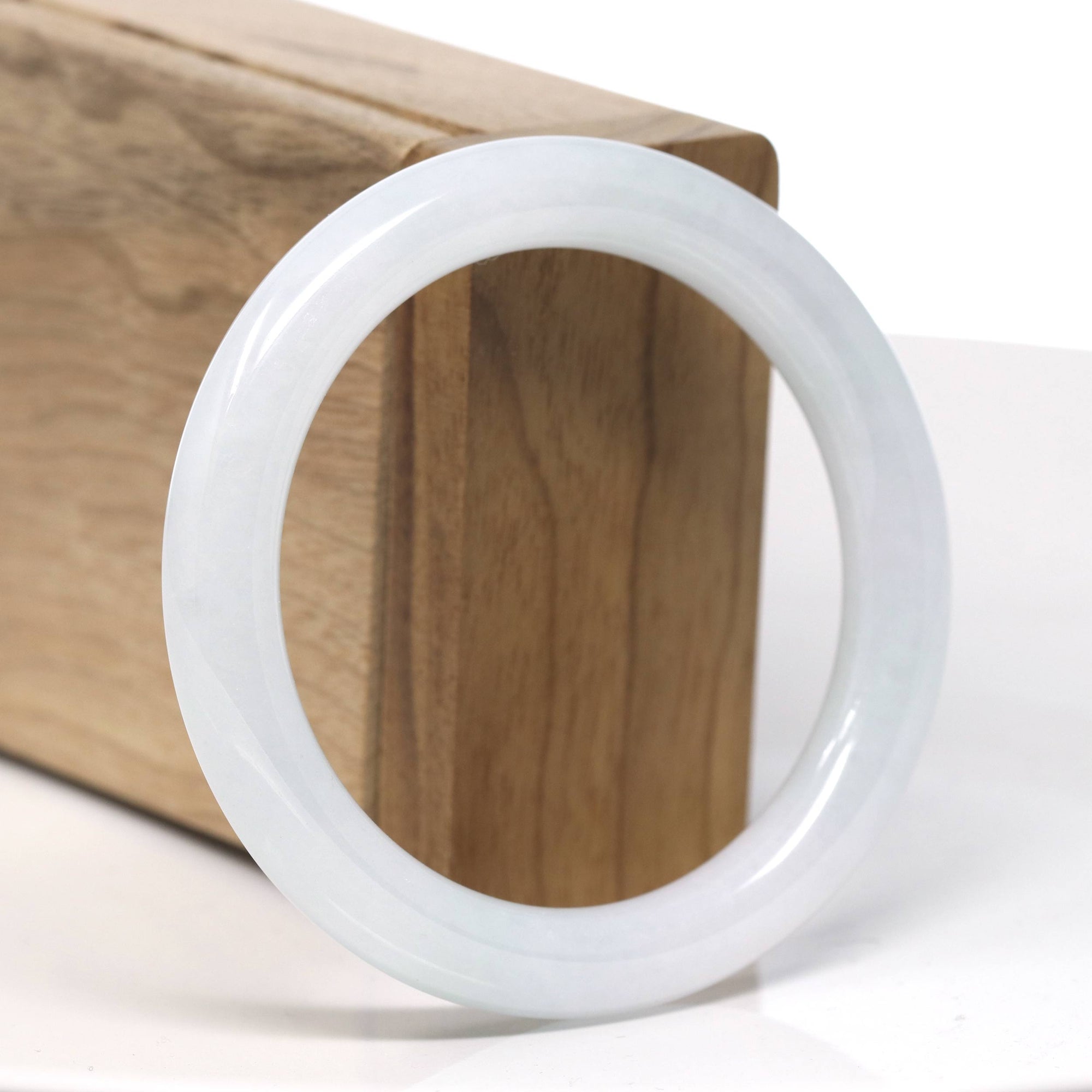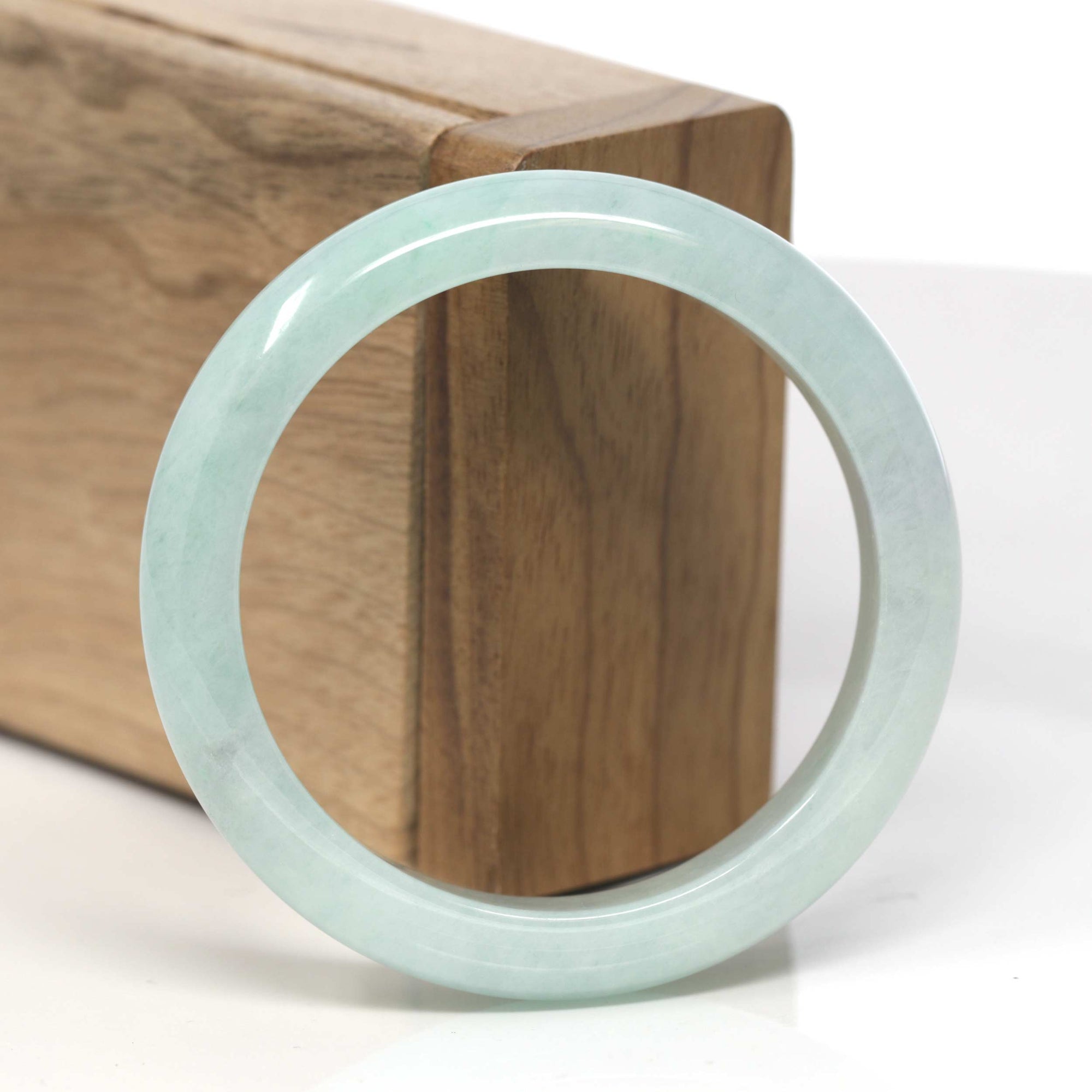 Baikalla Natural "Icy Moonlight" Jadeite Jade Traditional Round Bangle Bracelet (55 mm) #T964