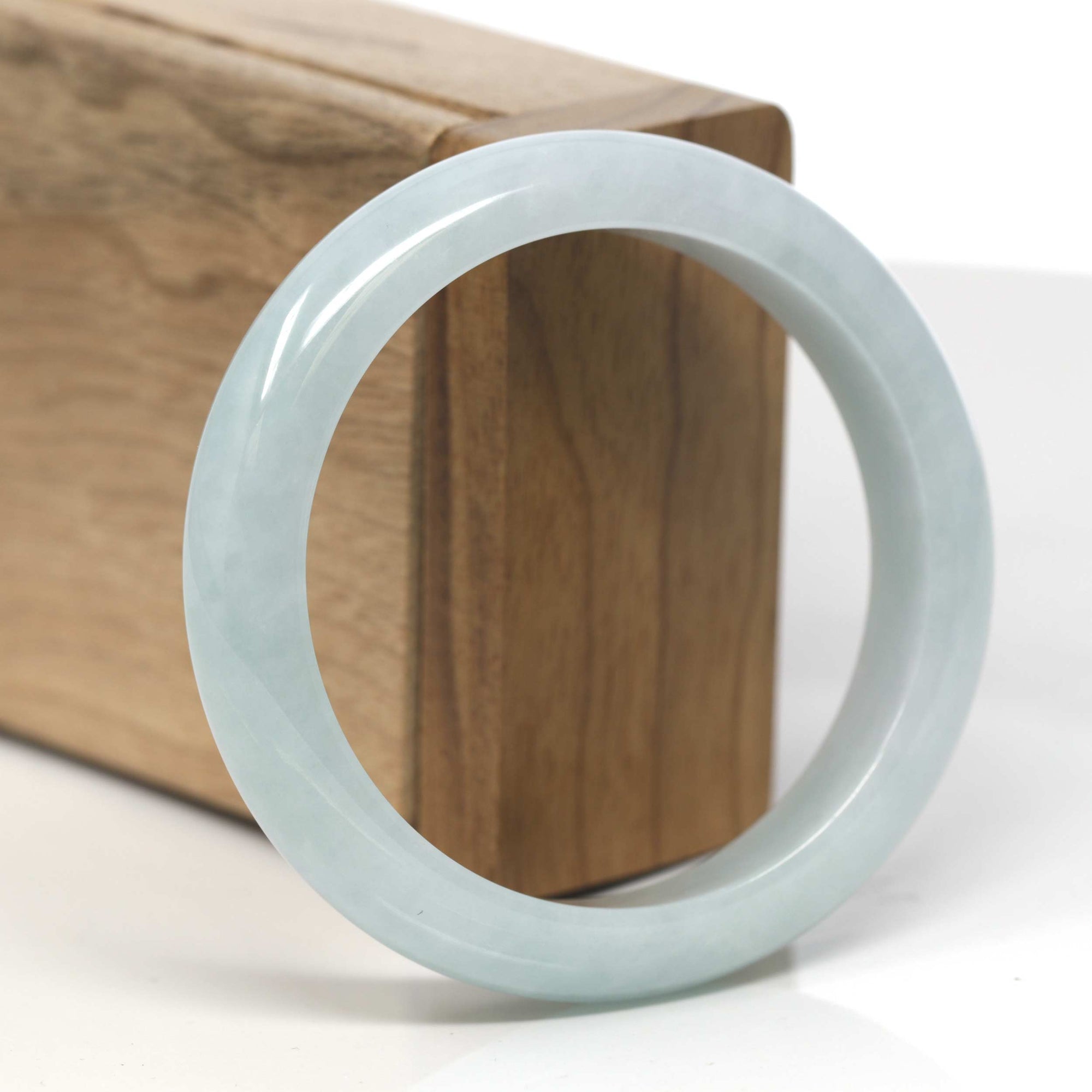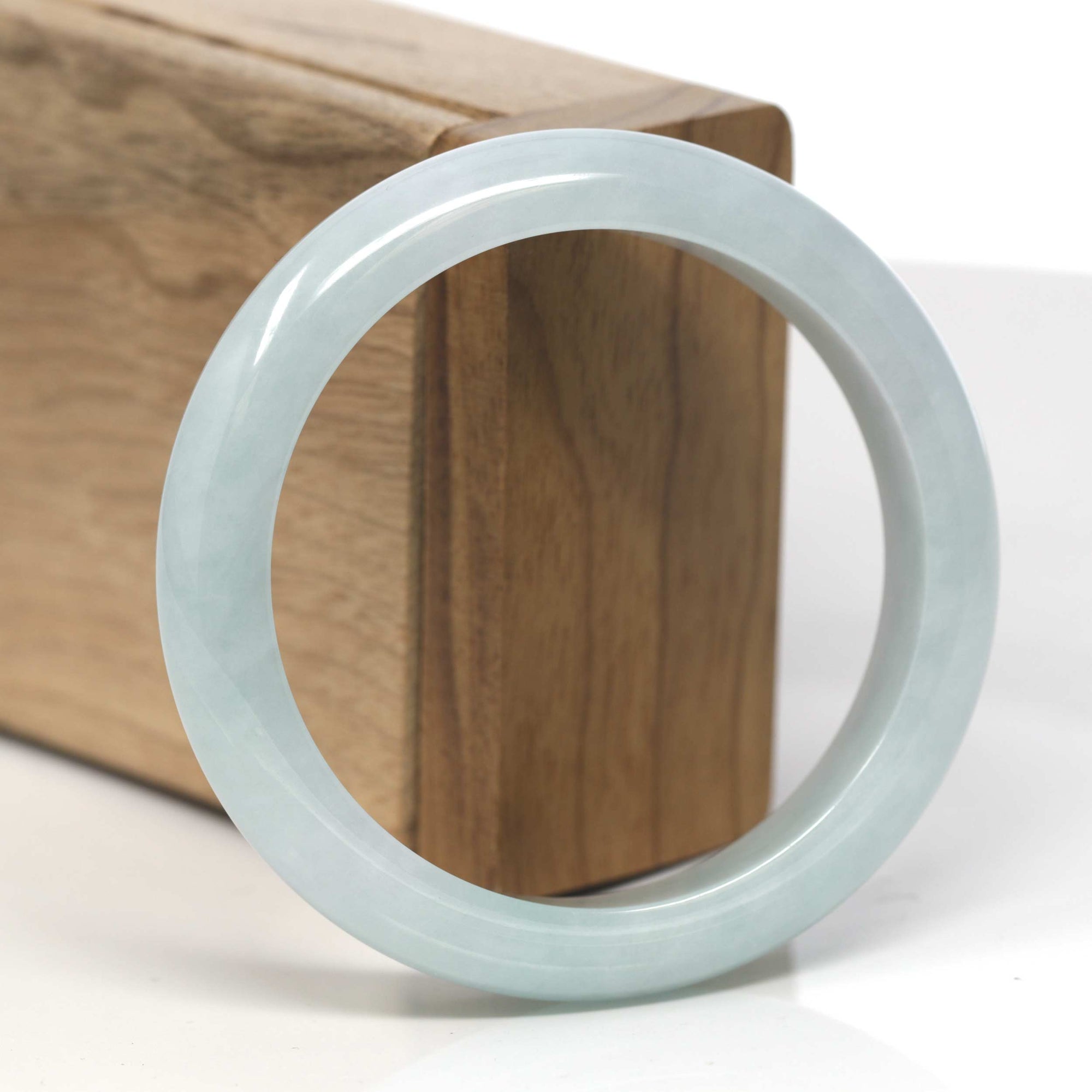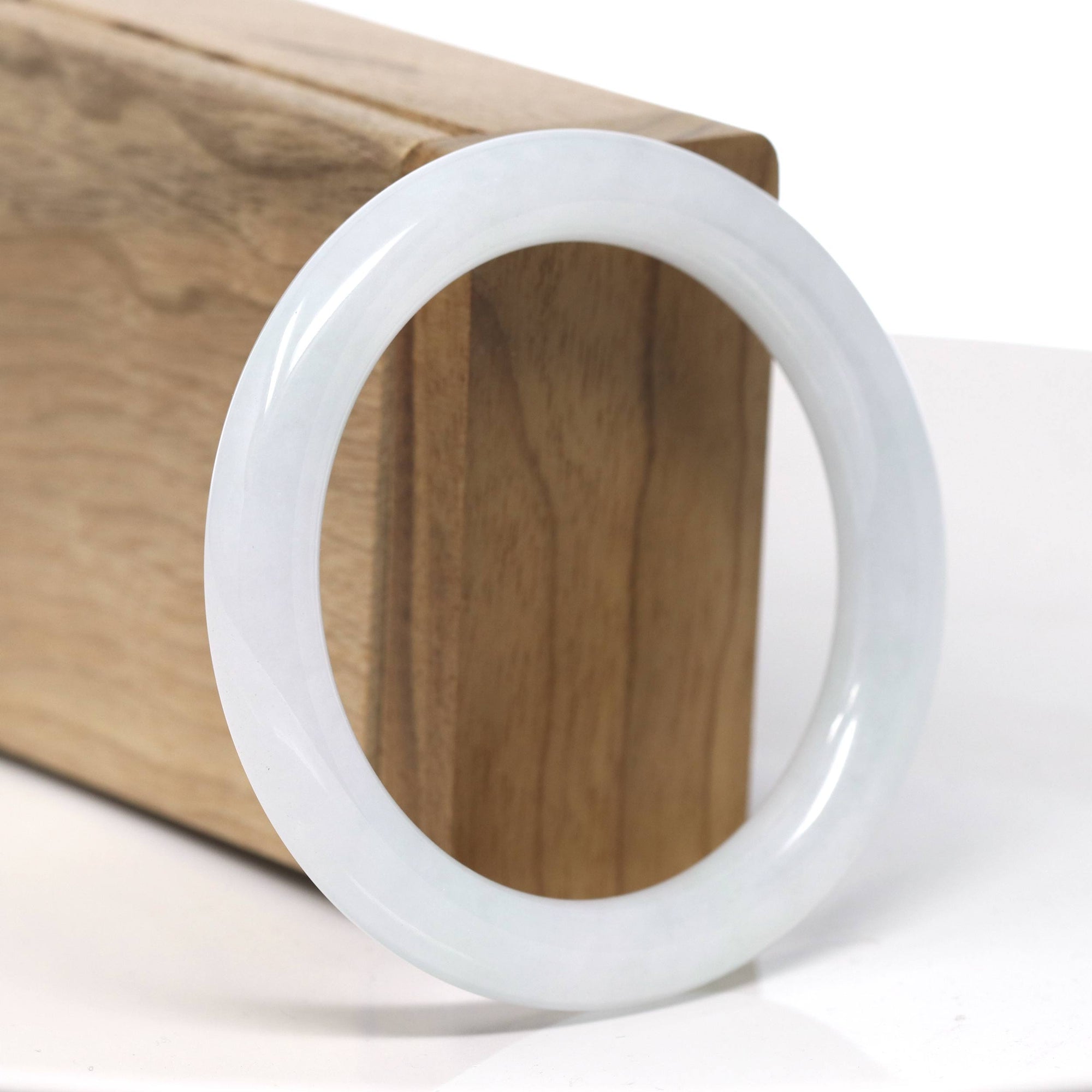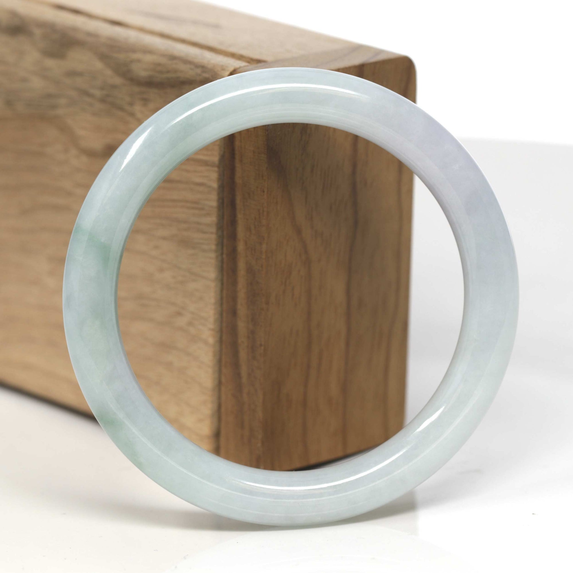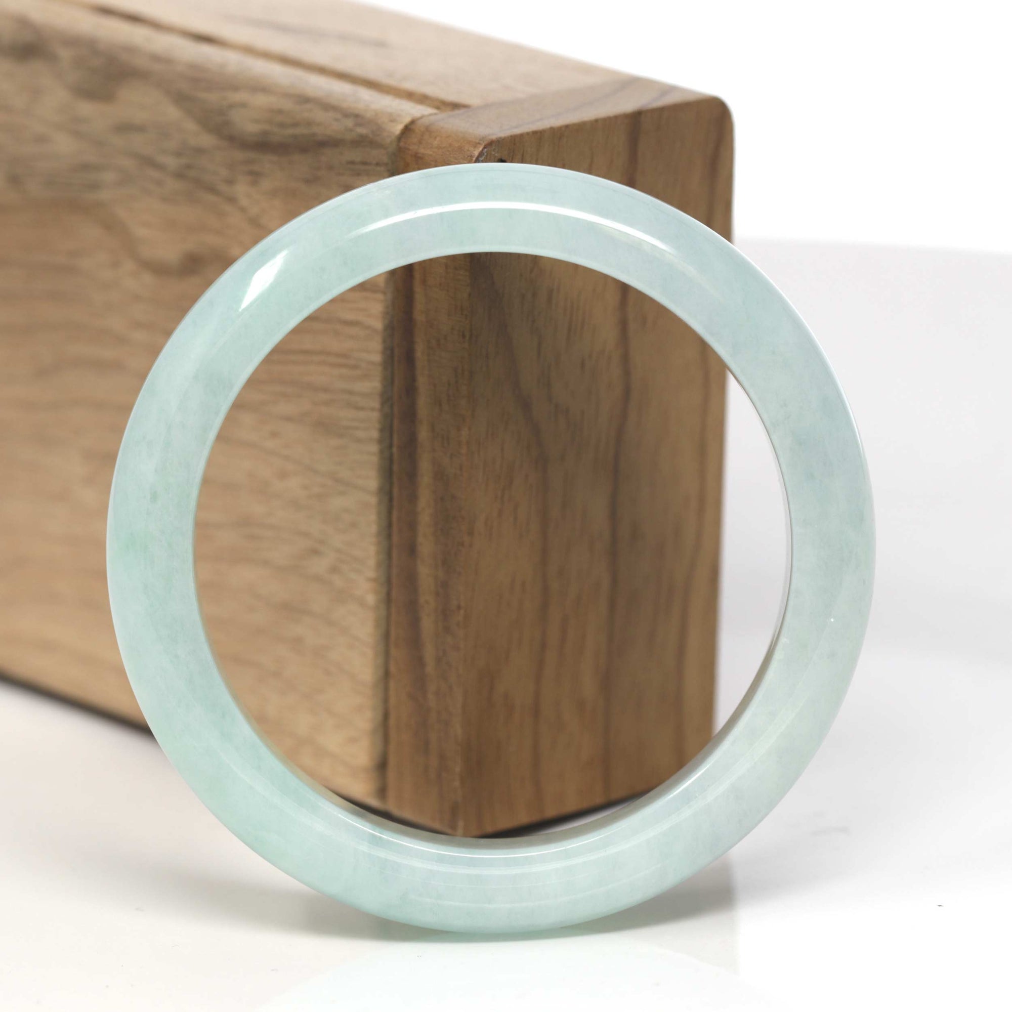 Baikalla Natural "Icy Moonlight" Jadeite Jade Traditional Round Bangle Bracelet (55 mm) #T964