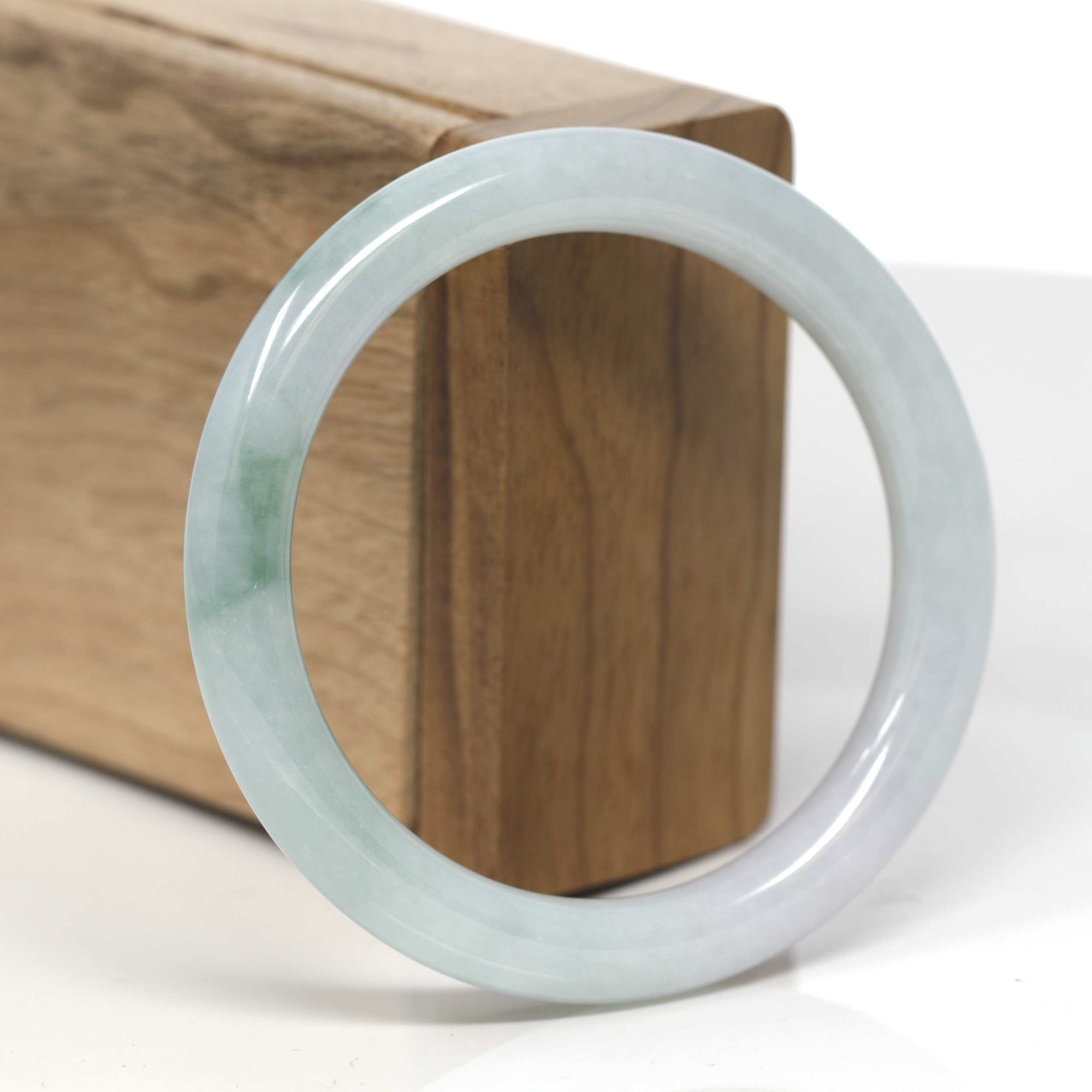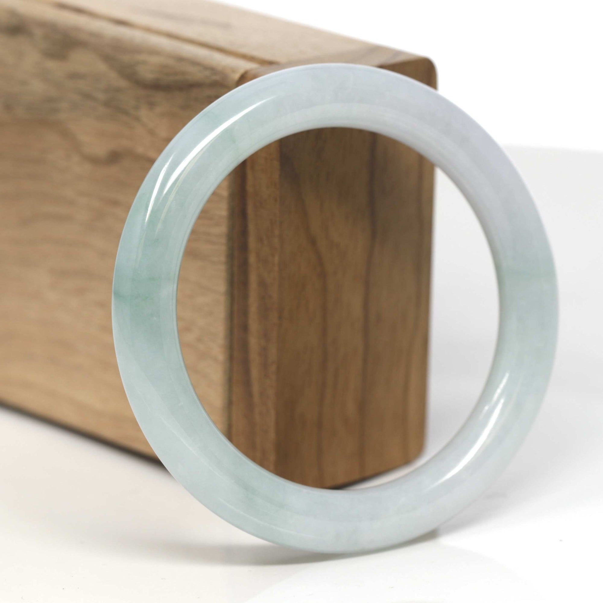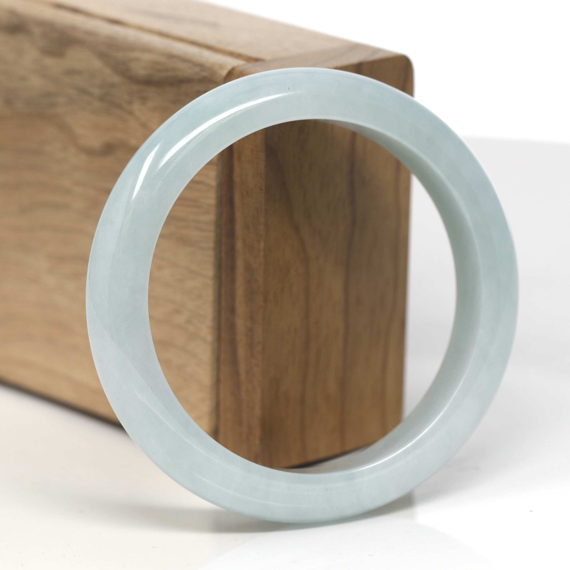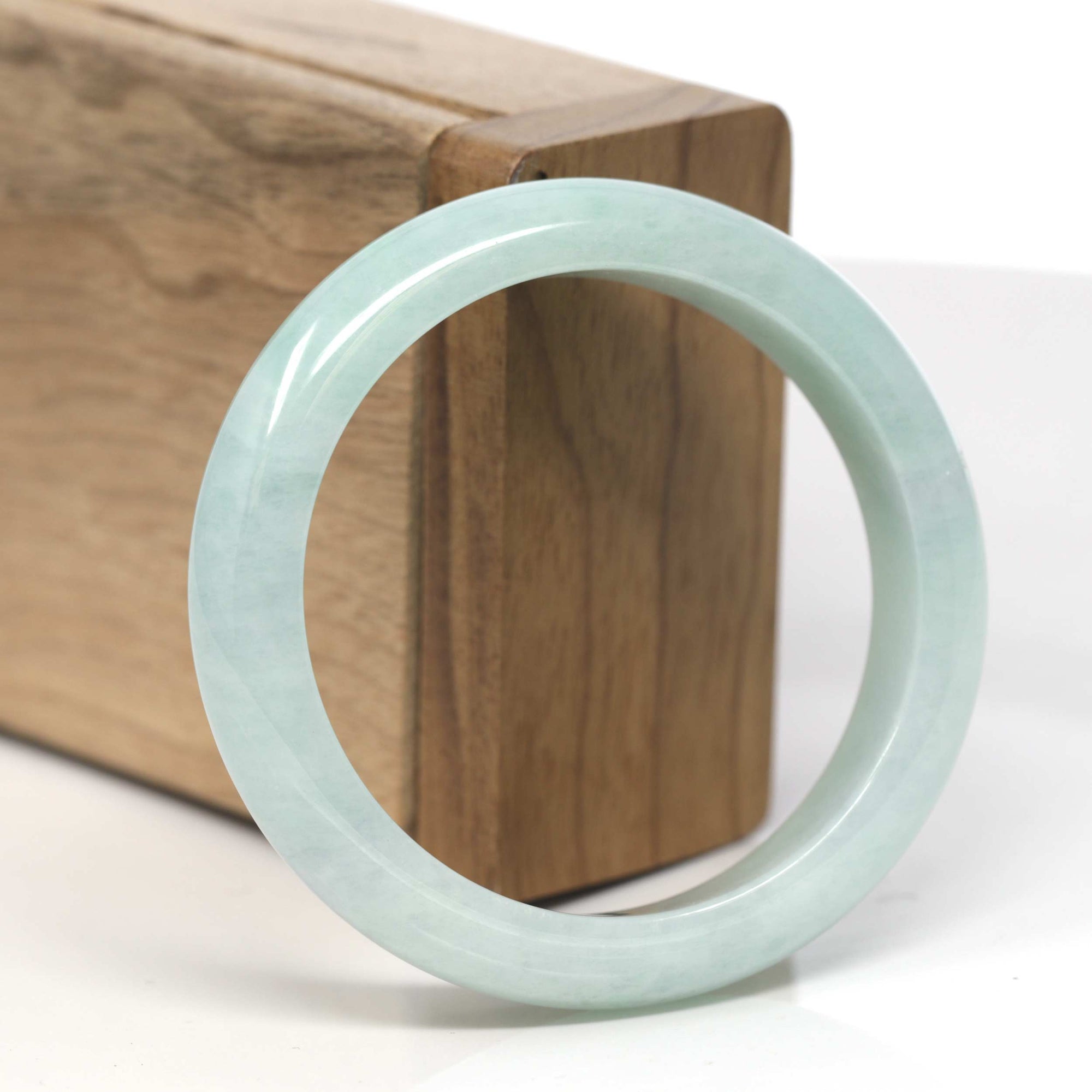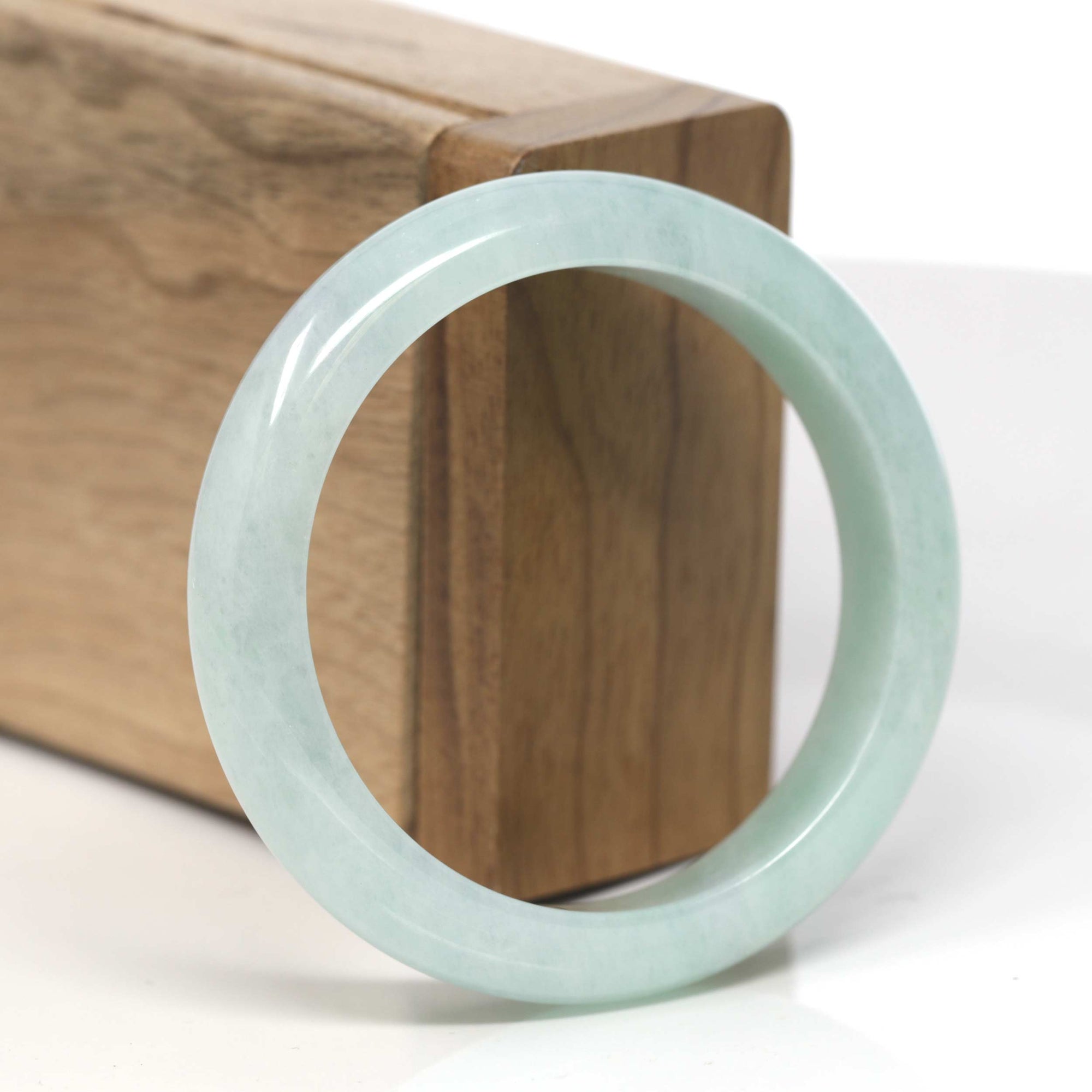 Baikalla Natural "Icy Moonlight" Jadeite Jade Traditional Round Bangle Bracelet (55 mm) #T964