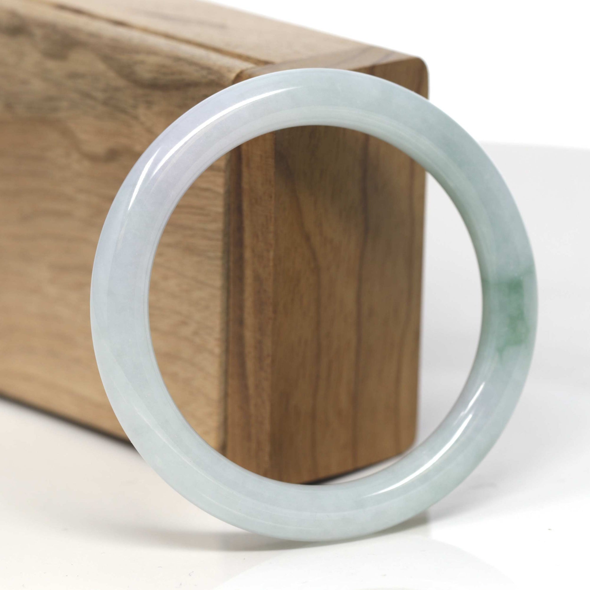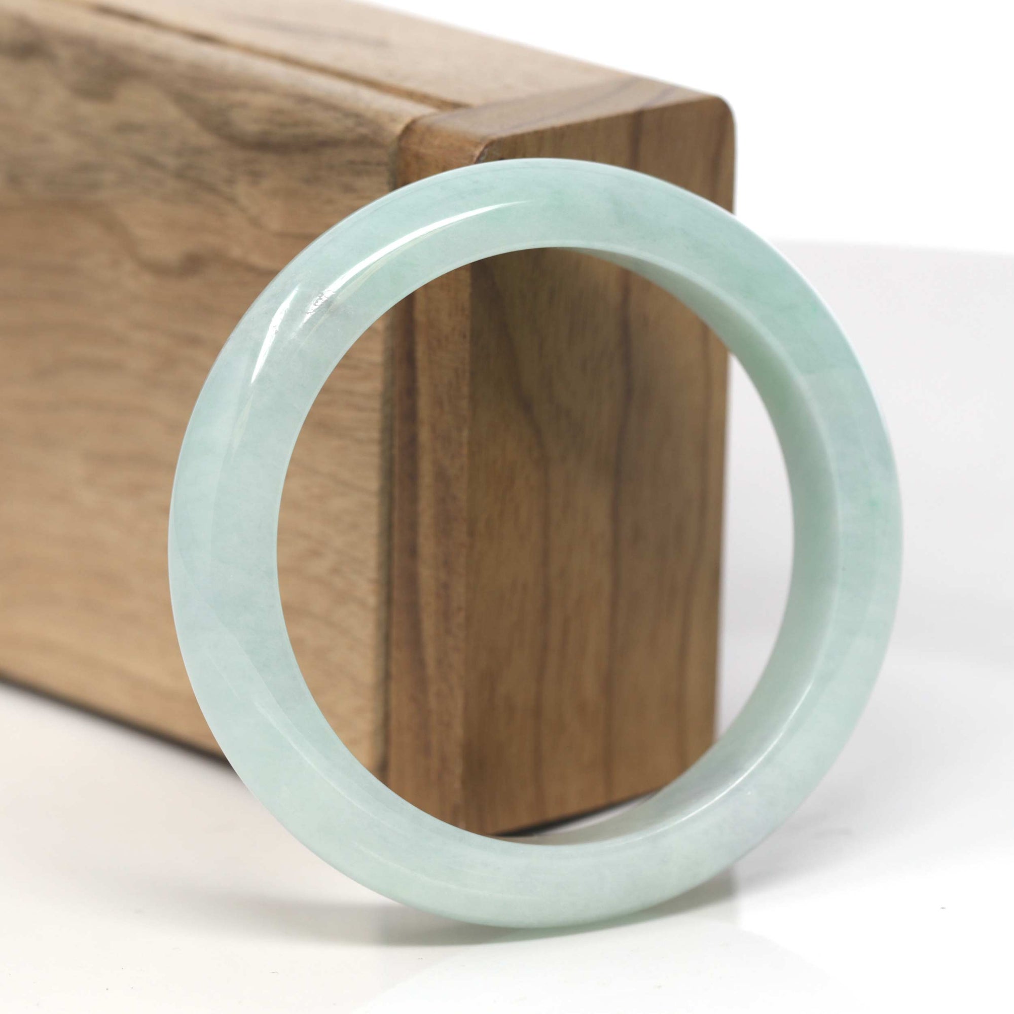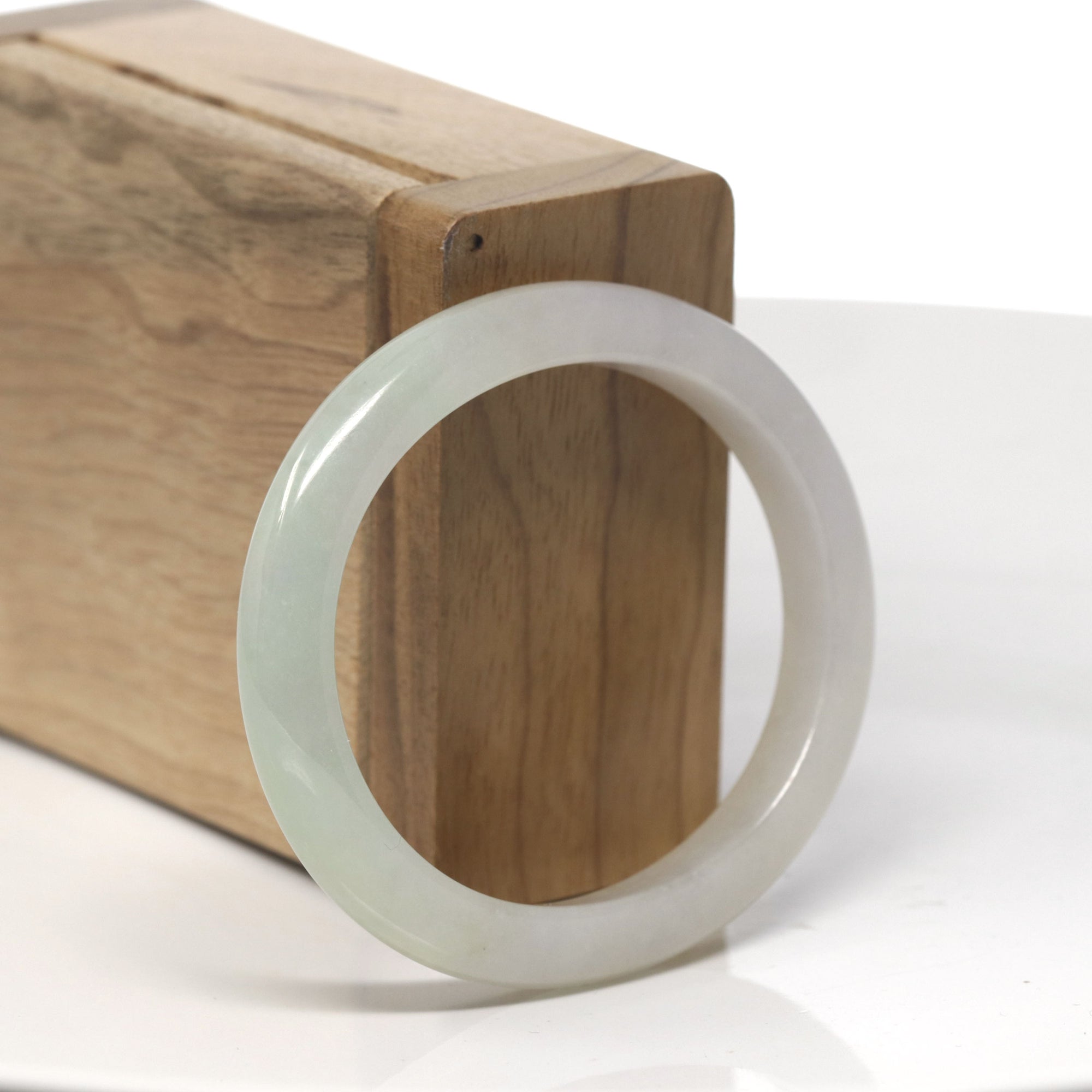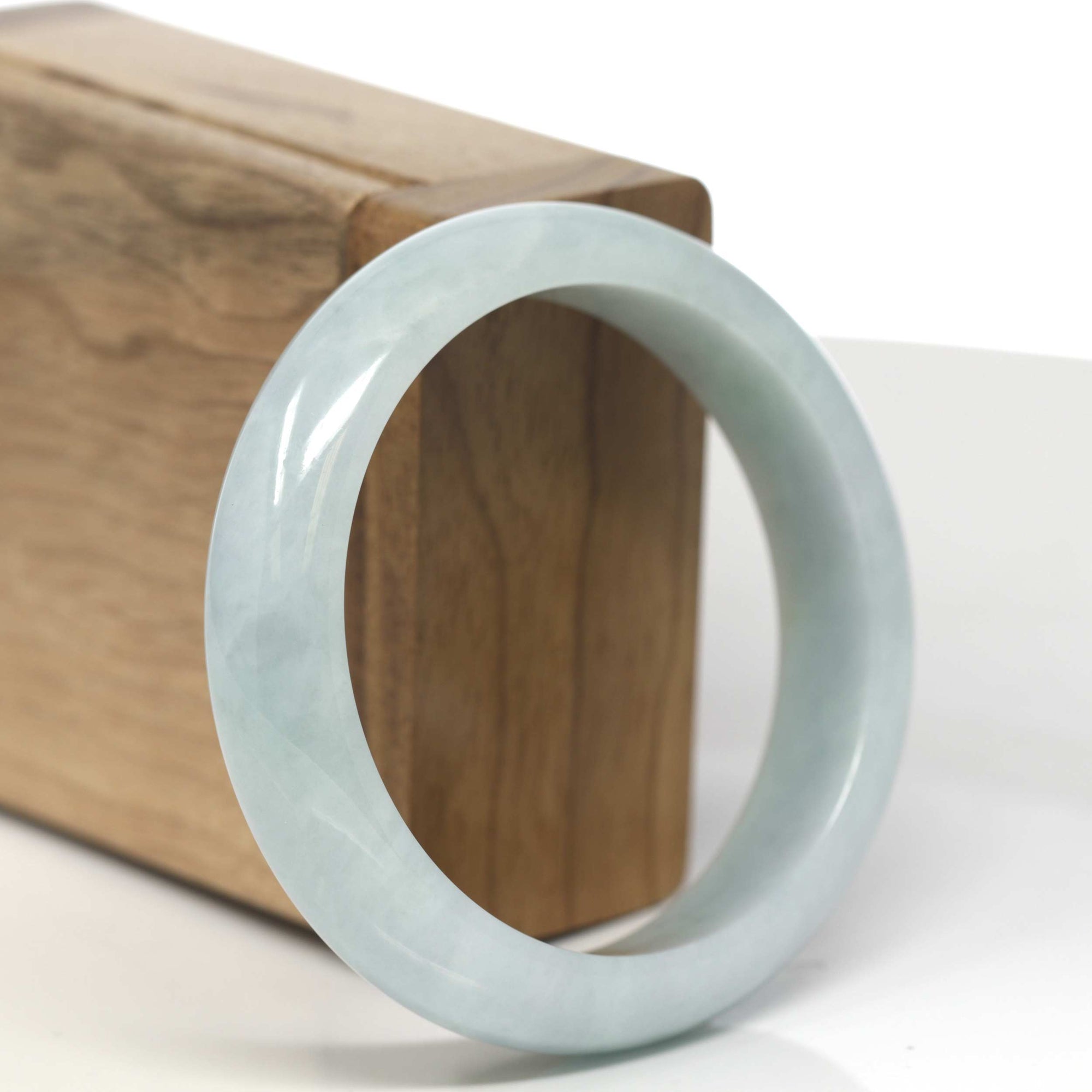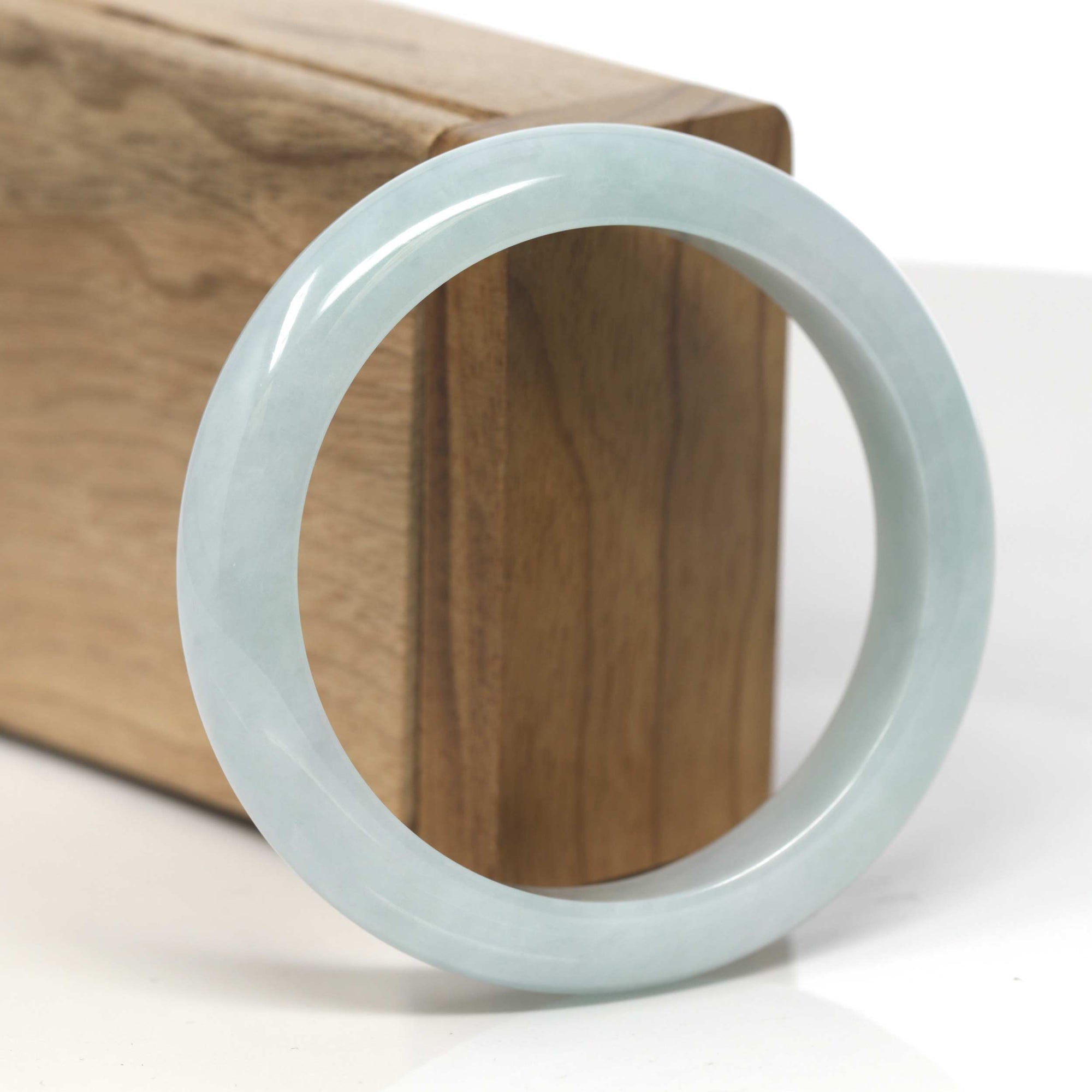 Baikalla Natural "Icy Moonlight" Jadeite Jade Traditional Round Bangle Bracelet (55 mm) #T964