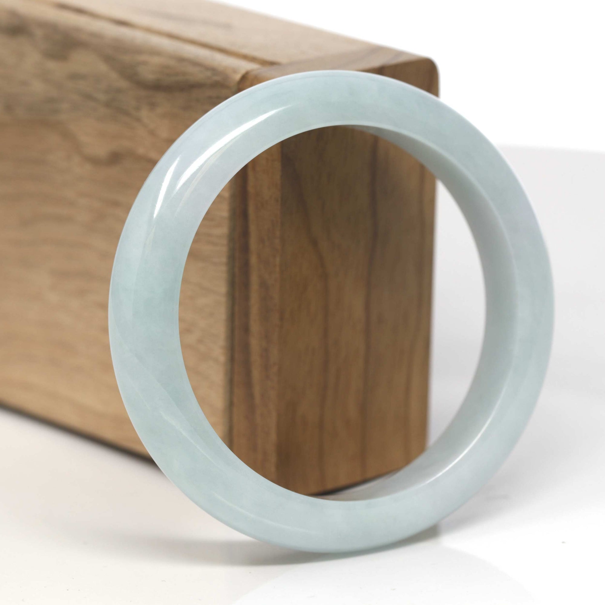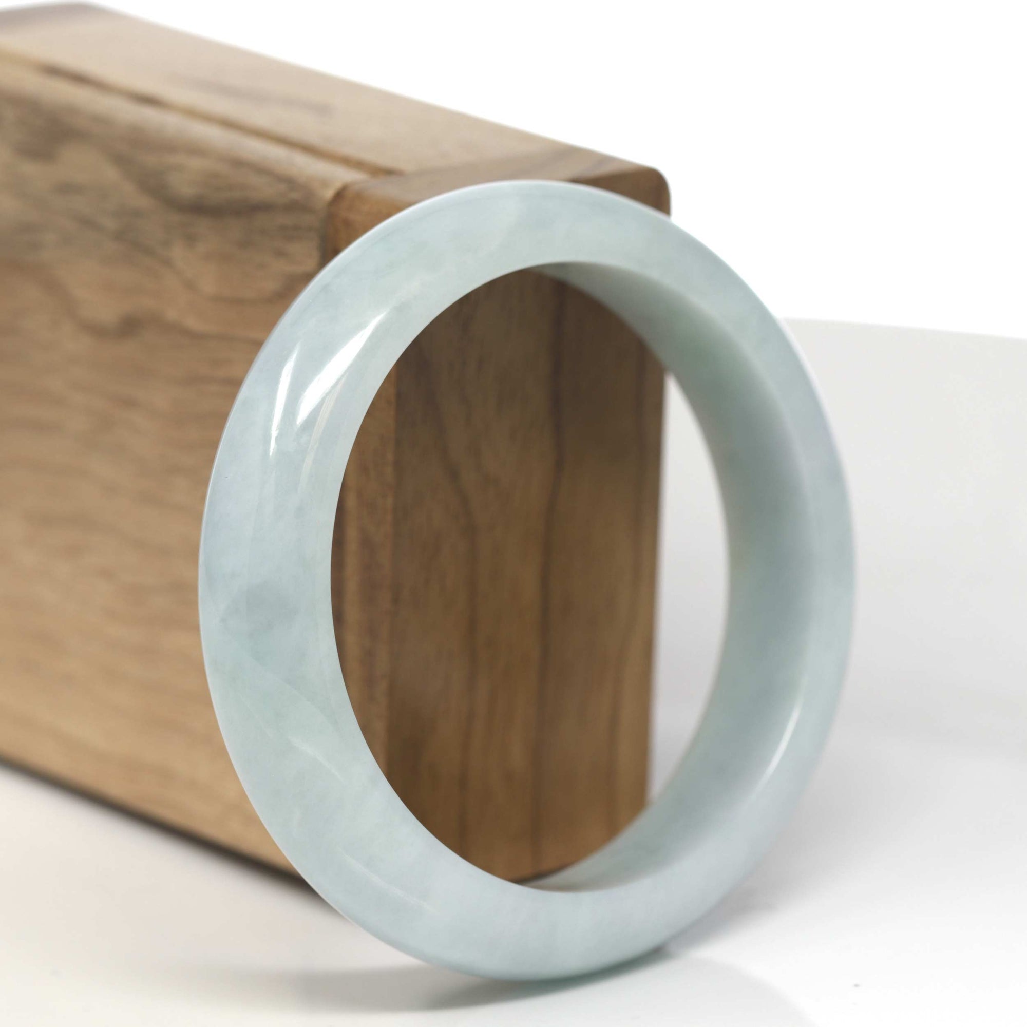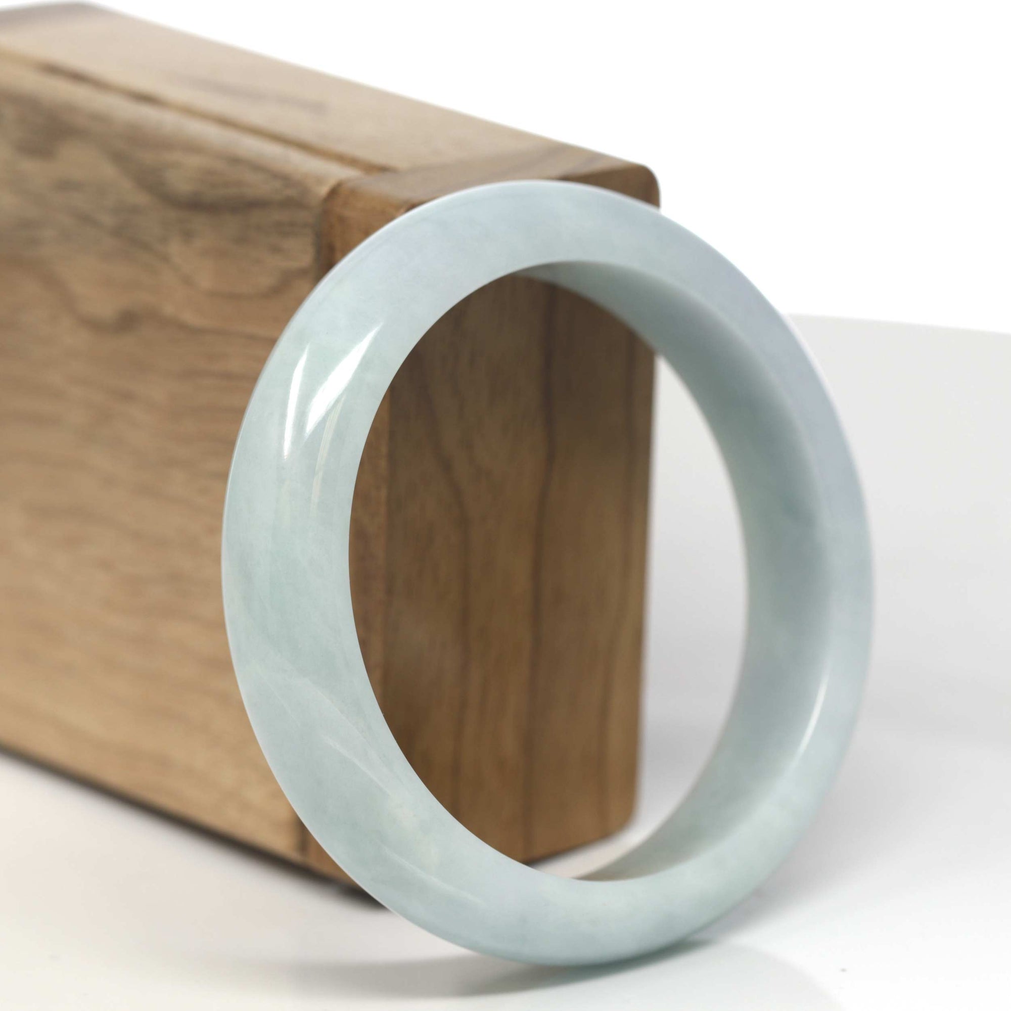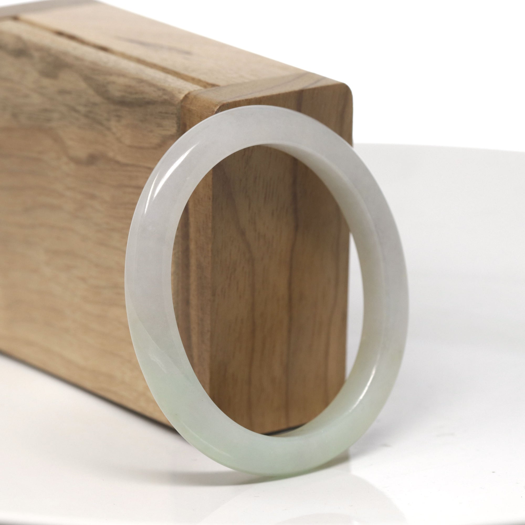 Baikalla Natural "Icy Moonlight" Jadeite Jade Traditional Round Bangle Bracelet (55 mm) #T964