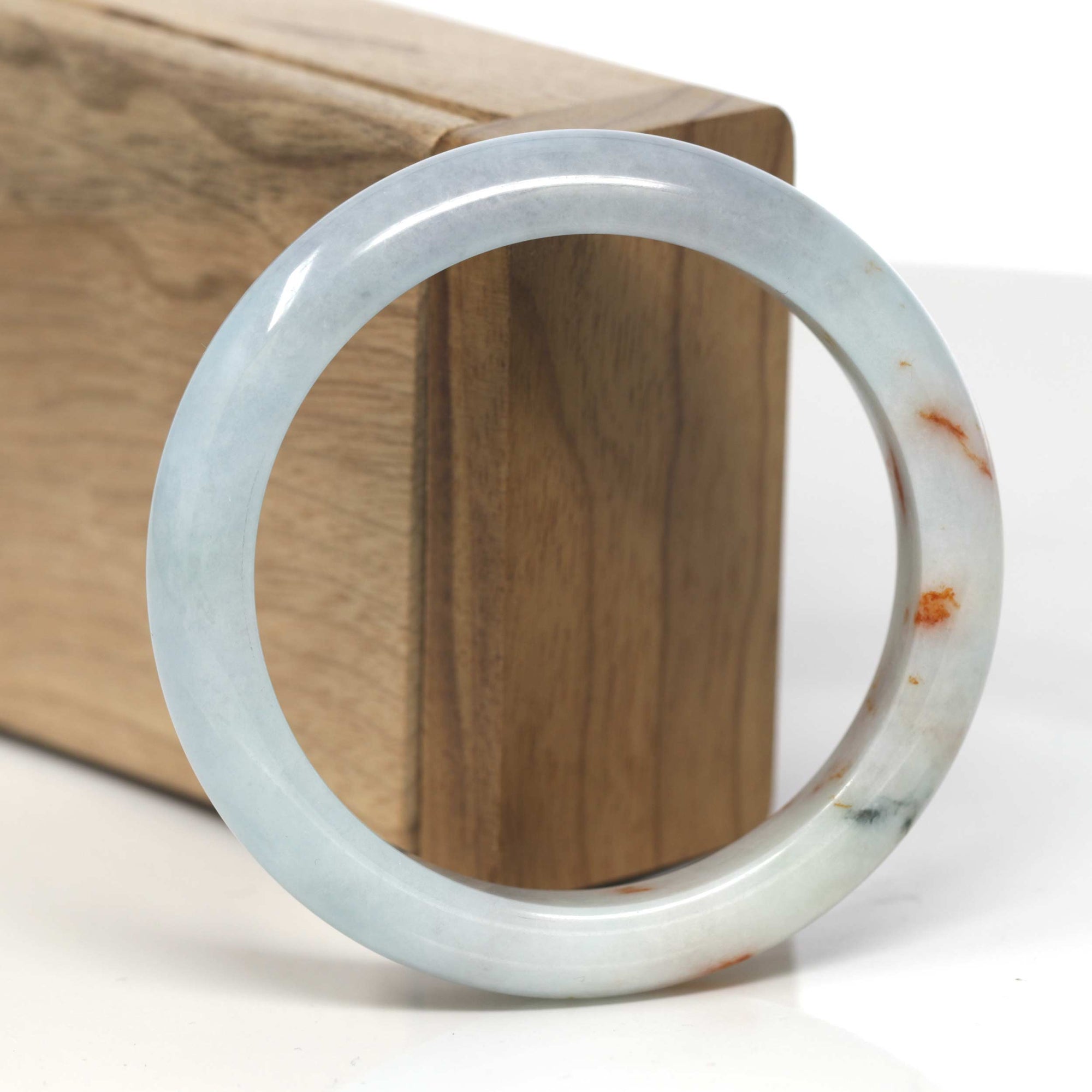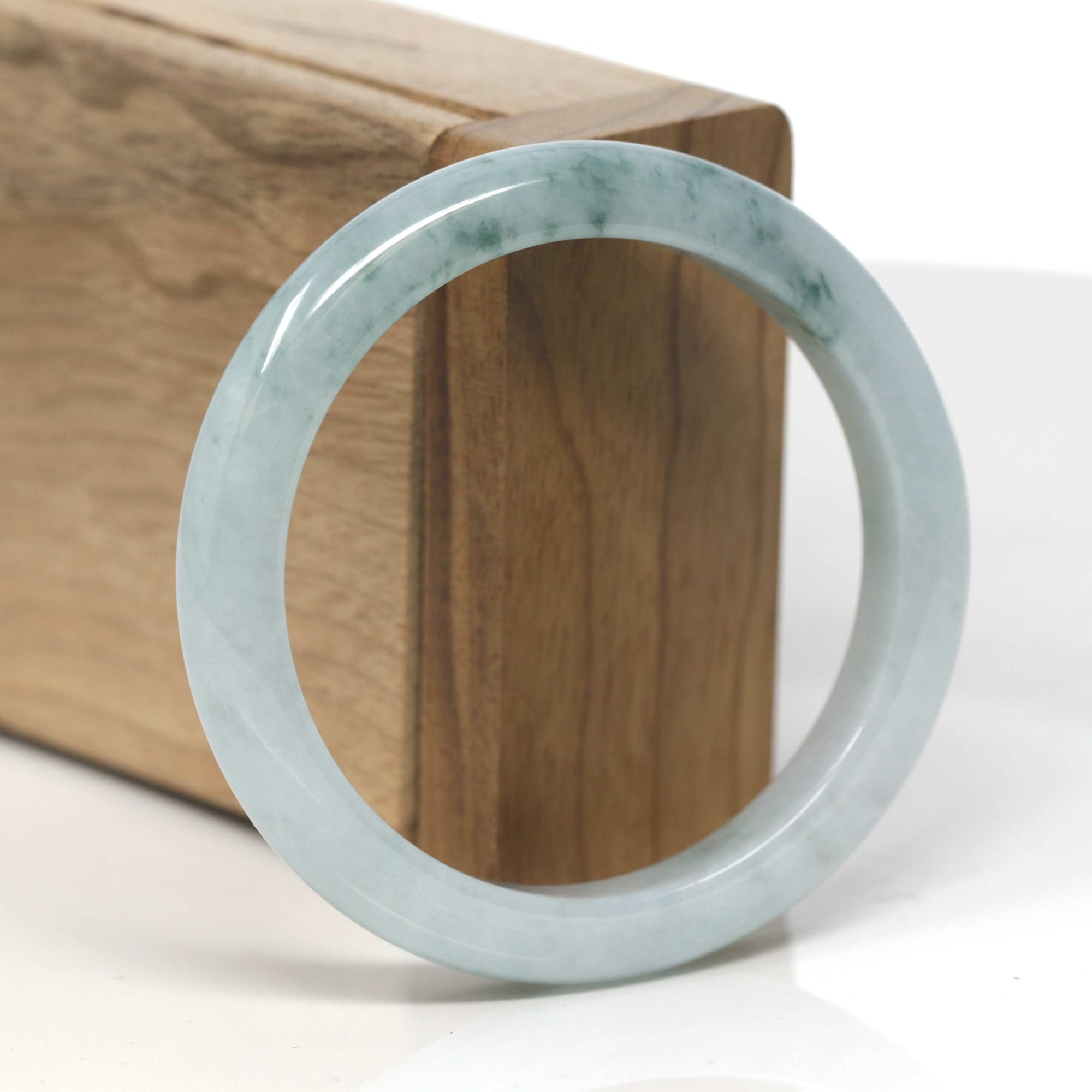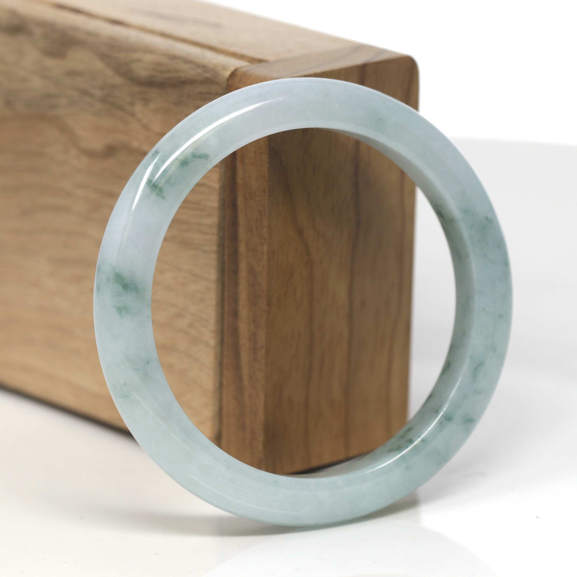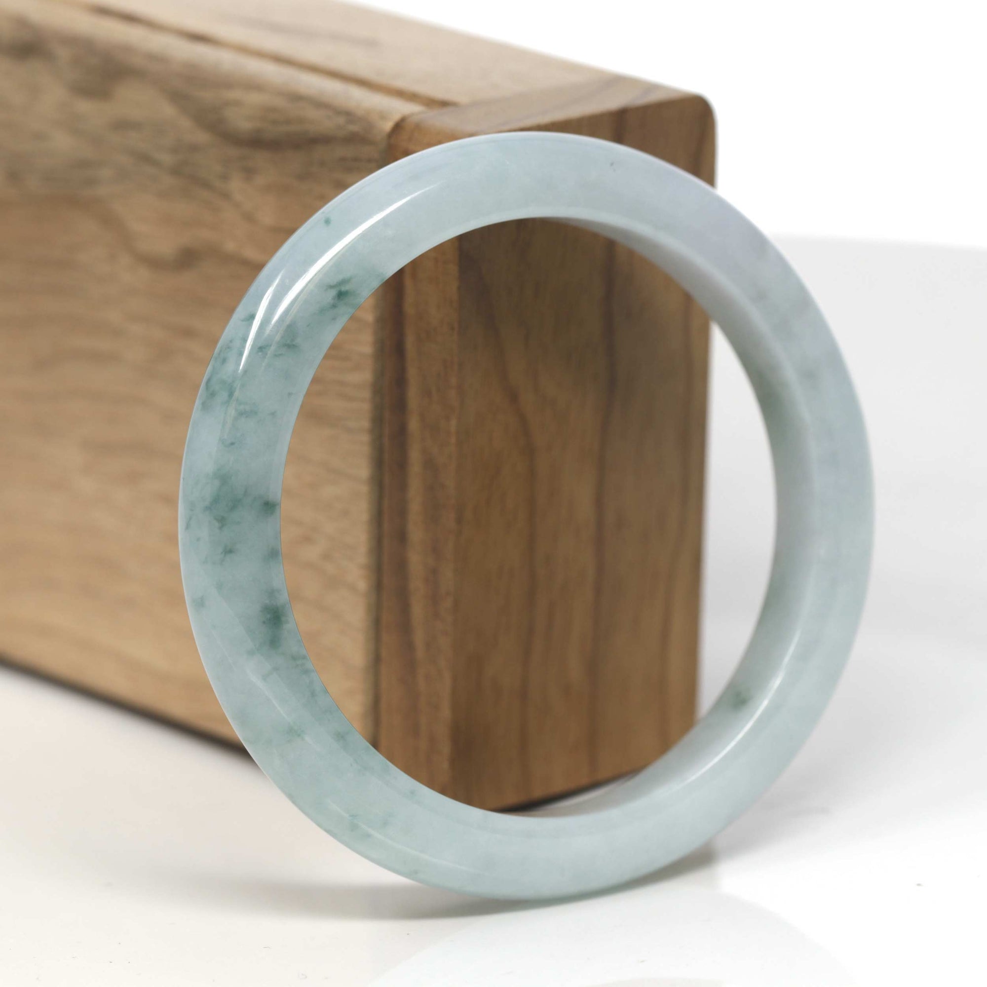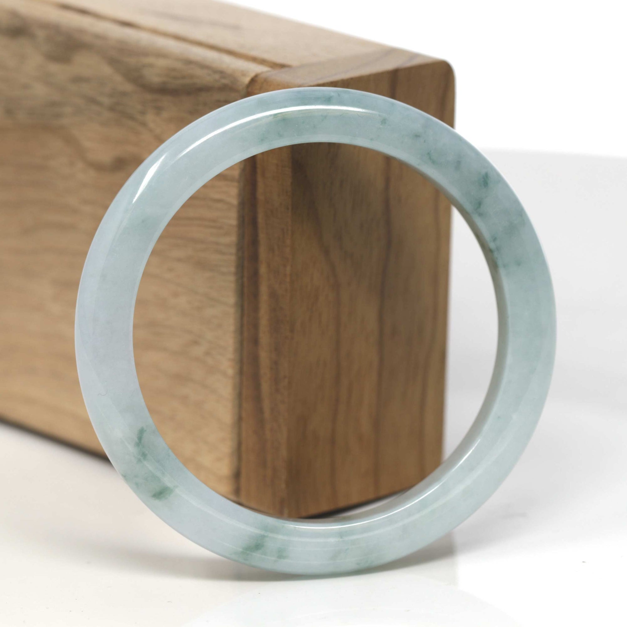 Baikalla Natural "Icy Moonlight" Jadeite Jade Traditional Round Bangle Bracelet (55 mm) #T964