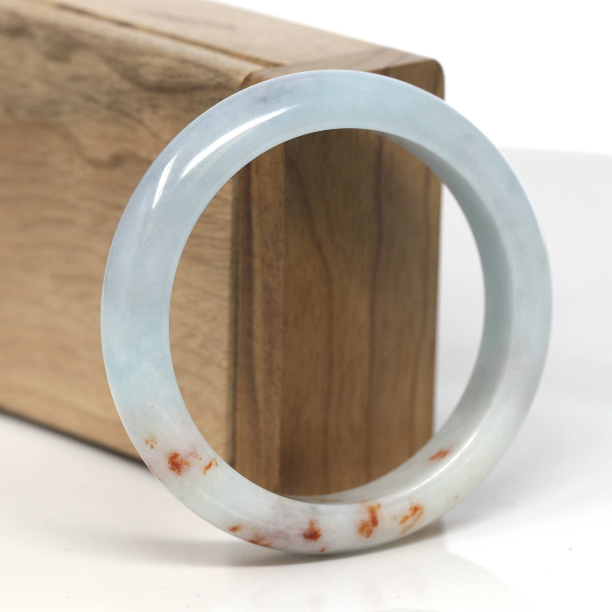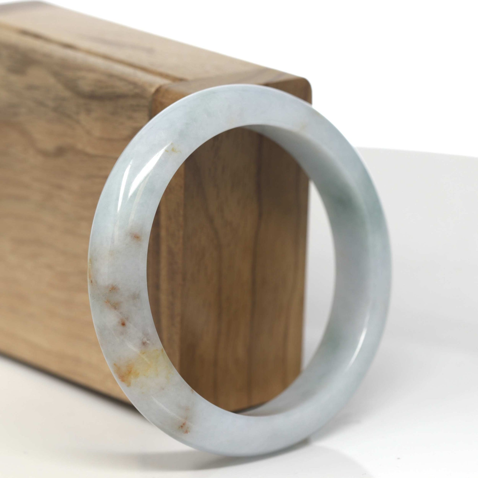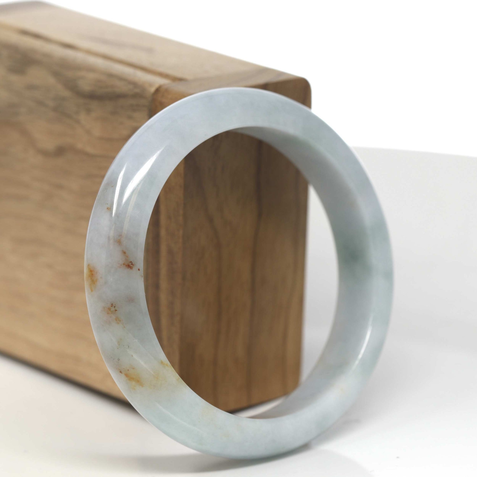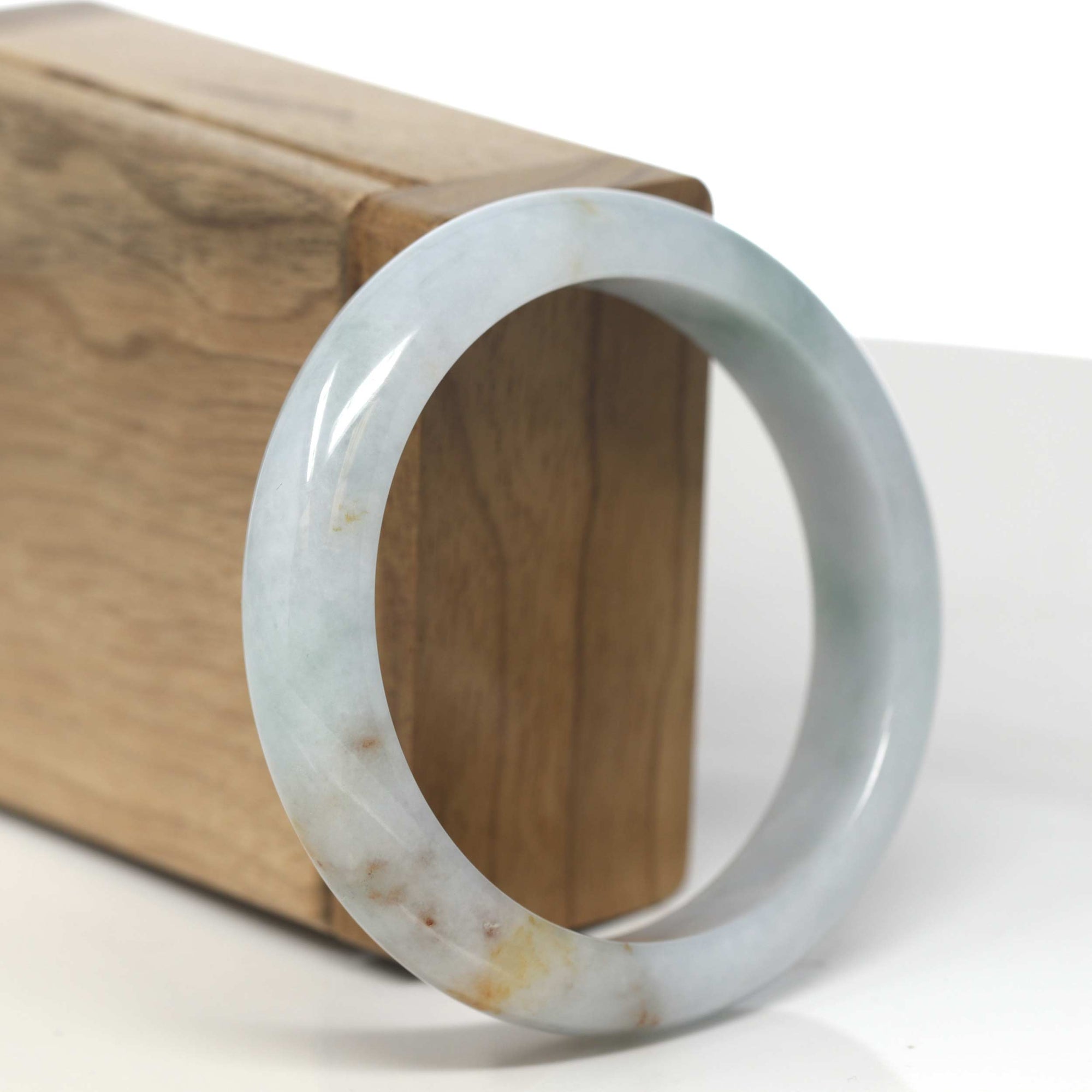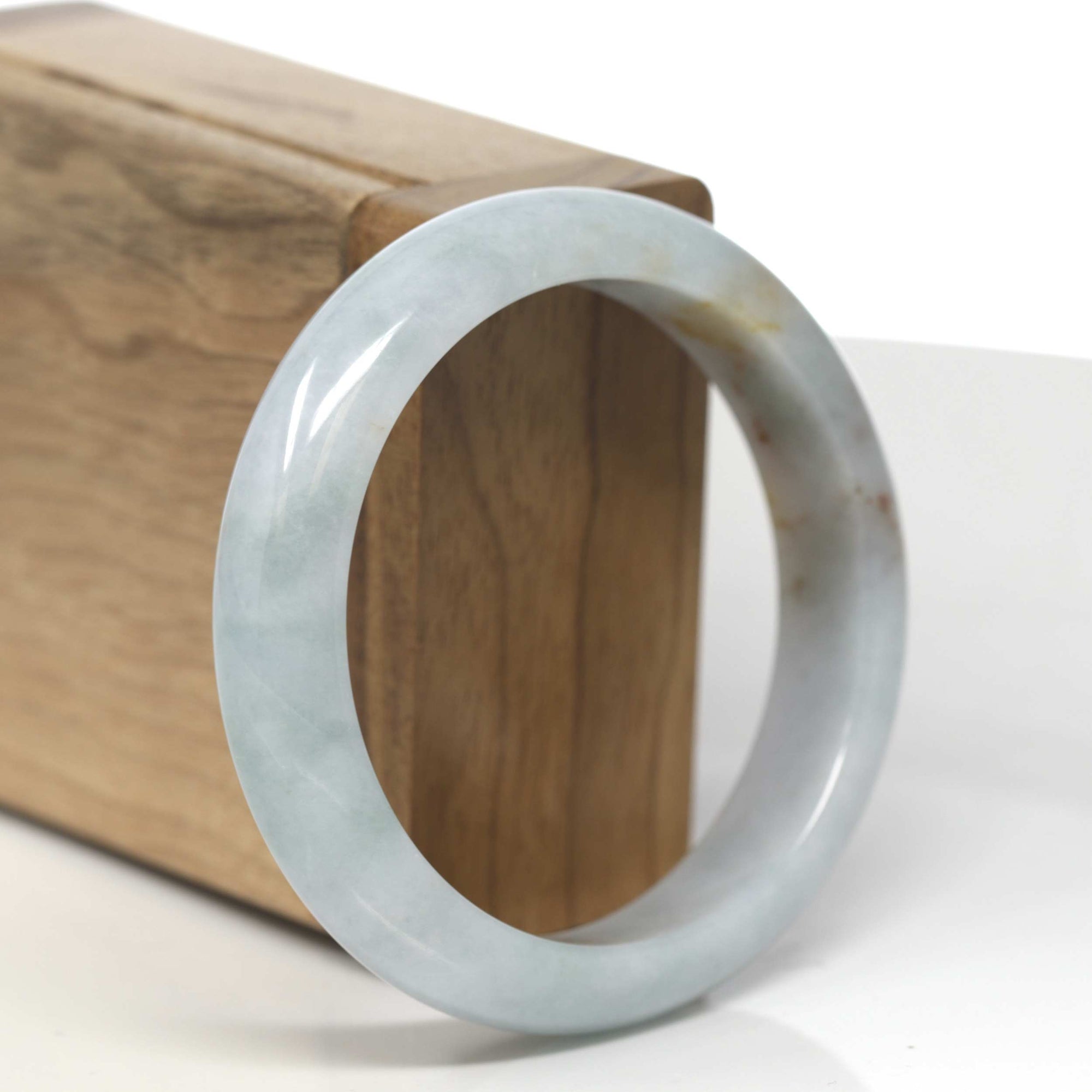 Baikalla Natural "Icy Moonlight" Jadeite Jade Traditional Round Bangle Bracelet (55 mm) #T964