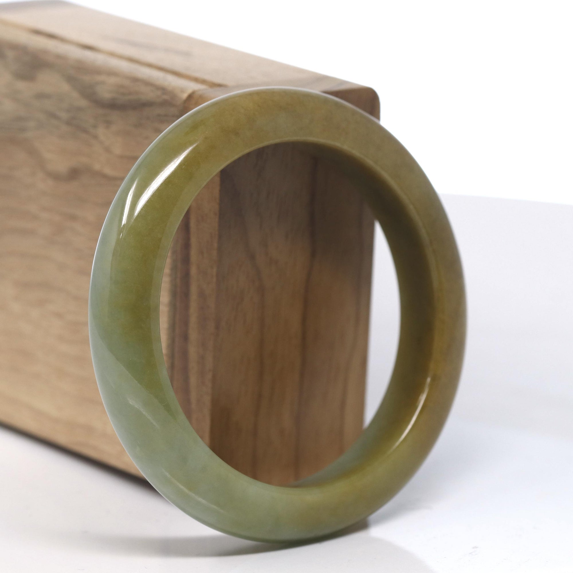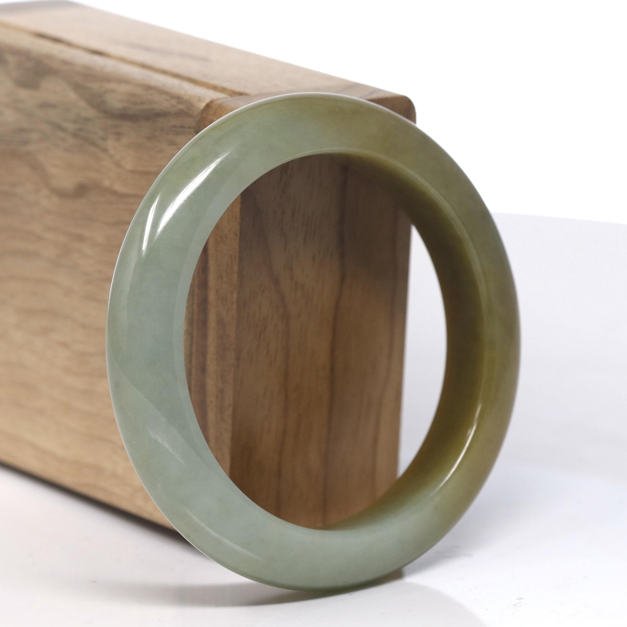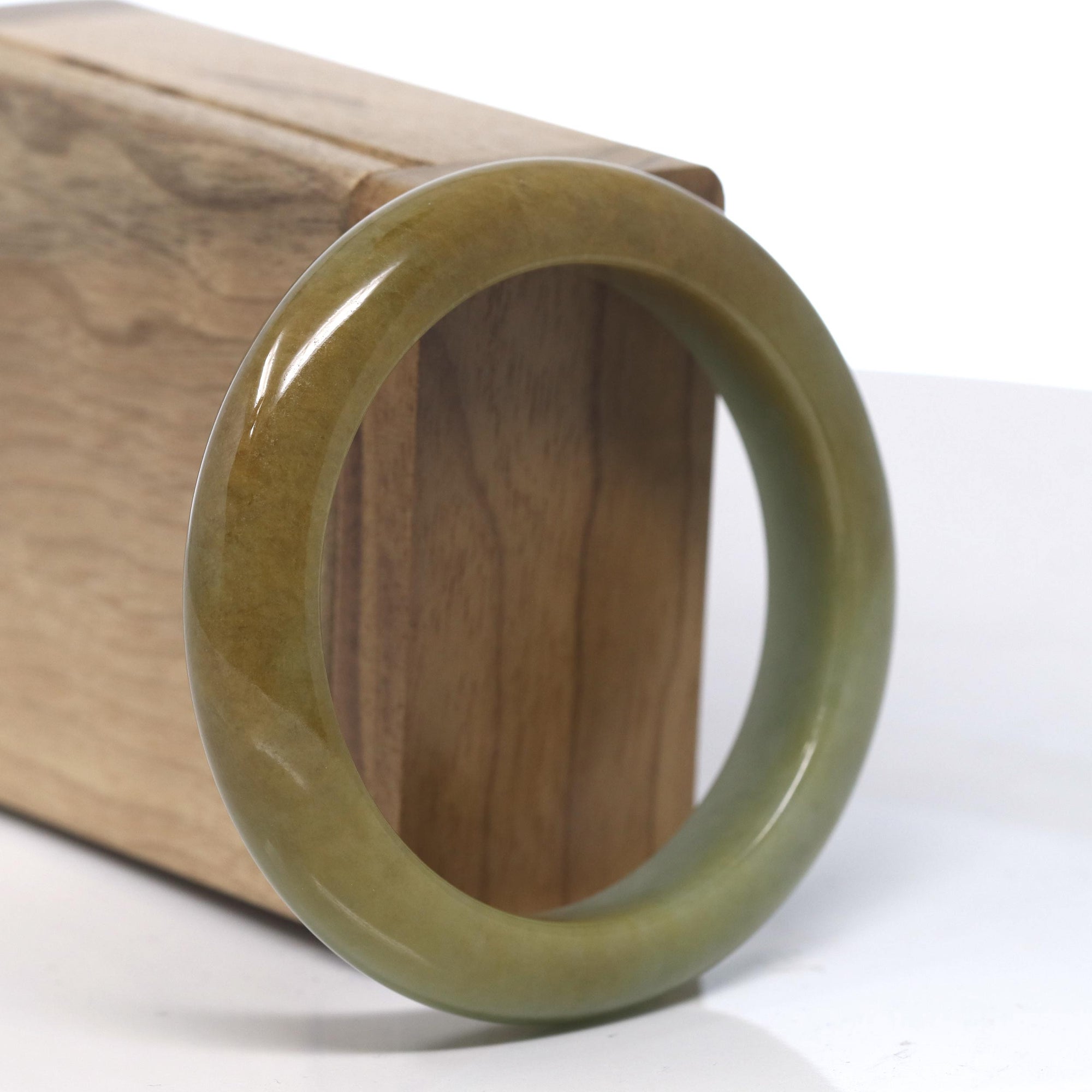High-quality Yellow- Green Natural Burmese Jadeite Jade Bangle (54.89 mm ) #327