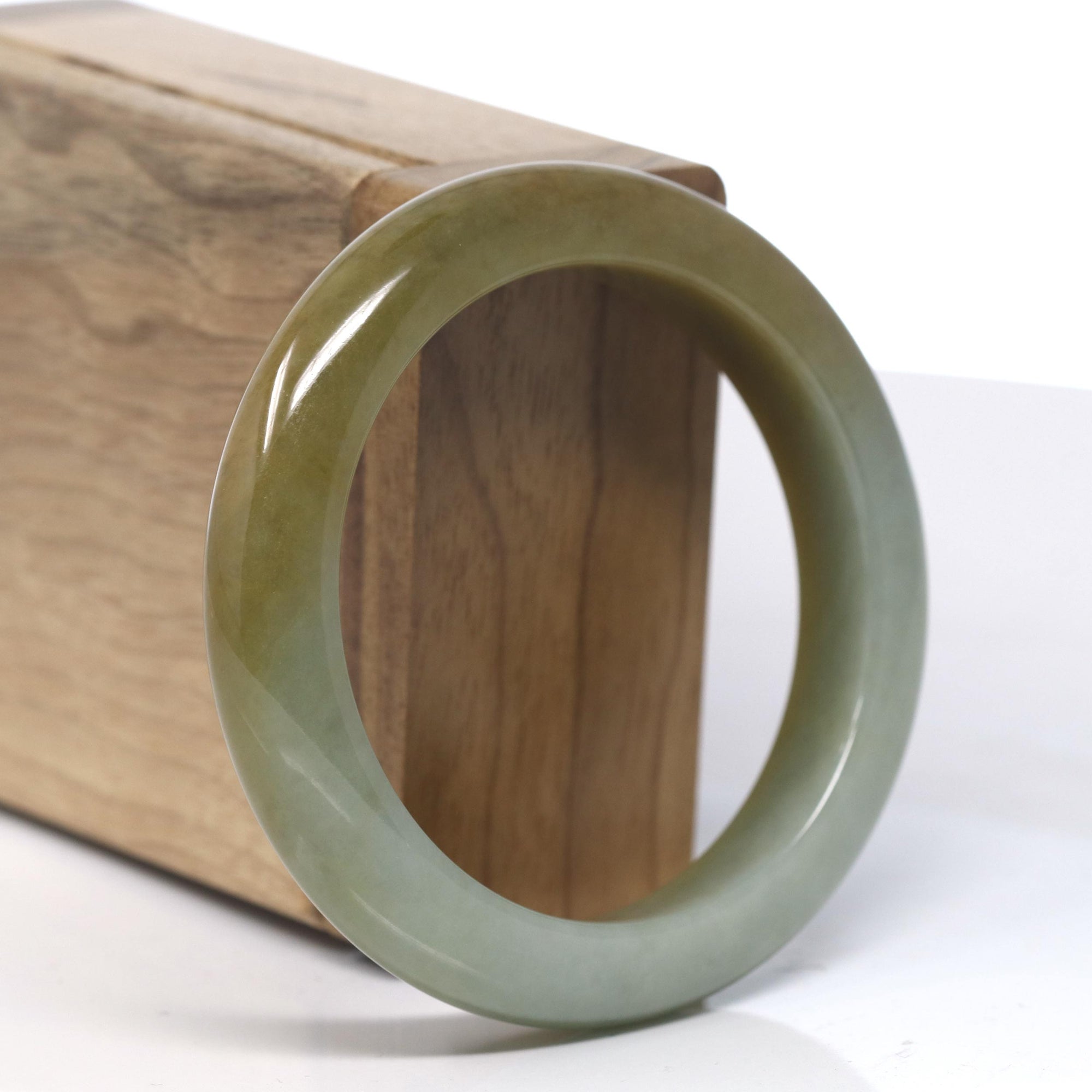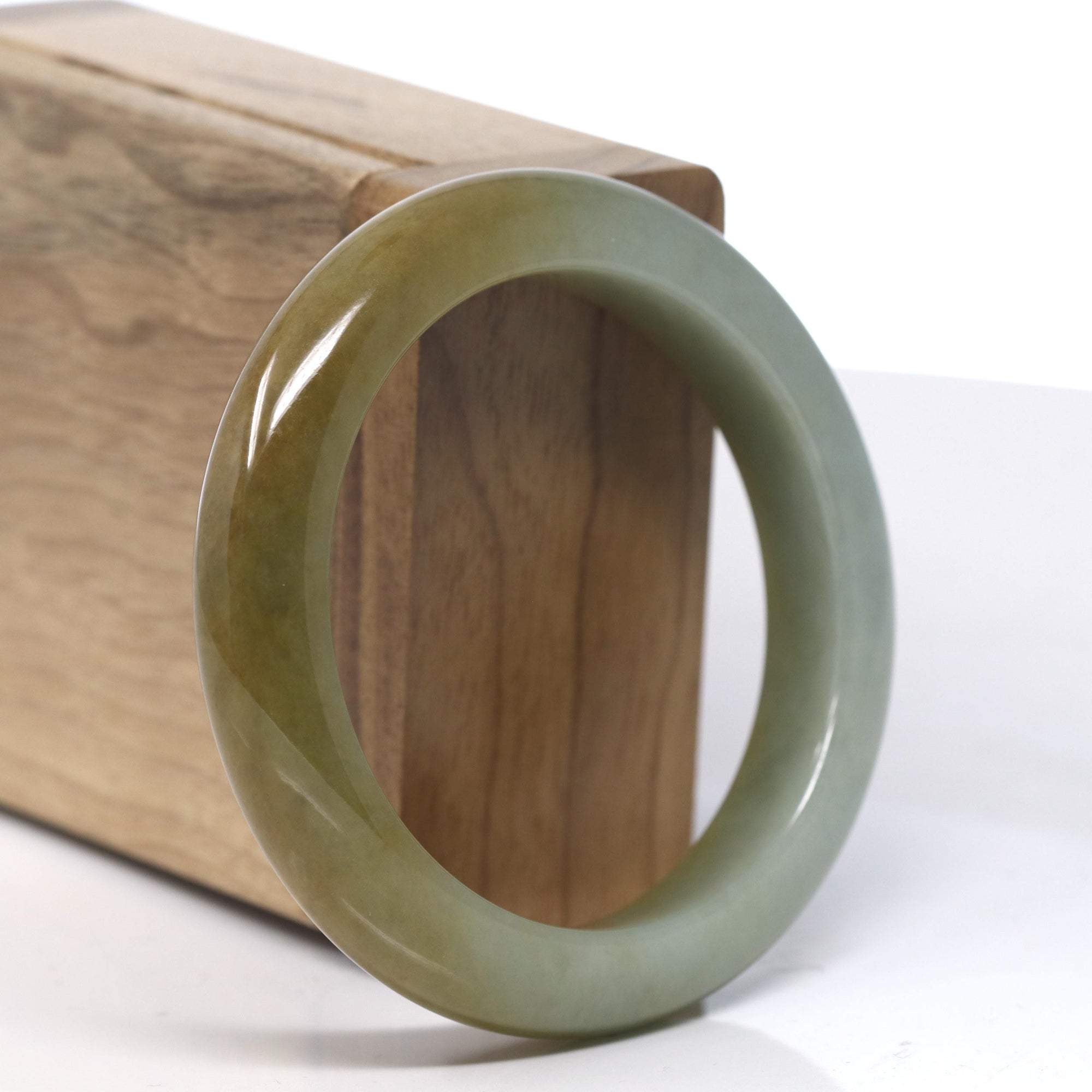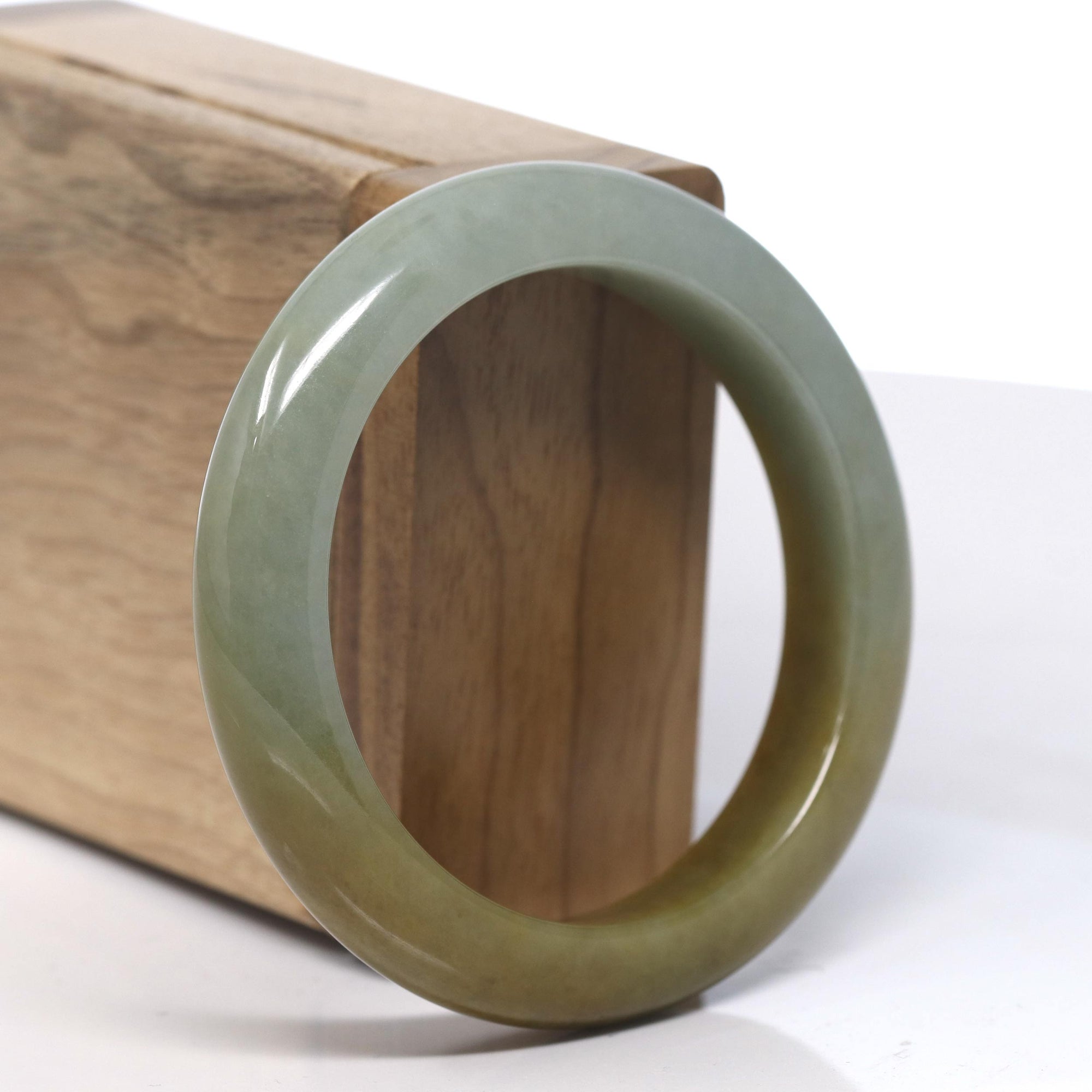 High-quality Yellow- Green Natural Burmese Jadeite Jade Bangle (54.89 mm ) #327