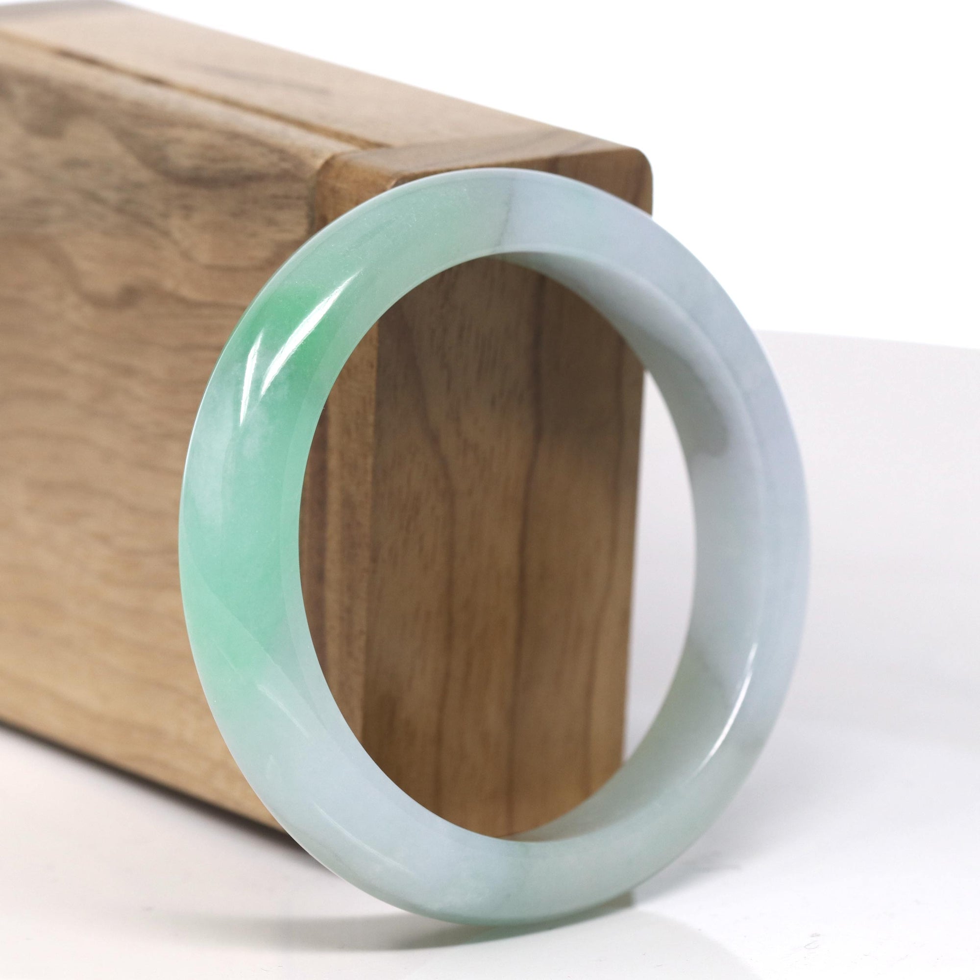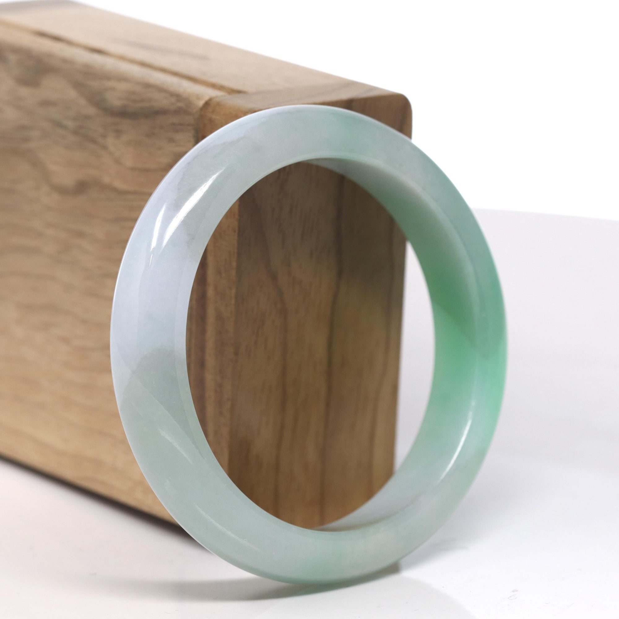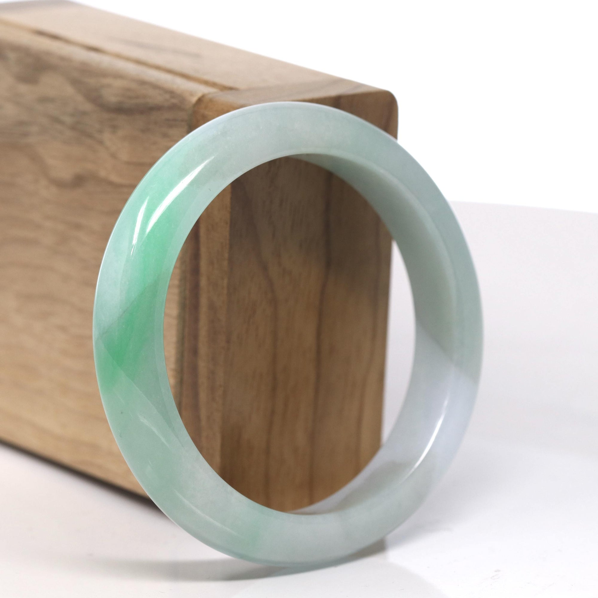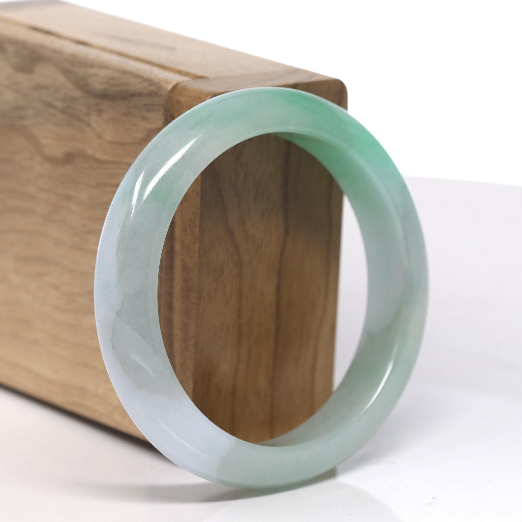 Discover beautiful, natural jade bangles made from certified Grade A jadeite. Perfectly sized for 54–56mm wrists, each piece is unique, untreated, and ethically sourced. Limited stock — find your perfect jade bangle today!