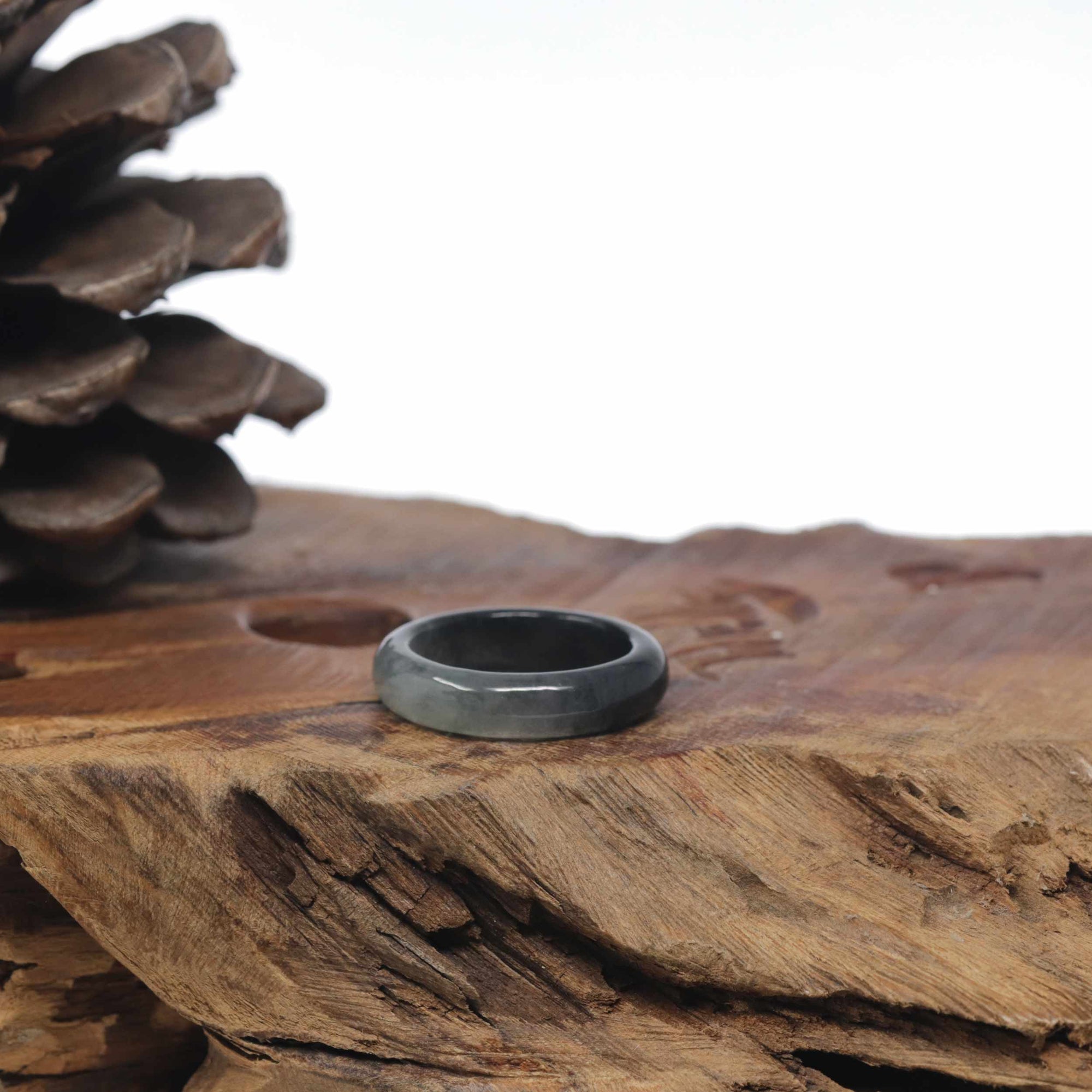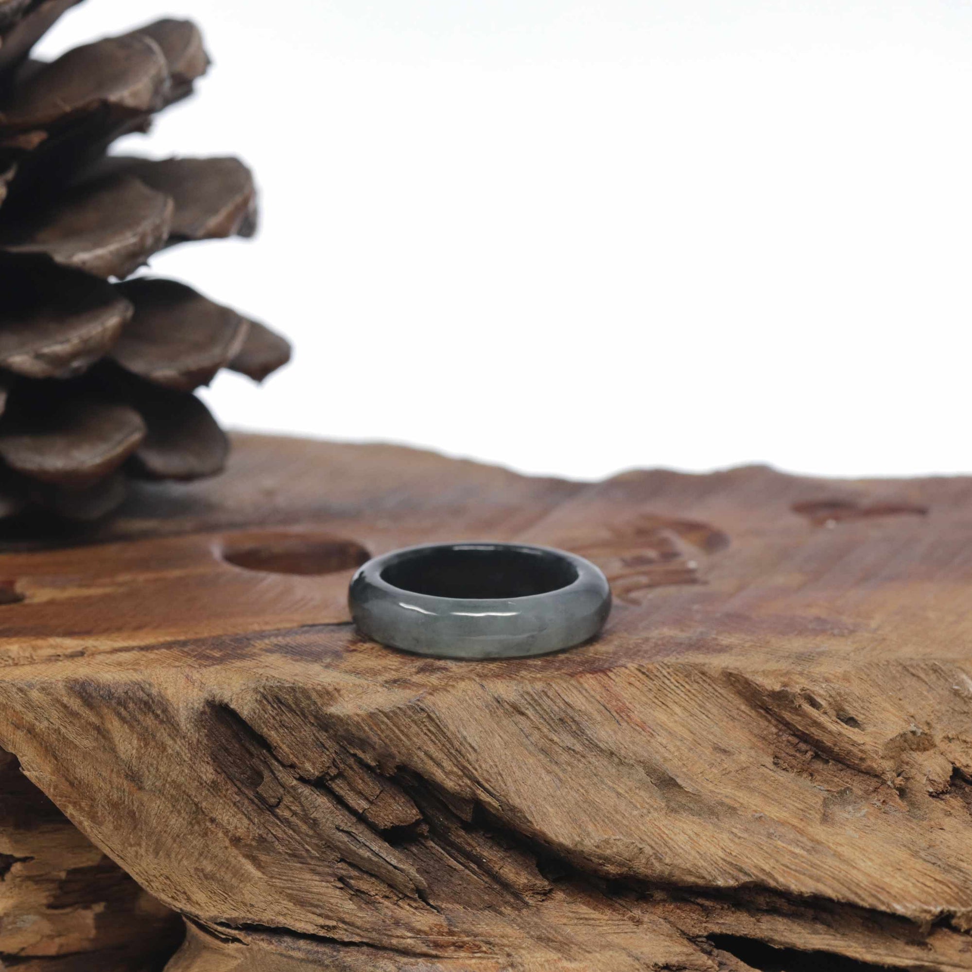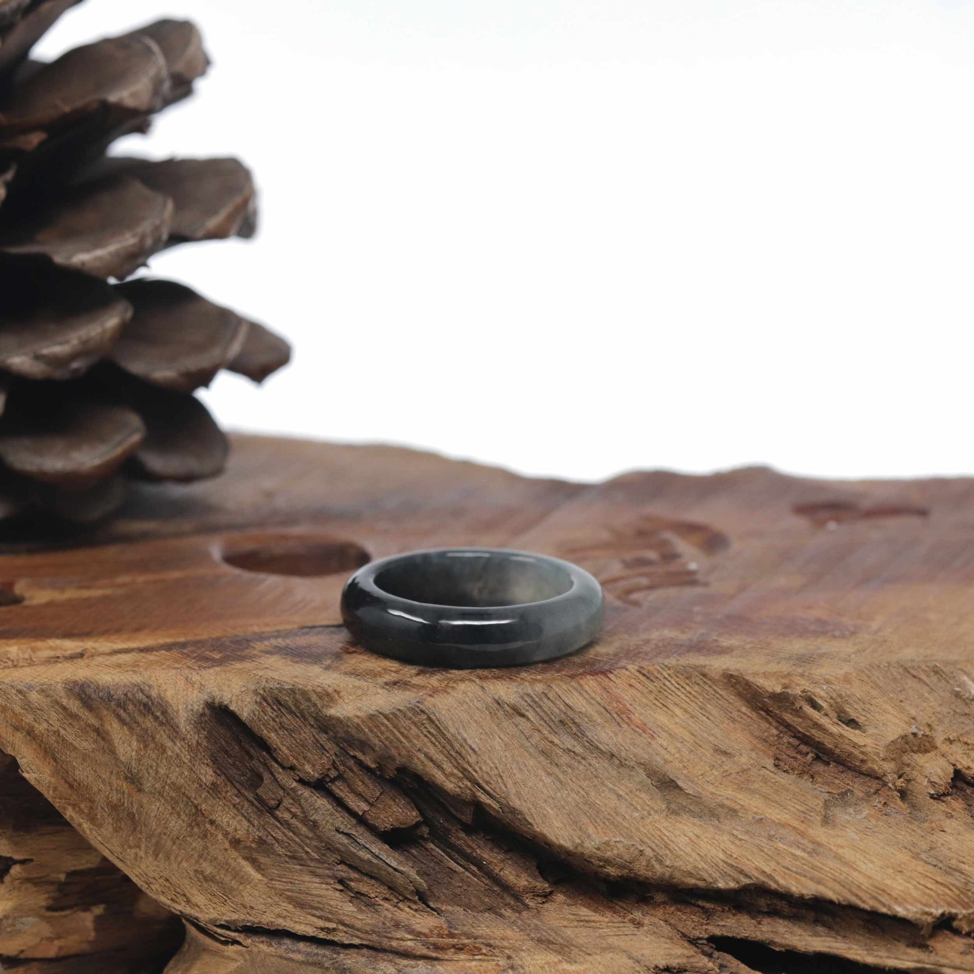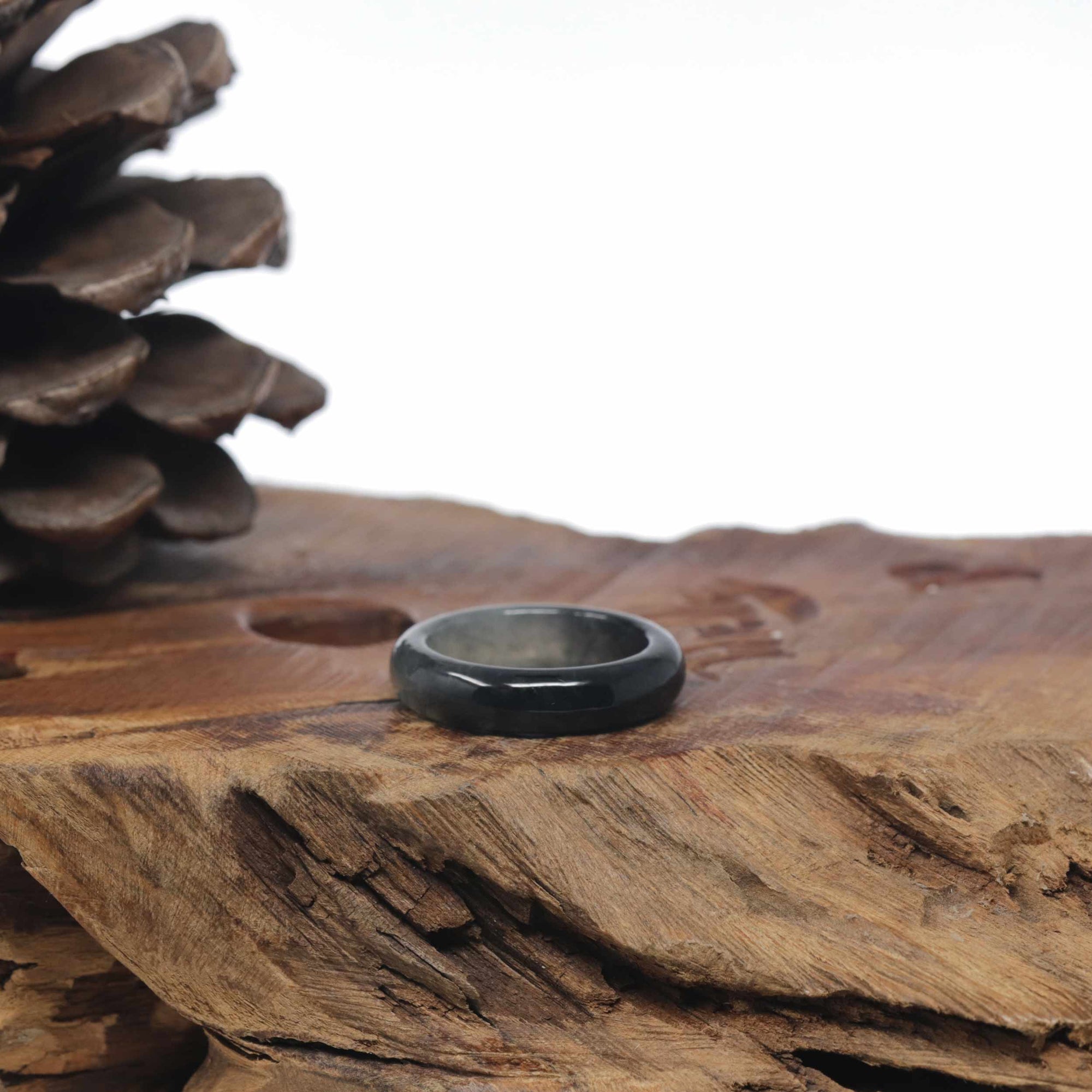 Baikalla Icy Black Wuji Burmese Jadeite Jade Traditional Ring #9.75