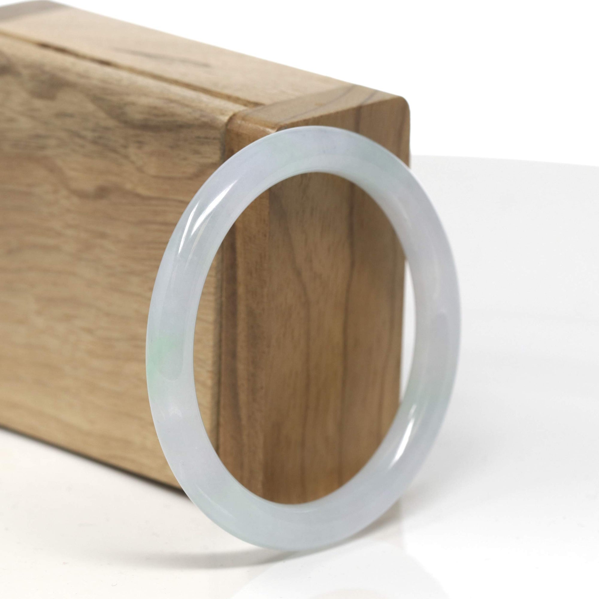 Baikalla Icy Light Green & White "Traditional Full-Round" Jadeite Jade Bangle Bracelet (54.9mm) #TT066