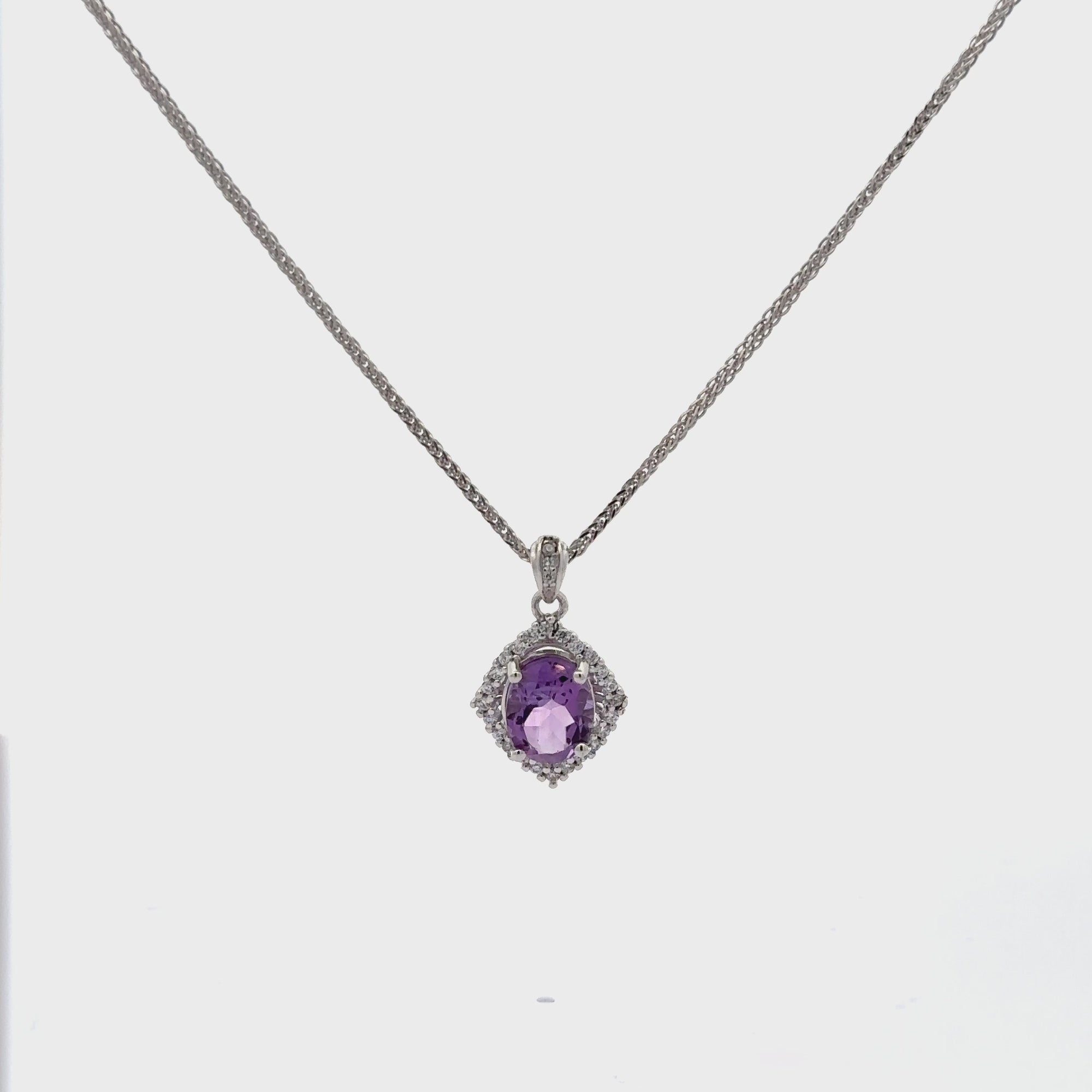 Baikalla™ Classic Sterling Silver Natural Amethyst Pendant Necklace With CZ