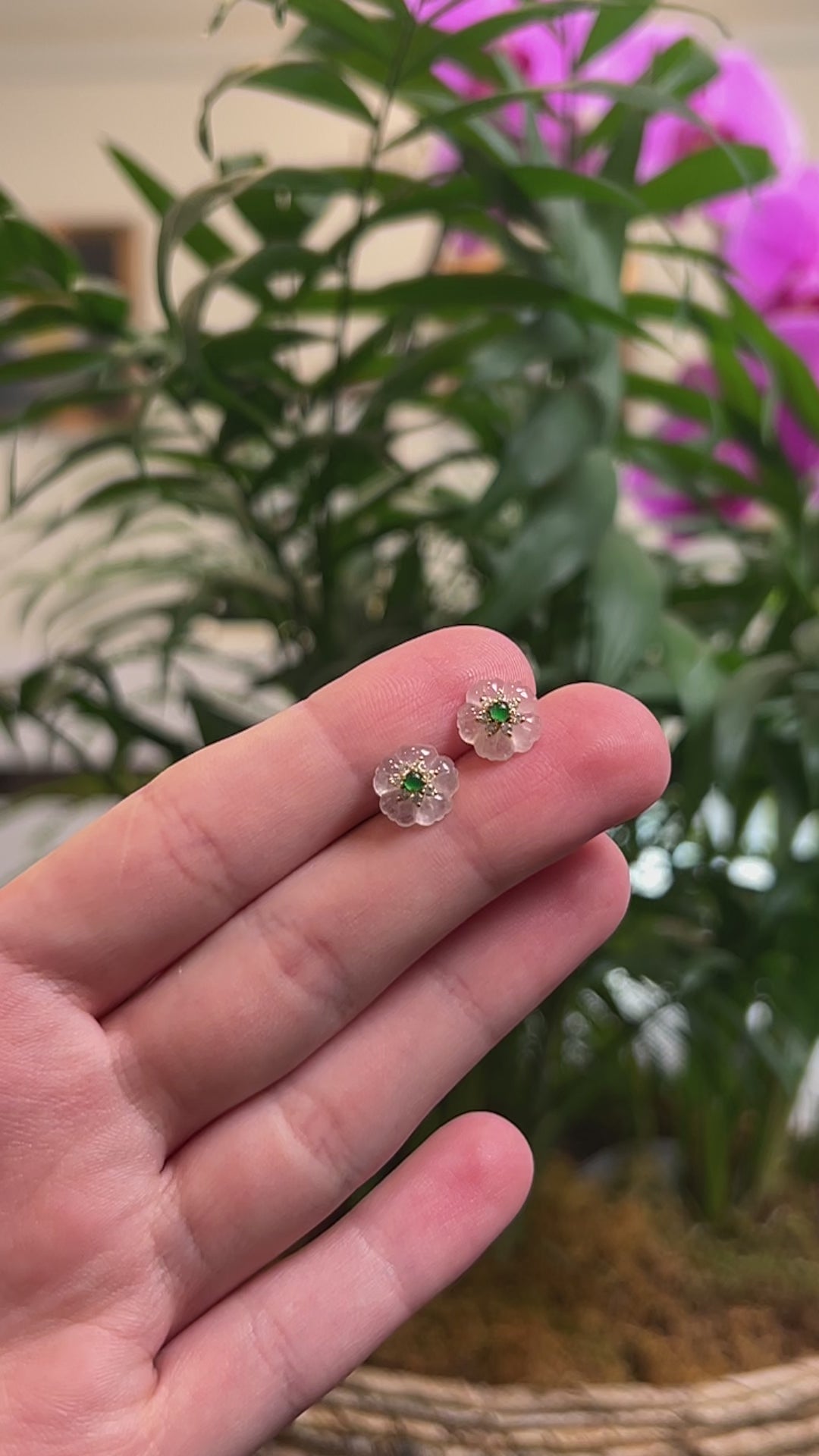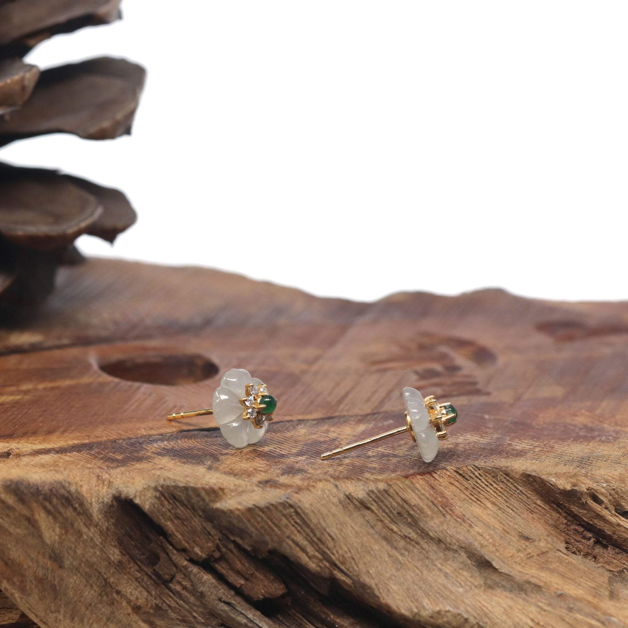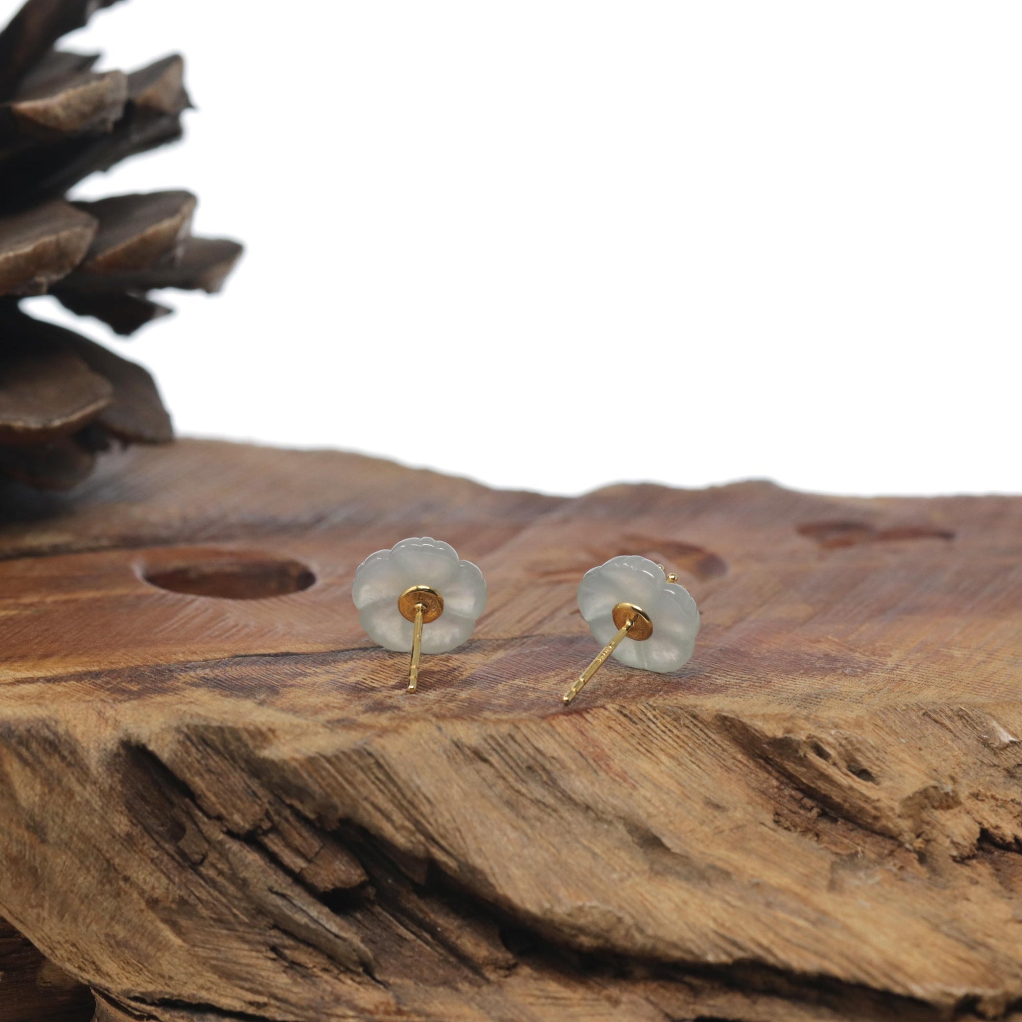 Baikalla™ "Rose Flowers" 18k Solid Gold High-end Real Green Jade Rose Flower Earrings