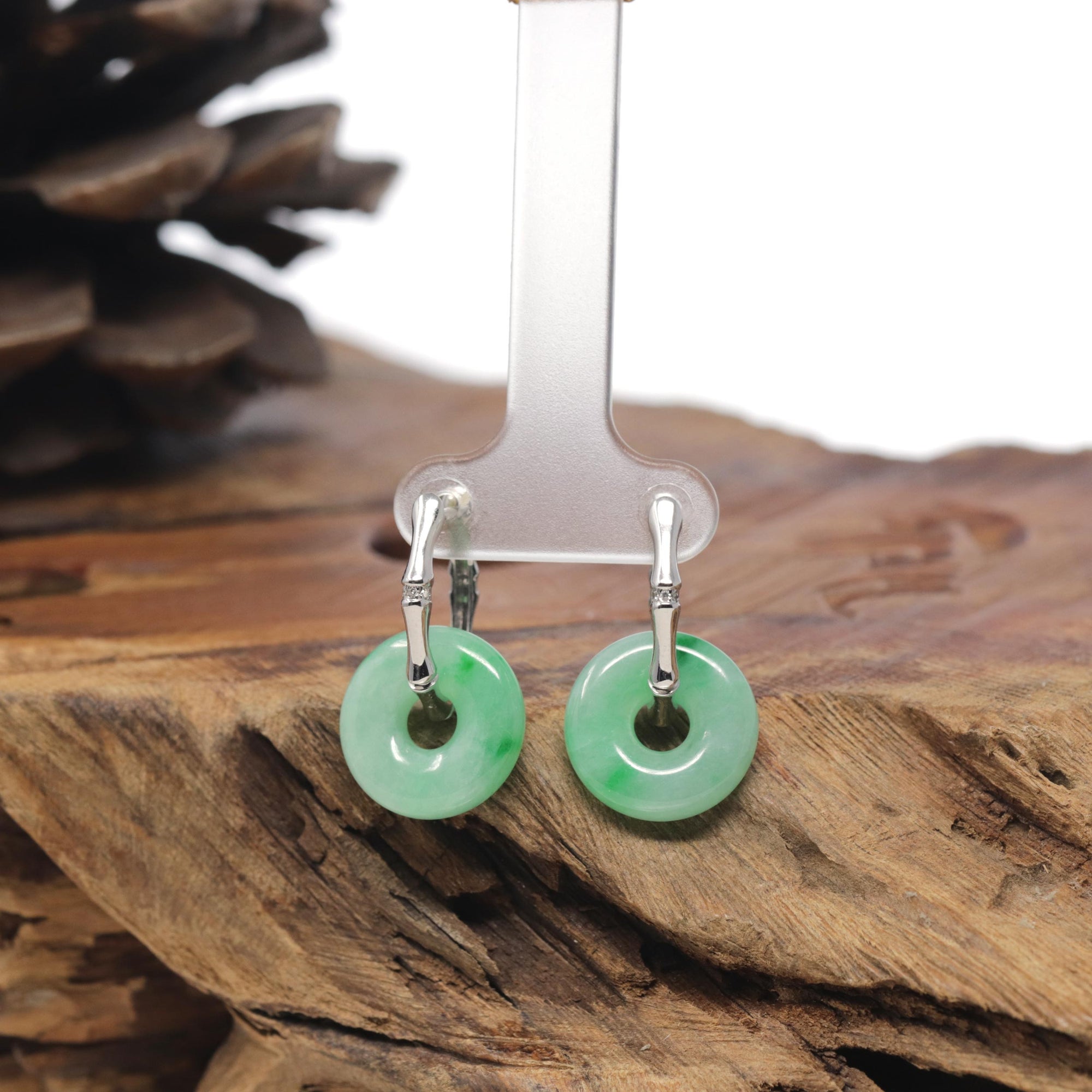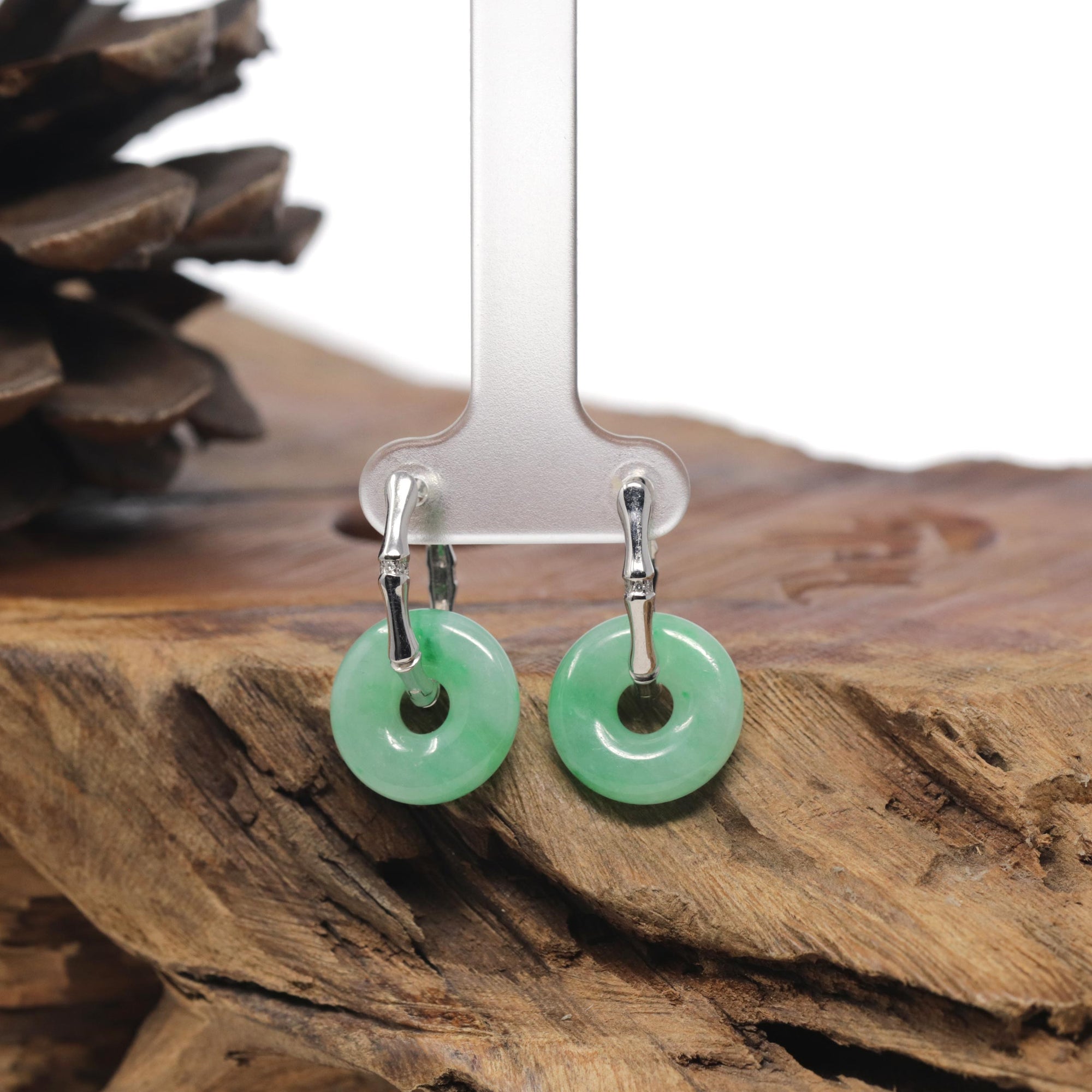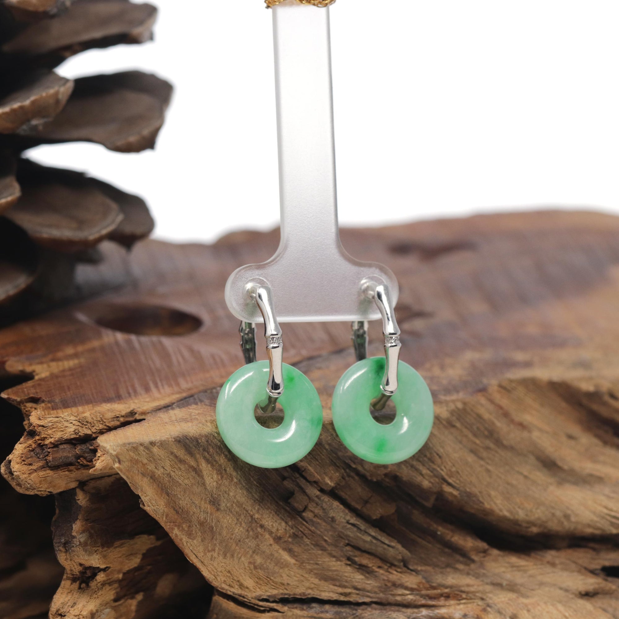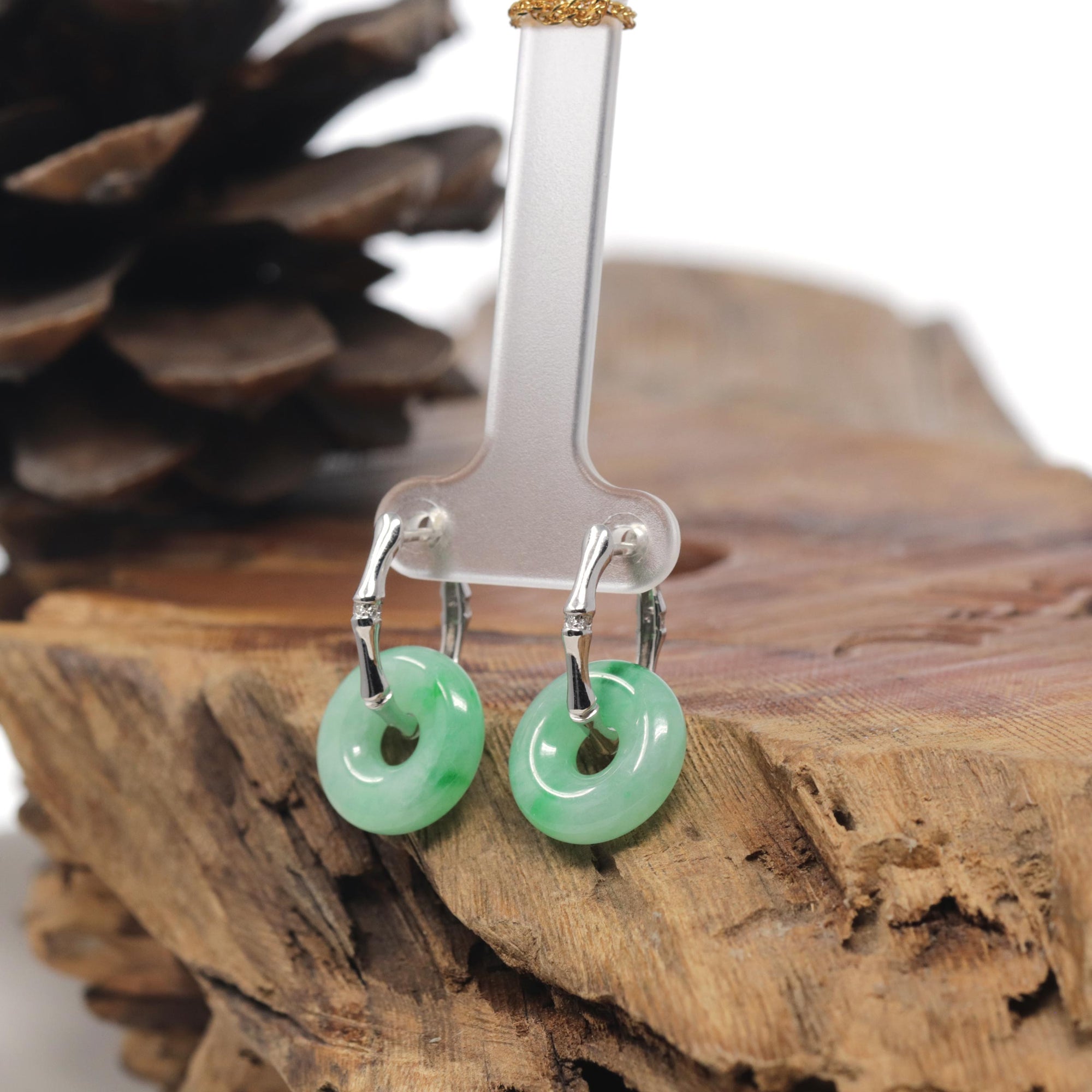 Baikalla 18k White Gold Icy Vibrant Apple-Green "Ping An Kou" Burmese Jadeite Jade Bamboo Hoop Earrings