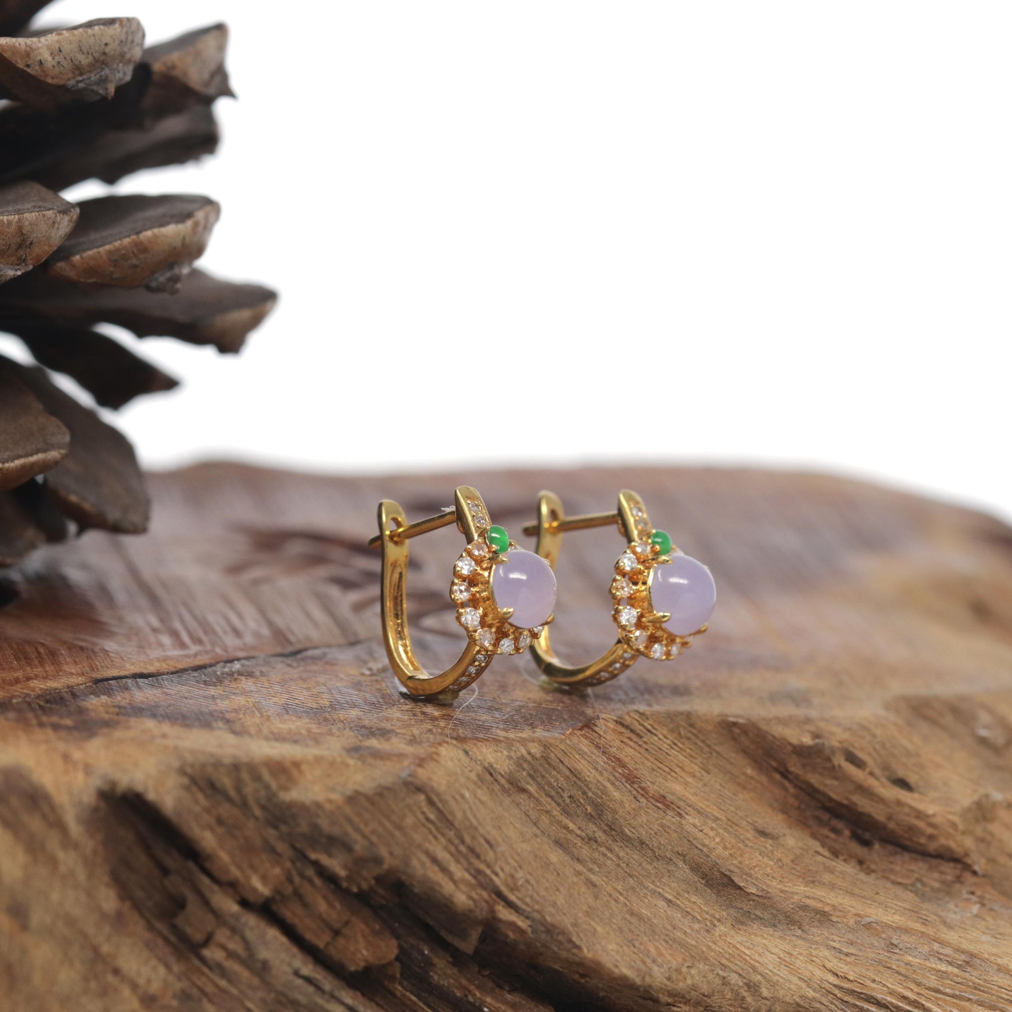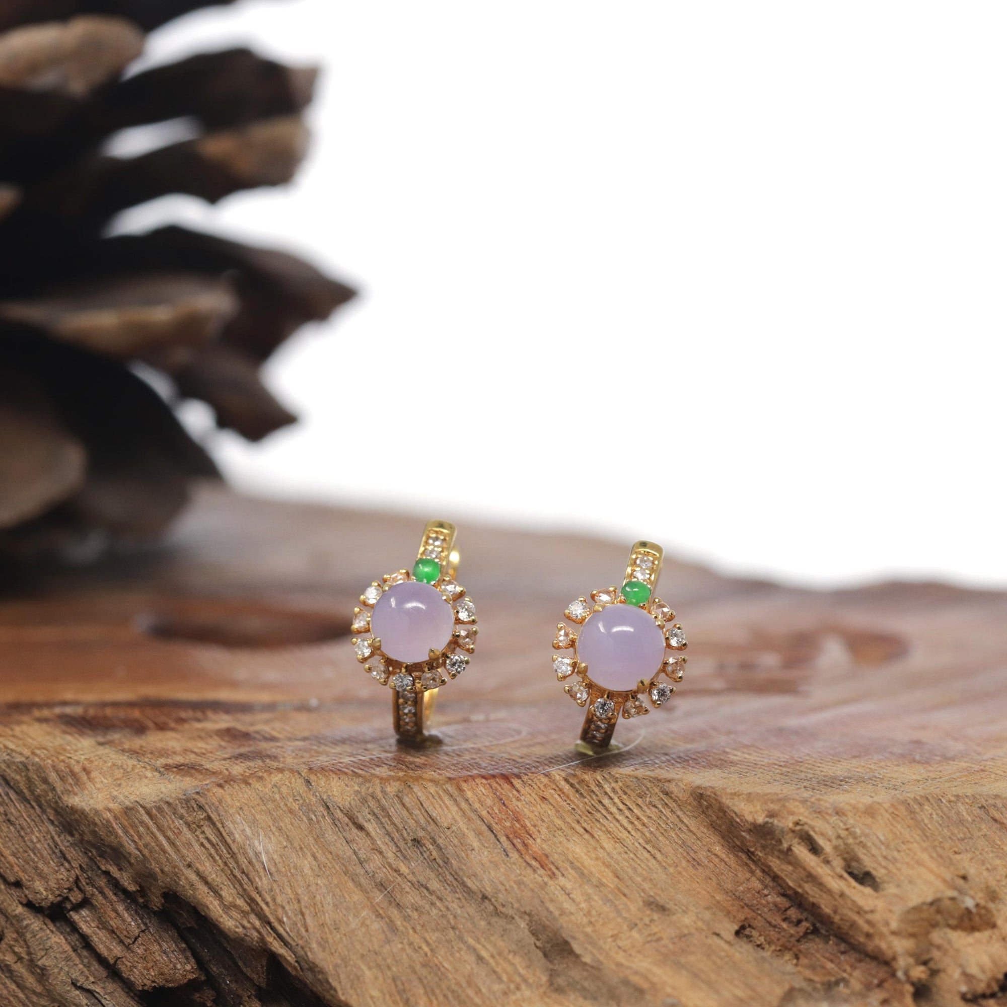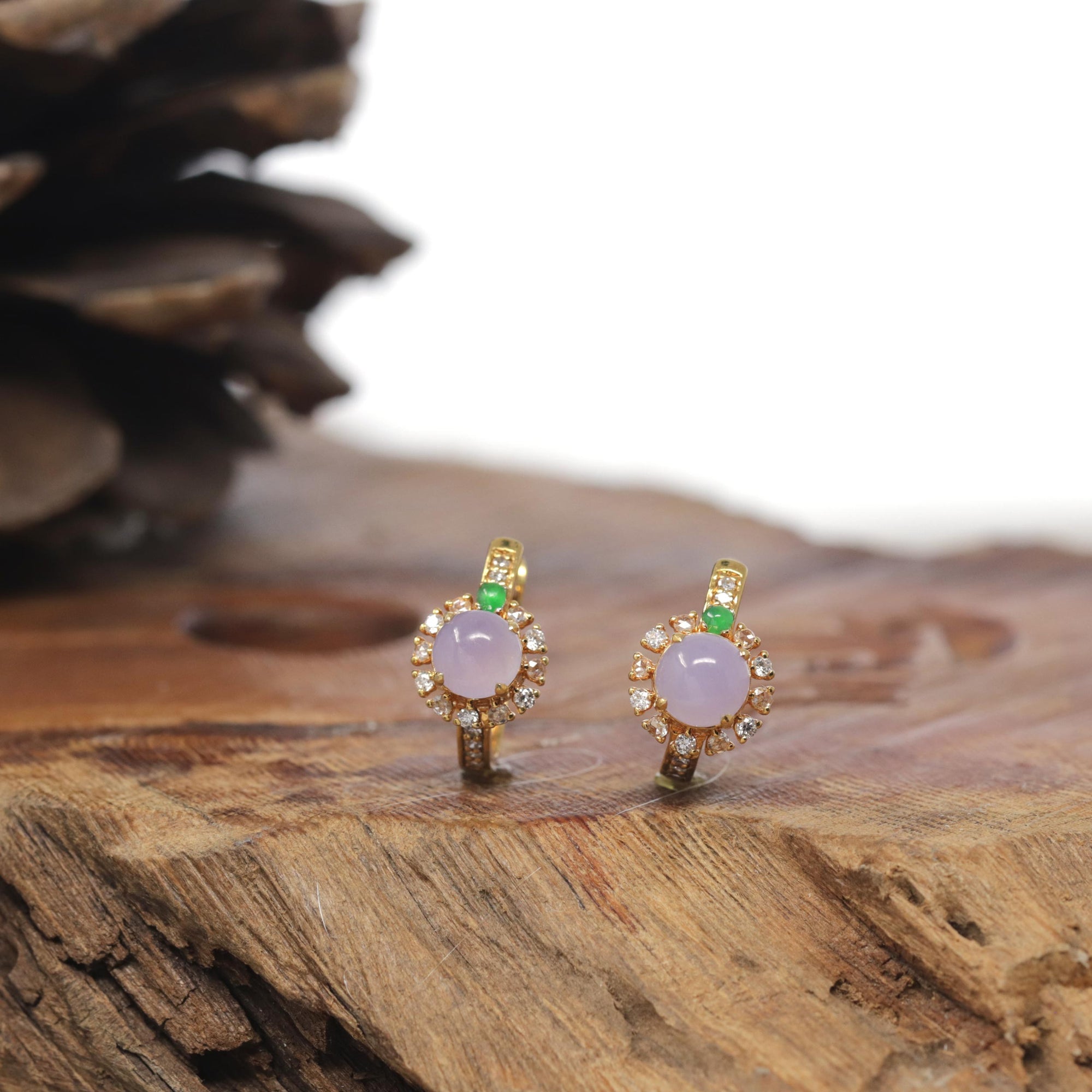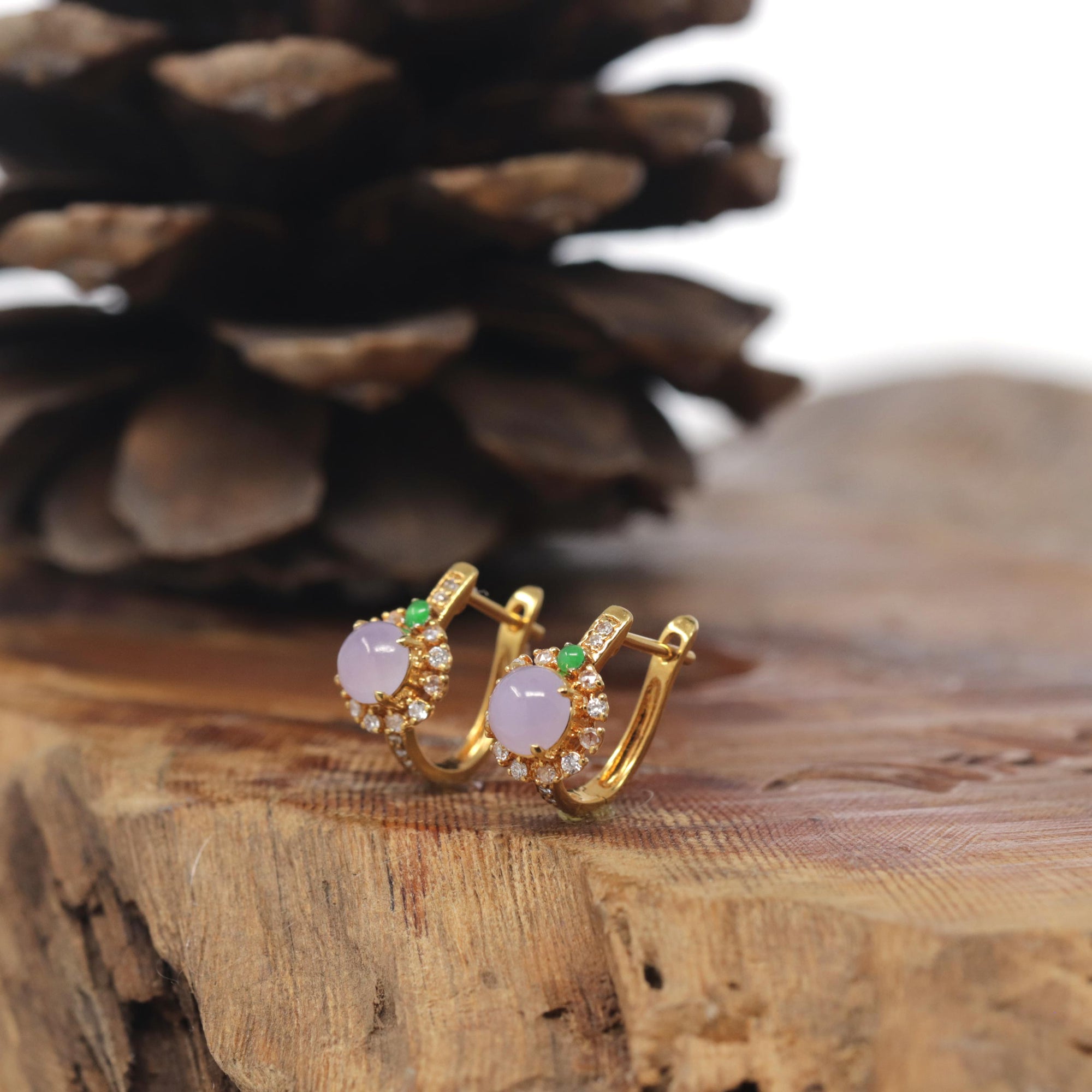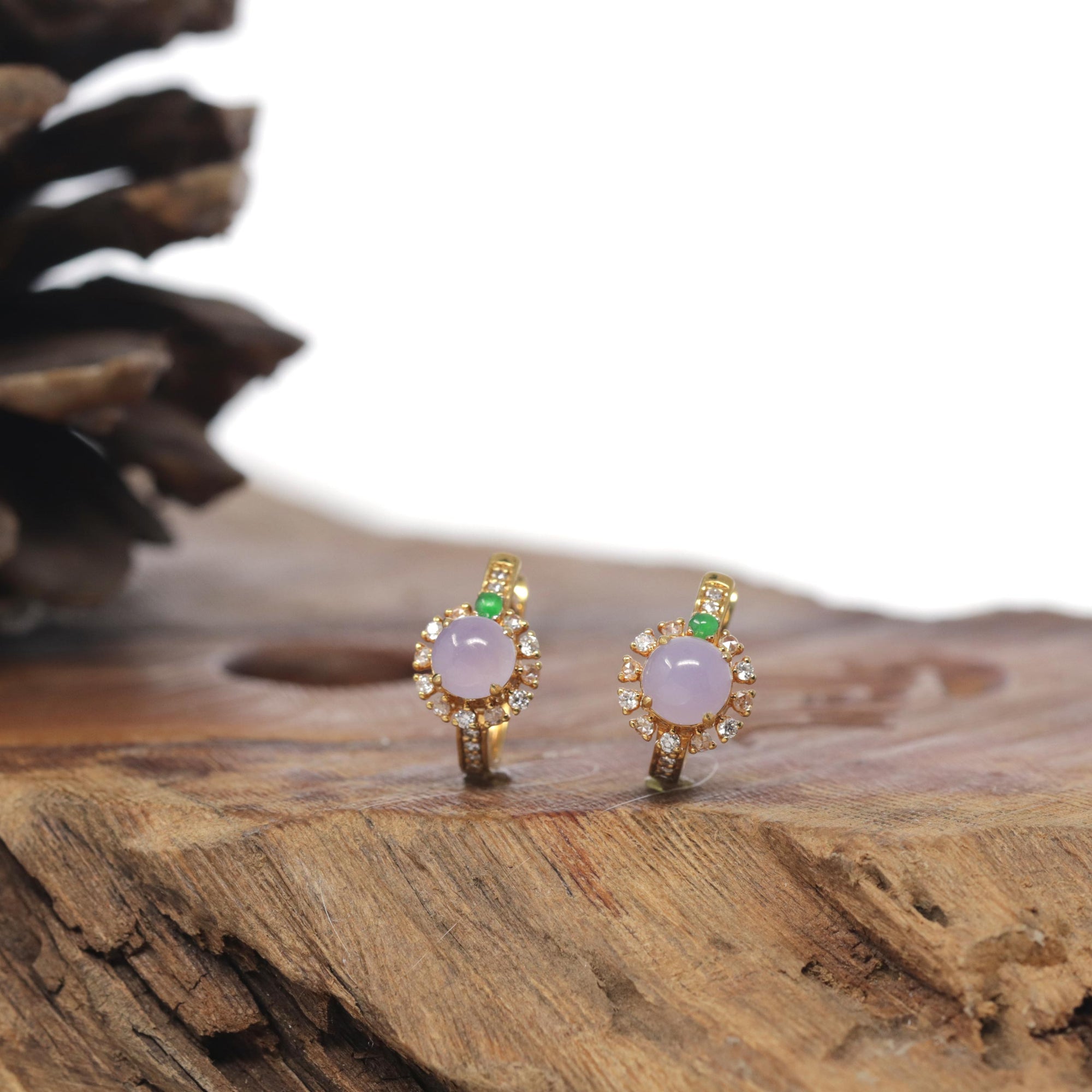 Baikalla 18K Yellow Gold Icy Lavender Burmese Jadeite Jade "Huggie" Earrings W/ Natural Diamonds & Imperial Green Jade