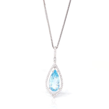 Baikalla Jewelry Gemstone Pendant Necklace Pendant Only 14k White Gold Natural Swiss Blue Topaz Tear Drop Necklace With Diamonds