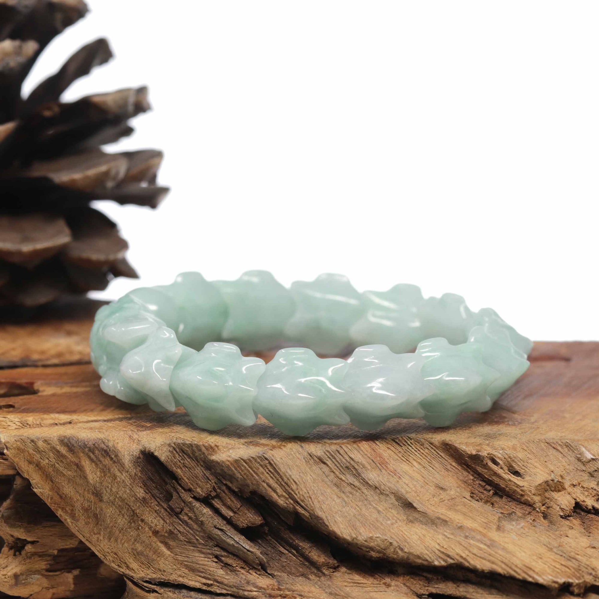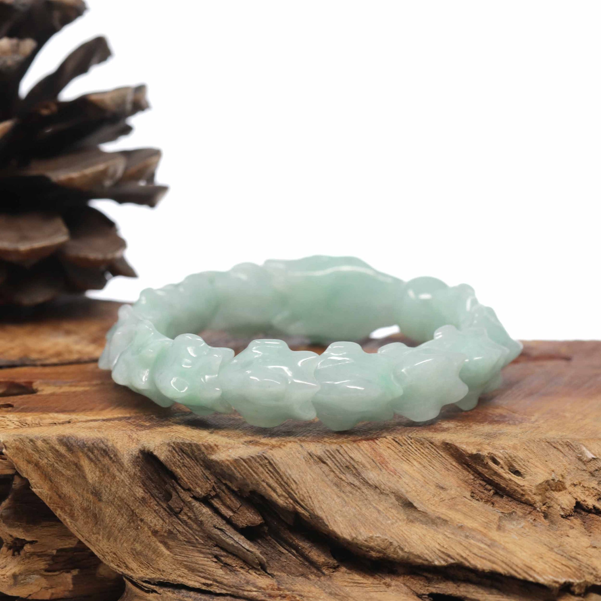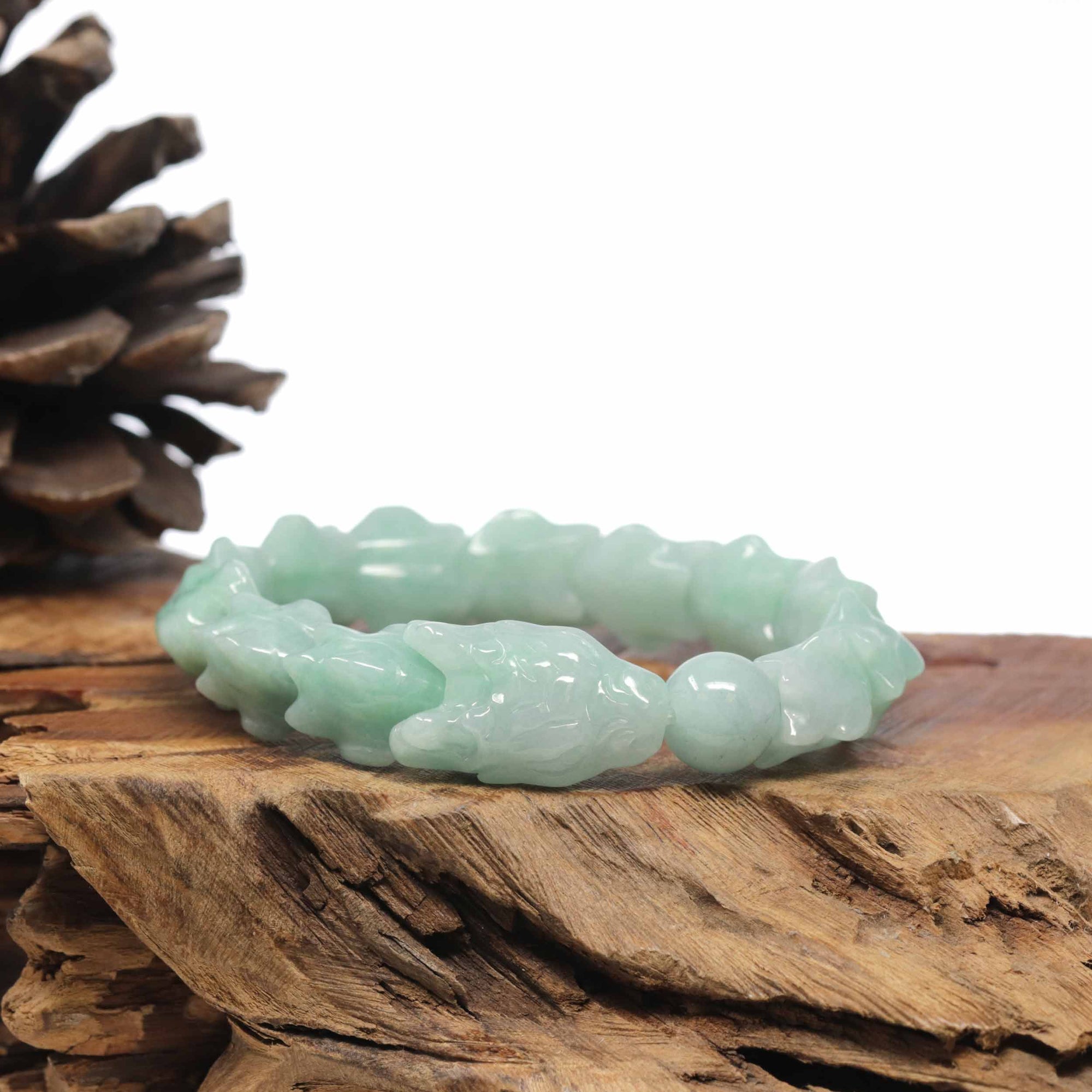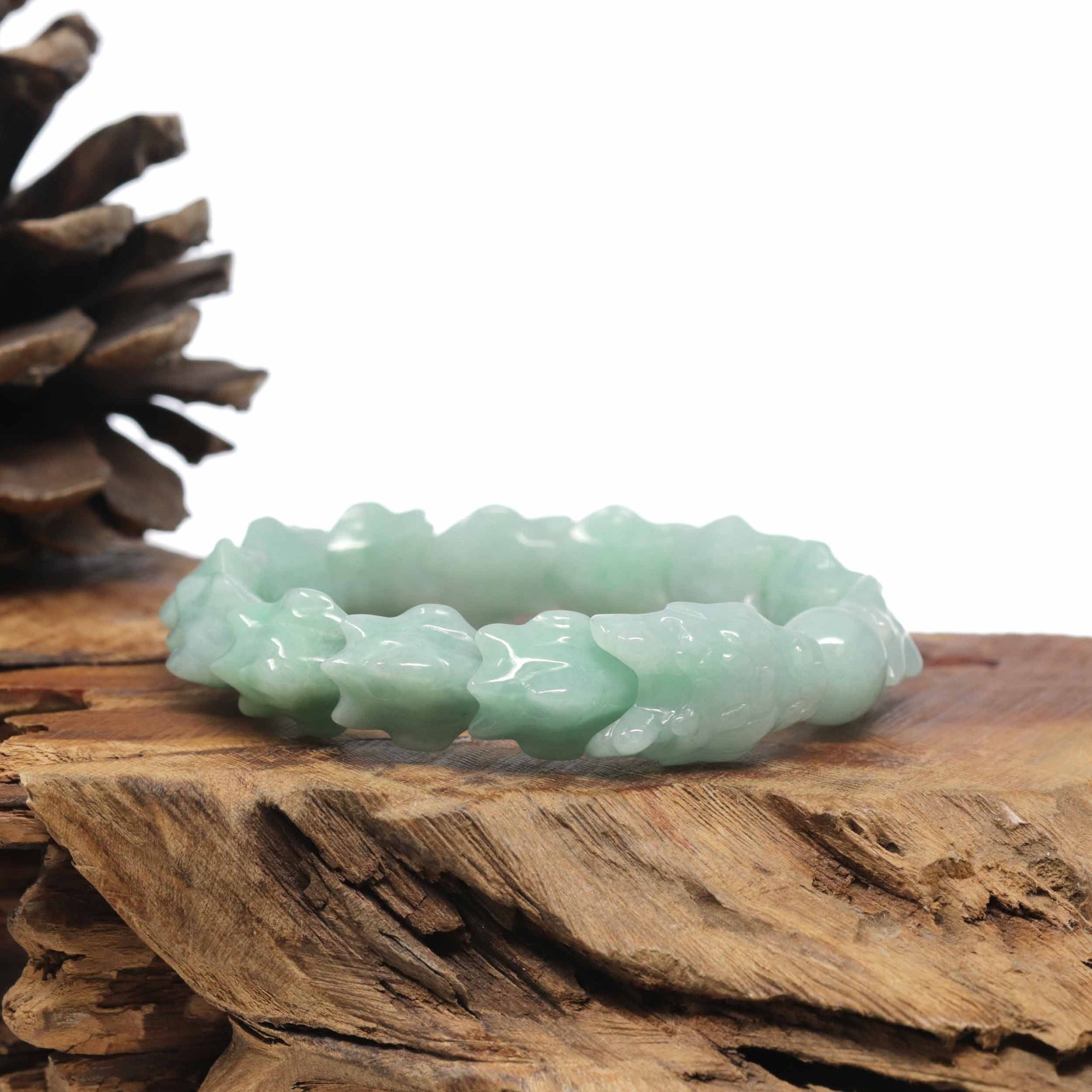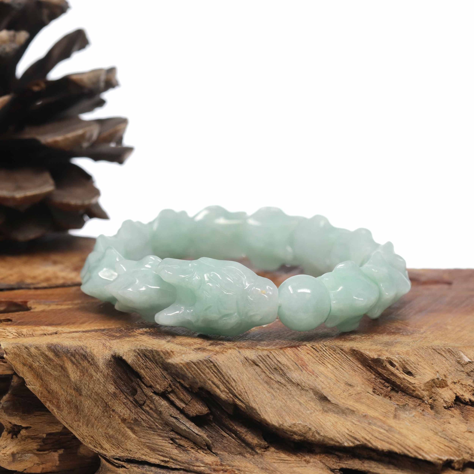 The jade dragon has long represented strength, protection, and rising fortune. In authentic jade, its presence becomes even more profound. Our artisans study every stone before carving, allowing the jade’s natural grain, luminous green hues, and unique formations to guide the final form. This results in a carving that is not only visually striking but truly one-of-a-kind—no two dragons will ever be alike.