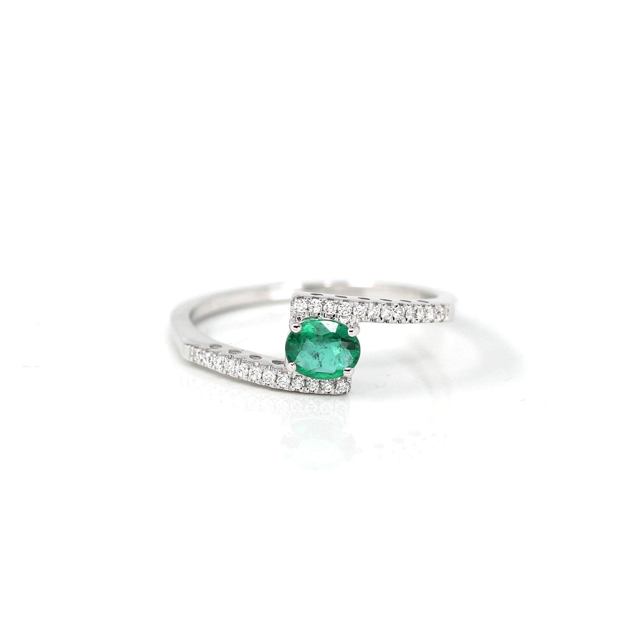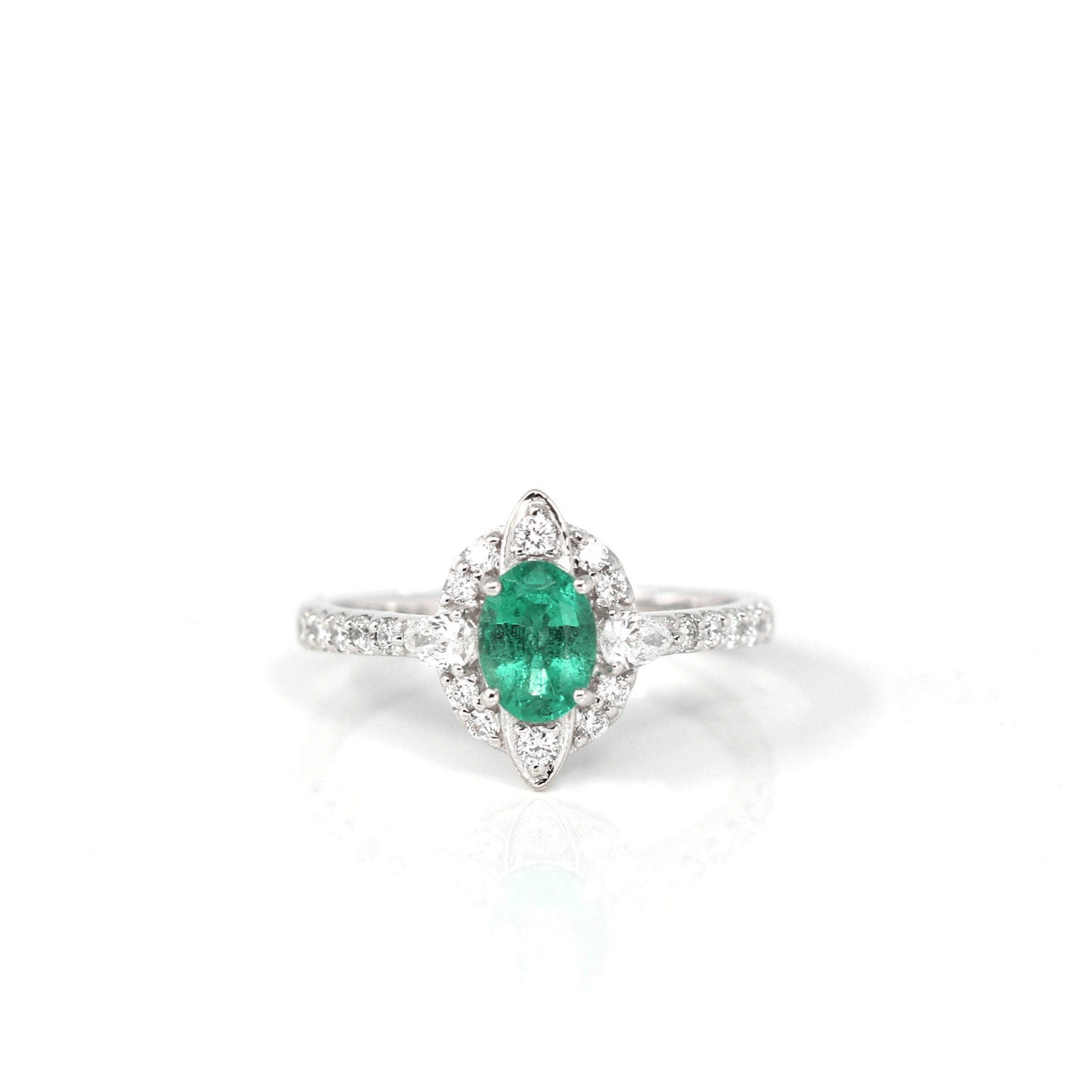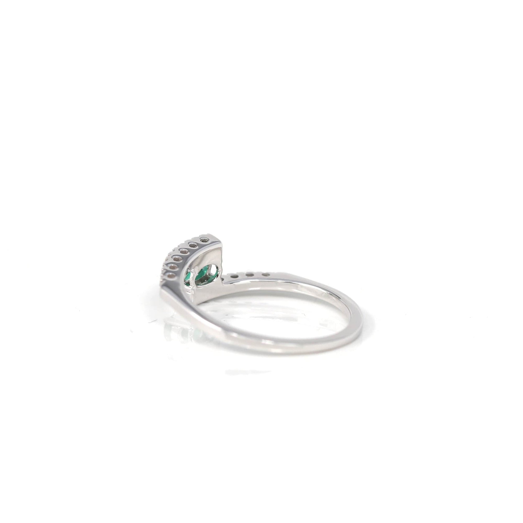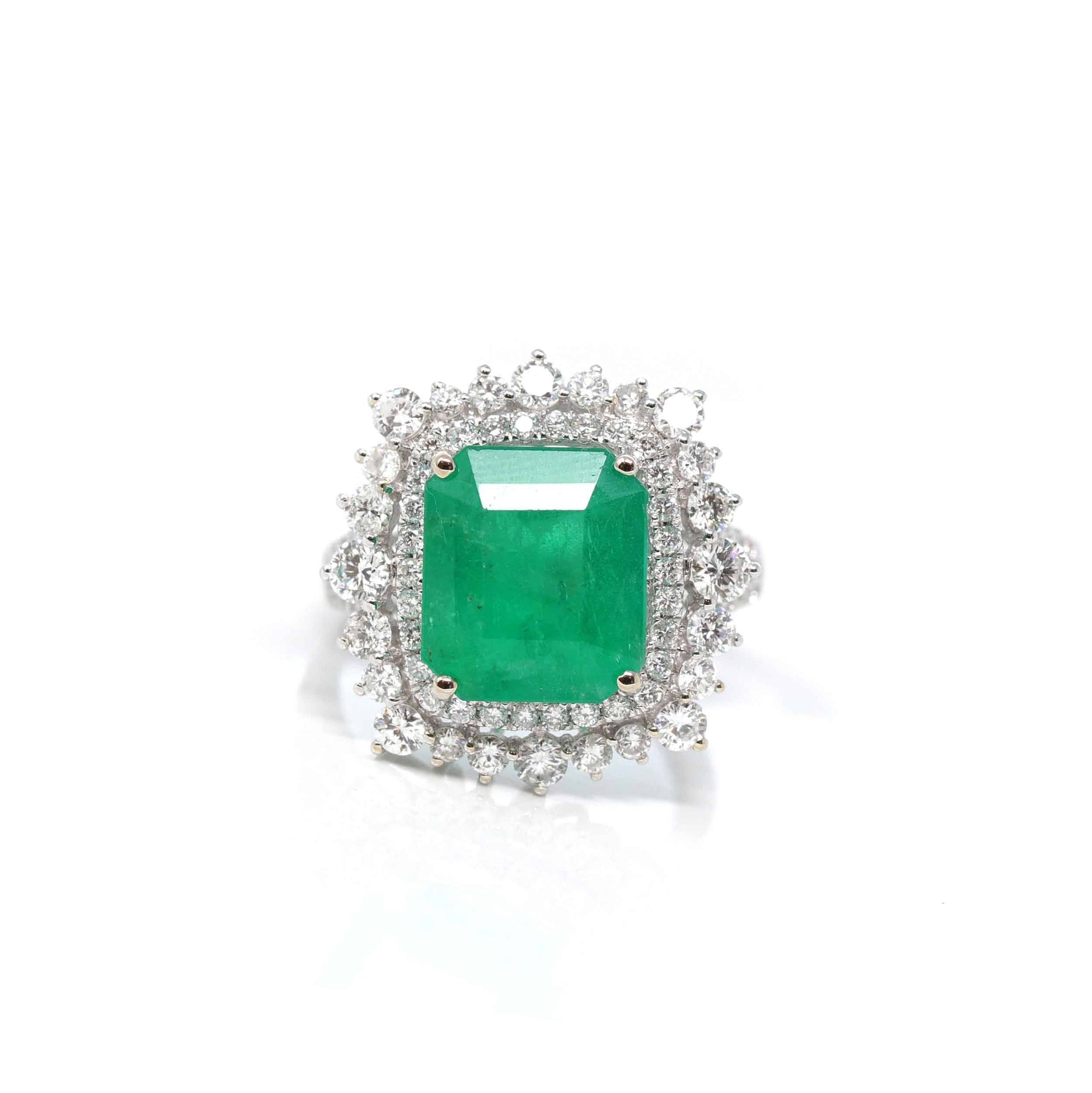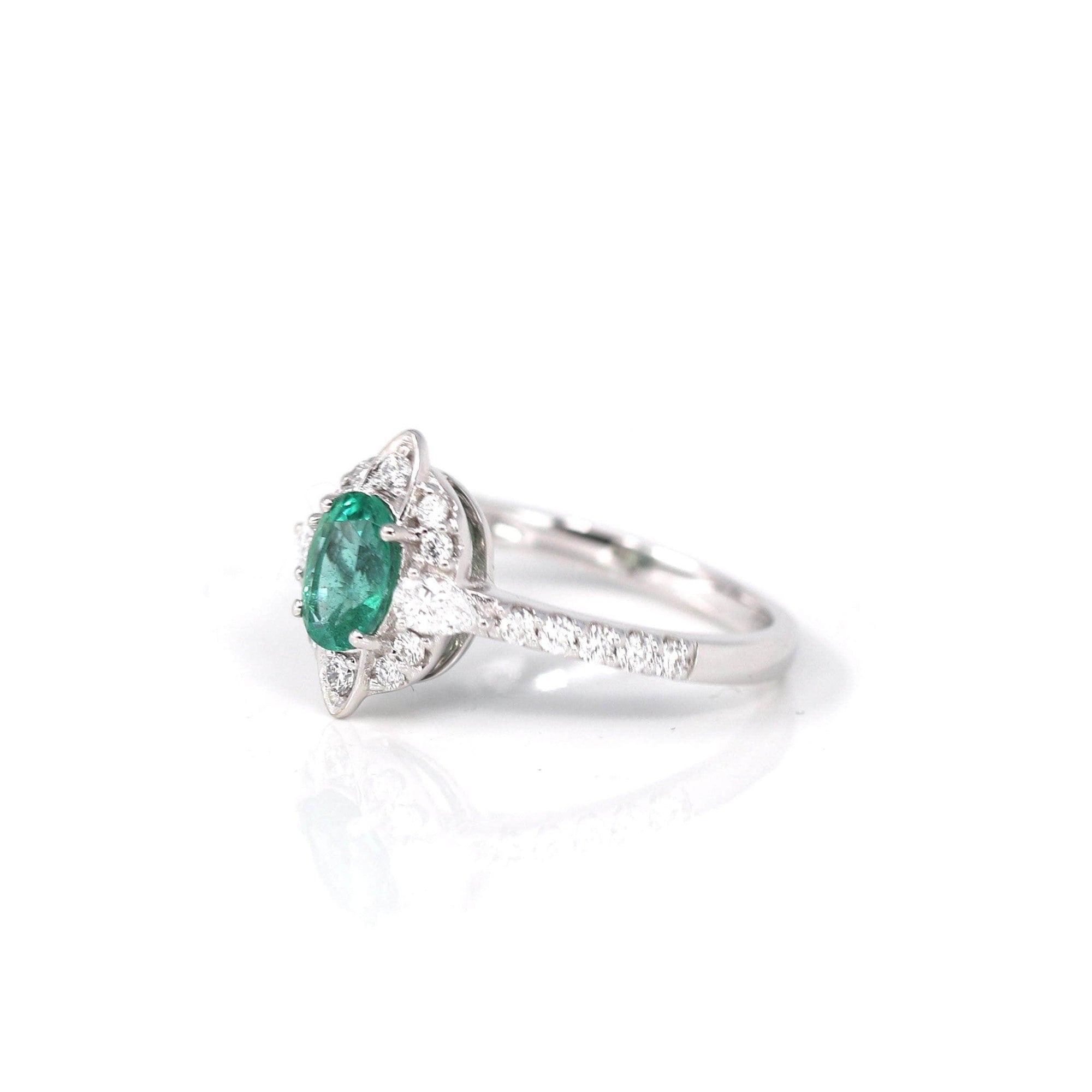 18k White Gold AA Natural Emerald Ring with Diamonds