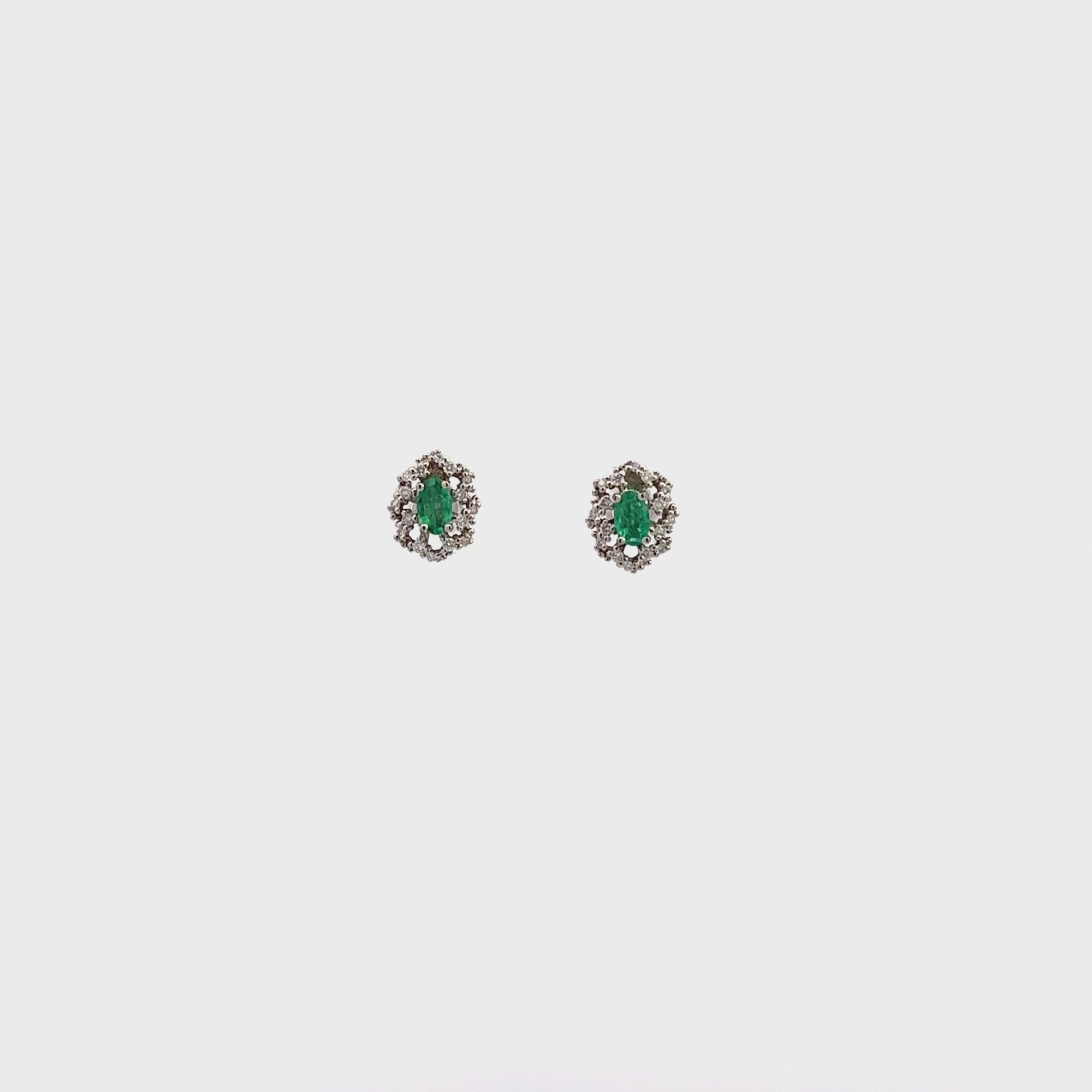 Baikalla™ 14k Natural Oval Emerald Earrings W/Natural Diamond Halo