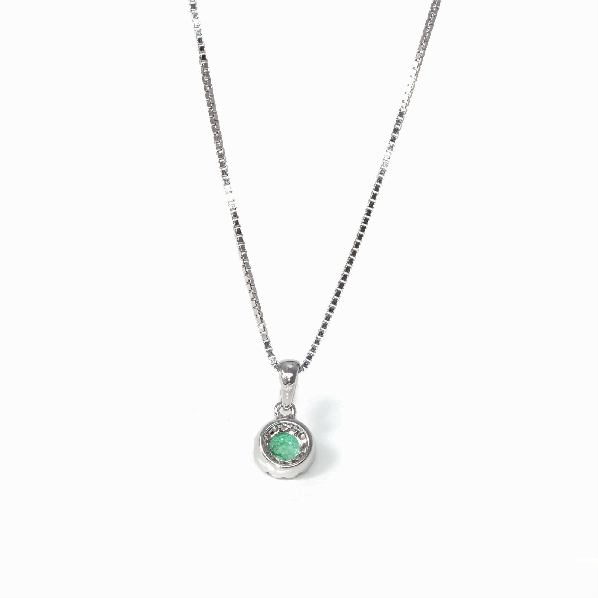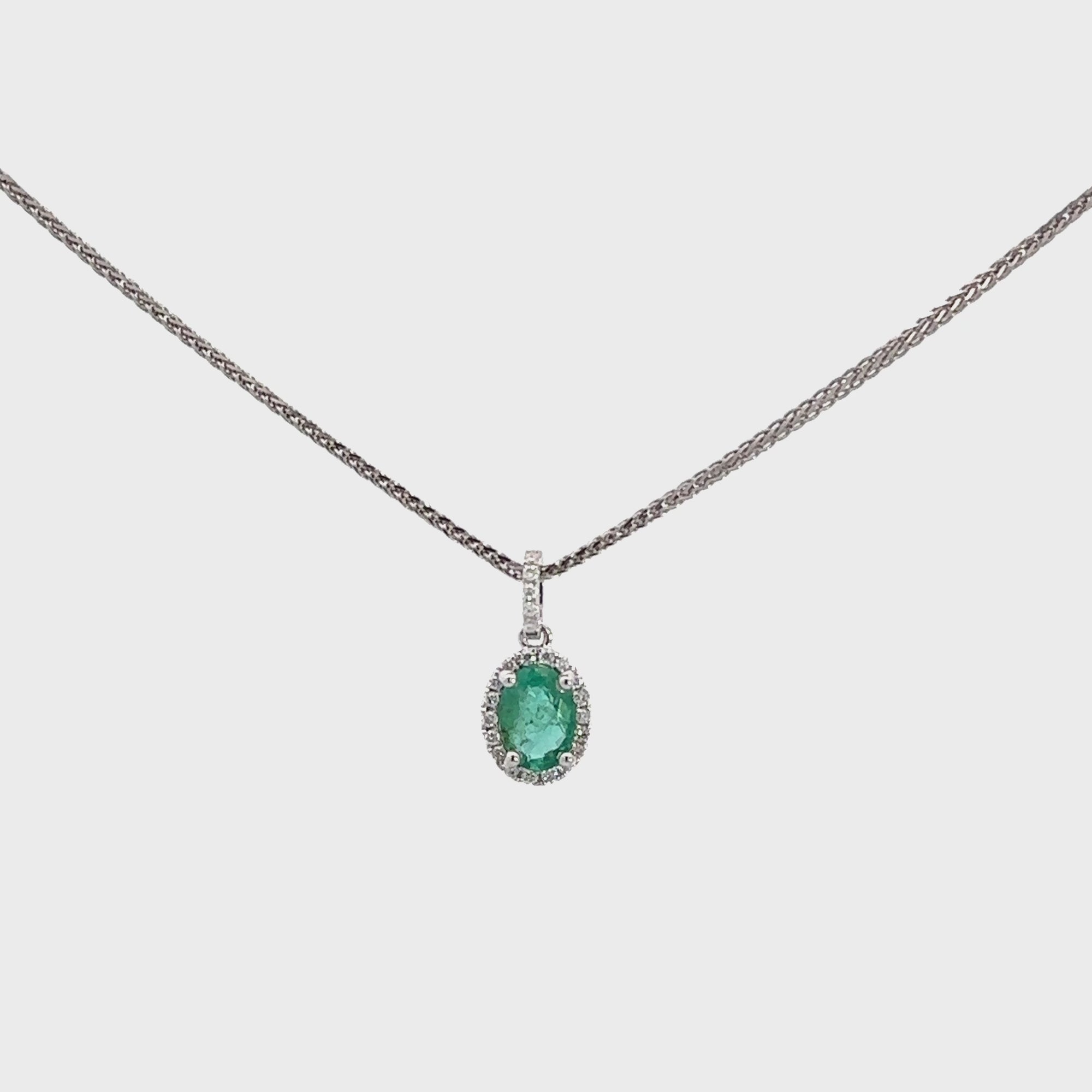 18K White Gold Emerald & 1/6 CTW Diamond Pendant Necklace
