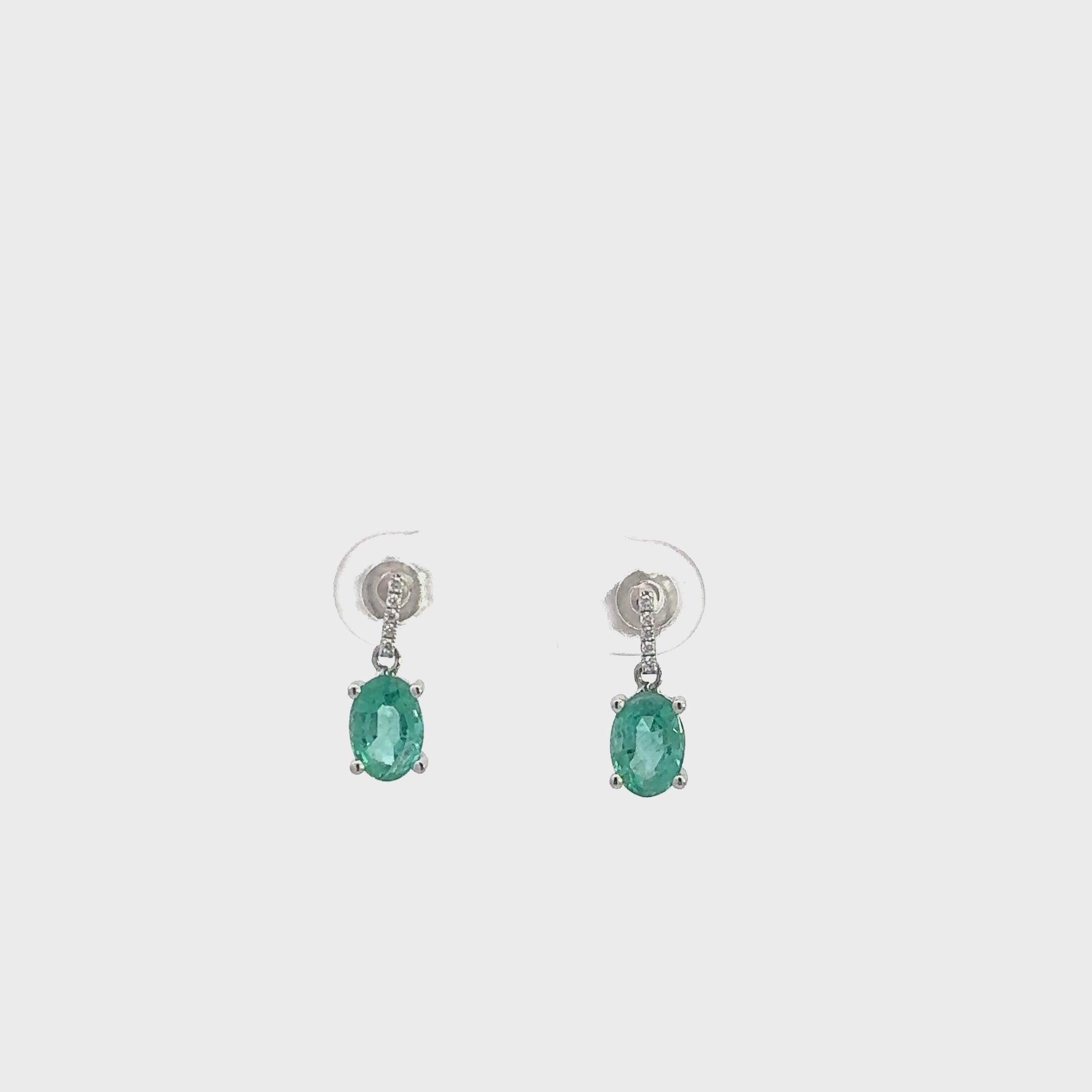Baikalla™ 14k Classic White Gold Natural Emerald Dangle Earrings w/Diamonds