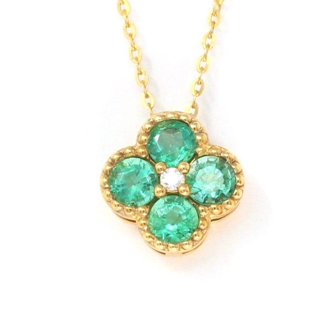 18k Yellow Gold Emerald Clover With 1/5 CTW Diamonds Pendant Necklace