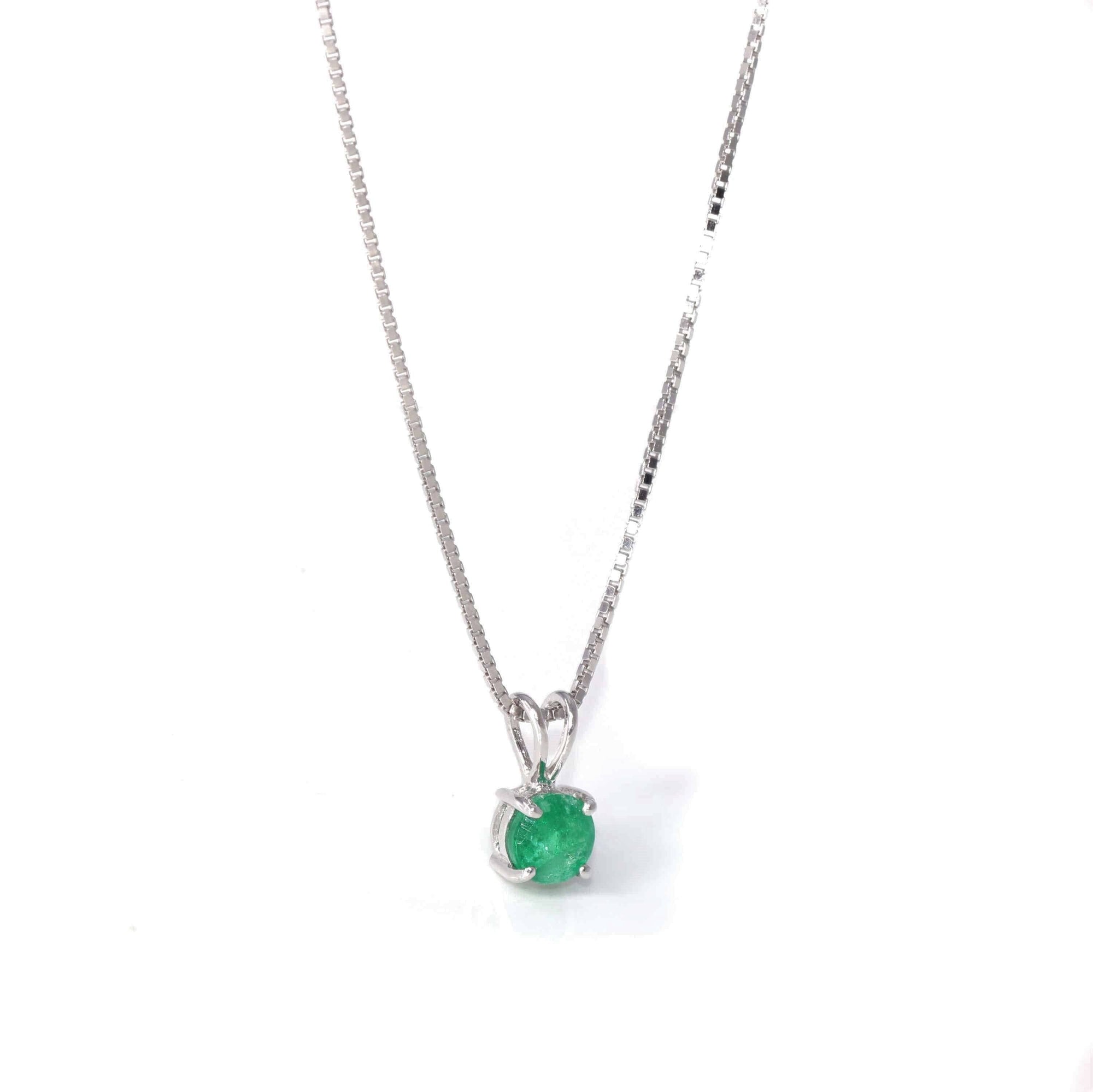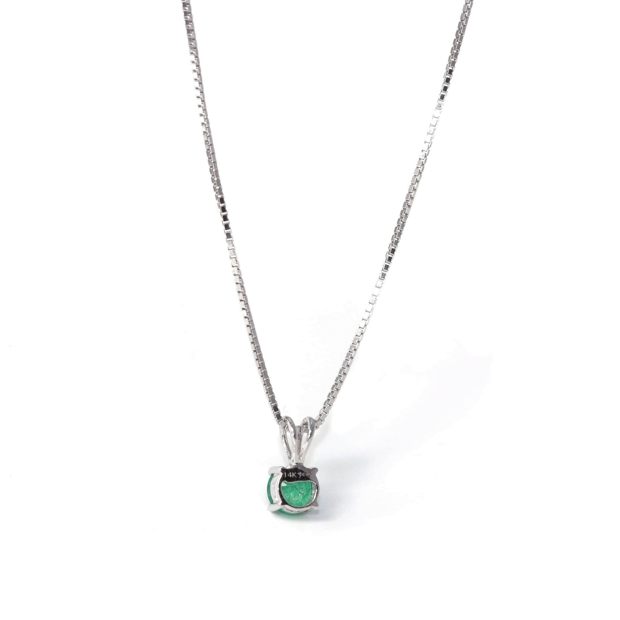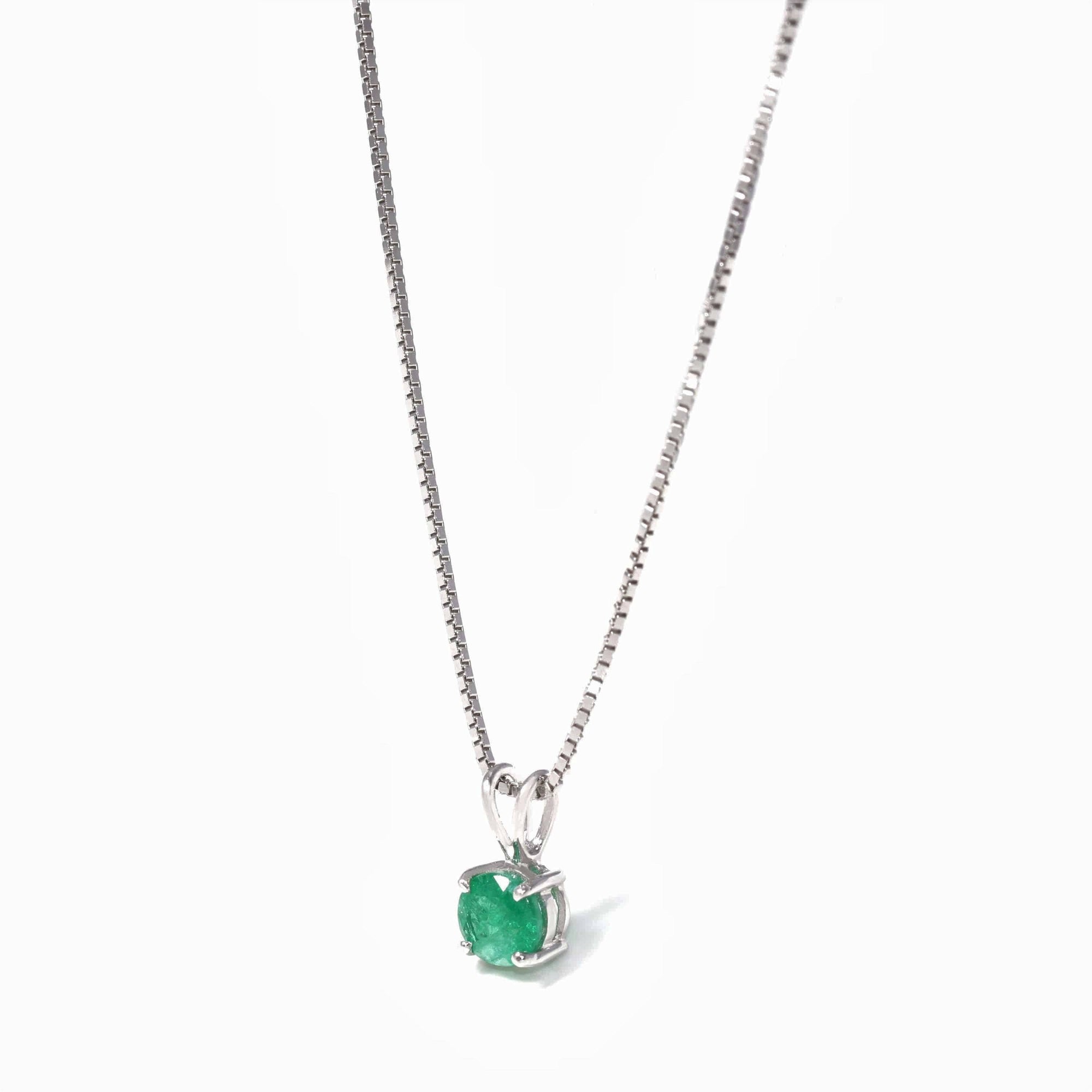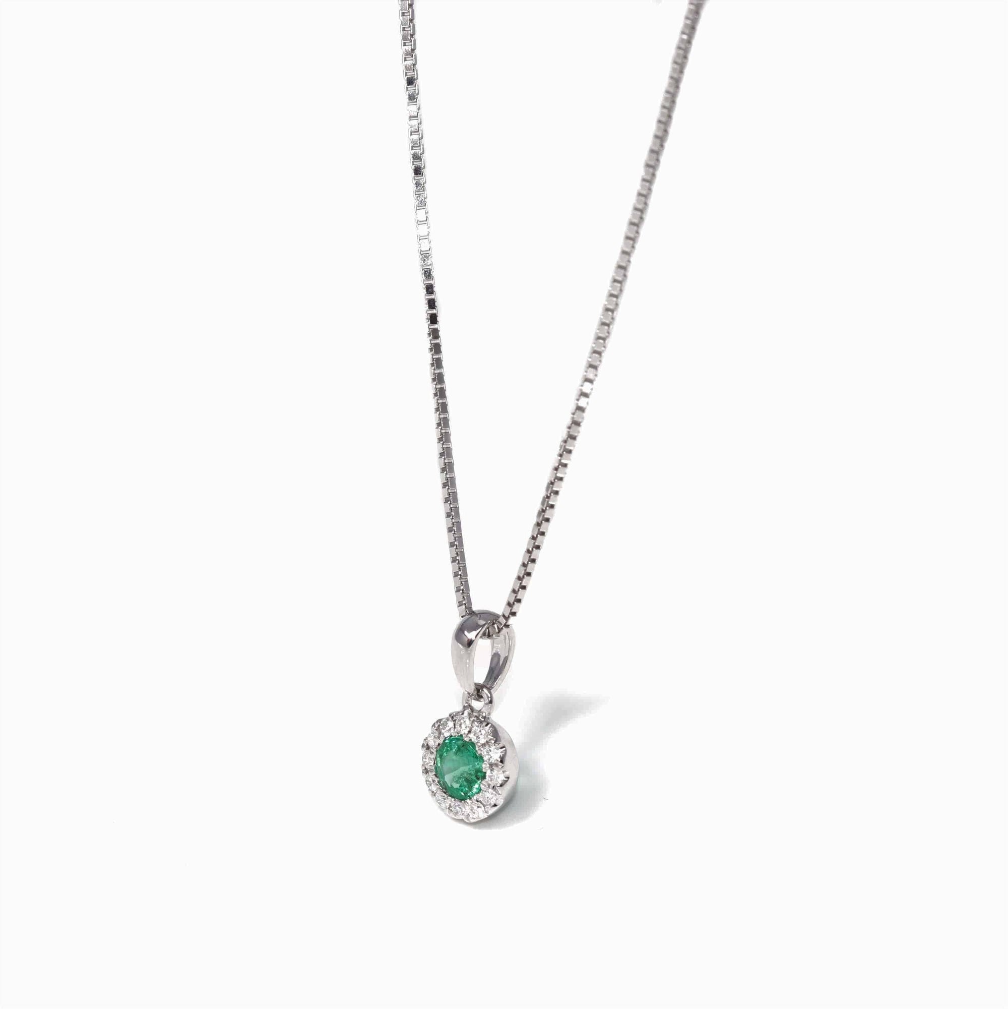 Baikalla™ 18k White Gold AAA Emerald Round 4 Prong Set Necklace With Diamond