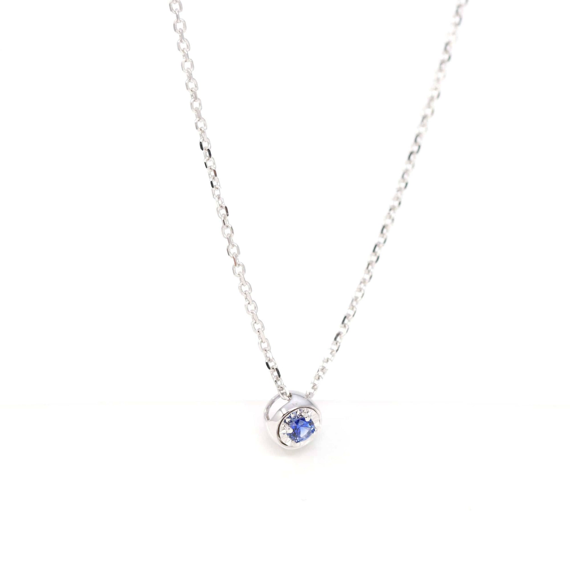 Baikalla™ 14k White Gold Sapphire Round 4 Prong Set Necklace With Diamond-Cut Halo