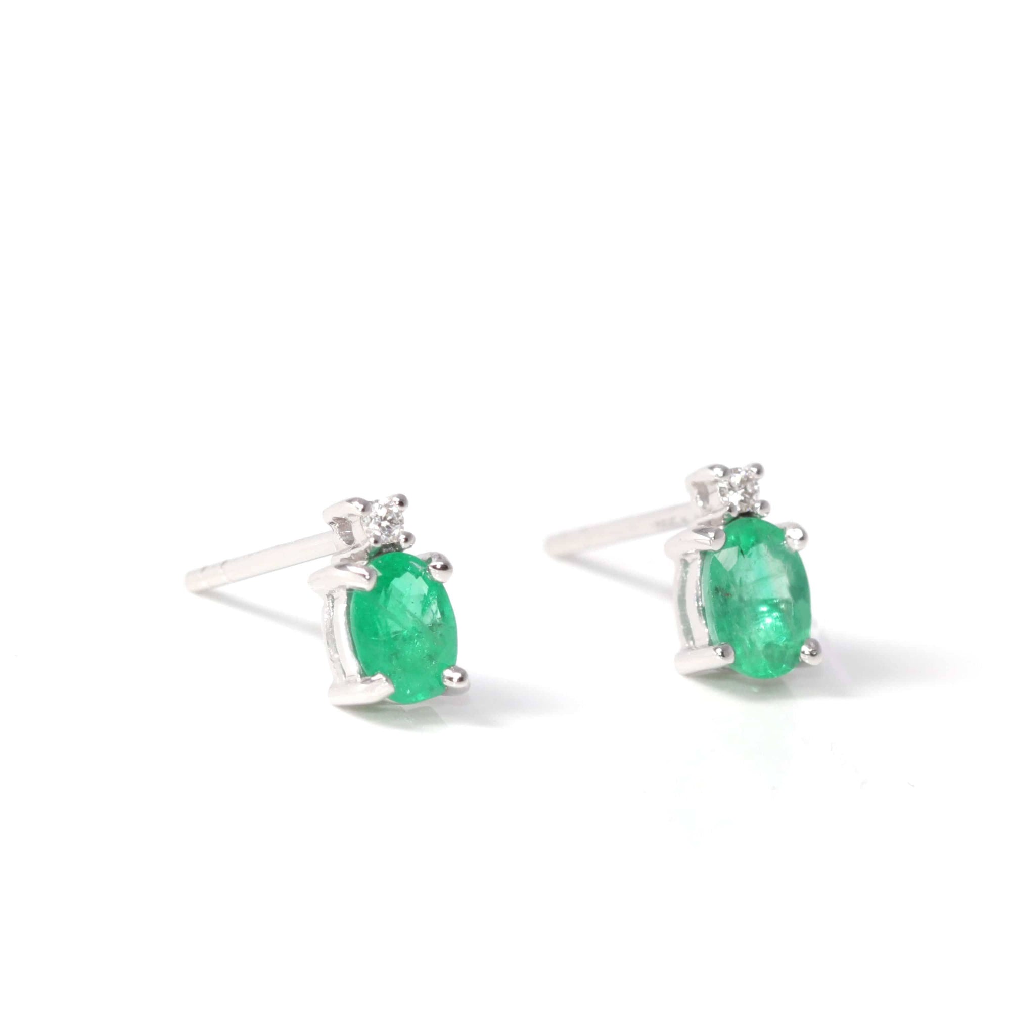 Baikalla™ Classic 18k White Gold AA Emerald Stud Earrings With Diamonds