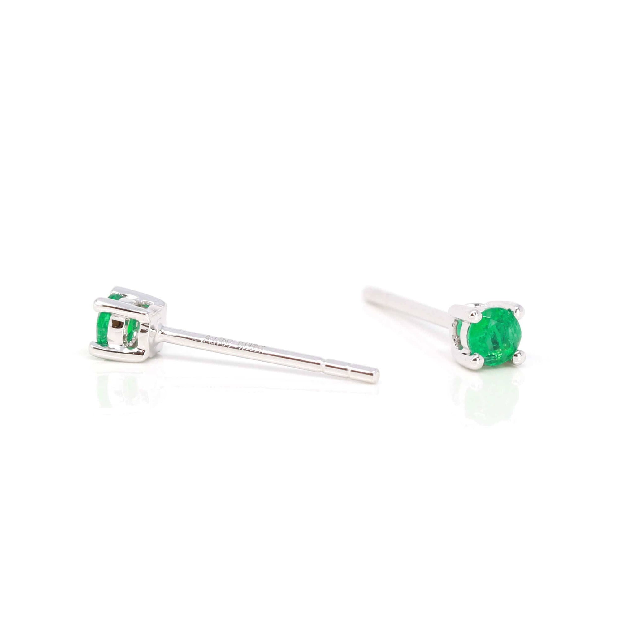 Baikalla™ 14k White Gold Emerald Round 4 Prong Stud Earrings