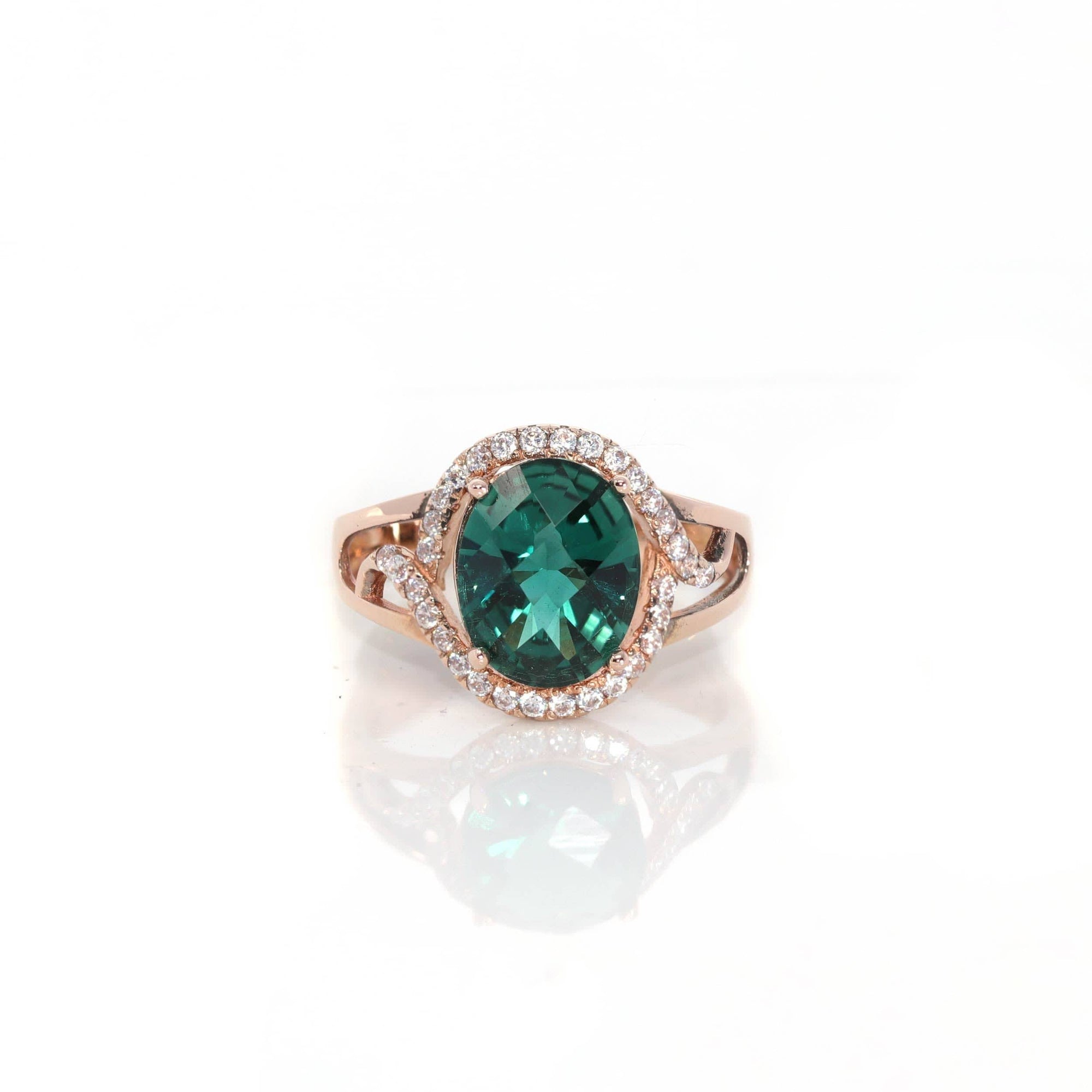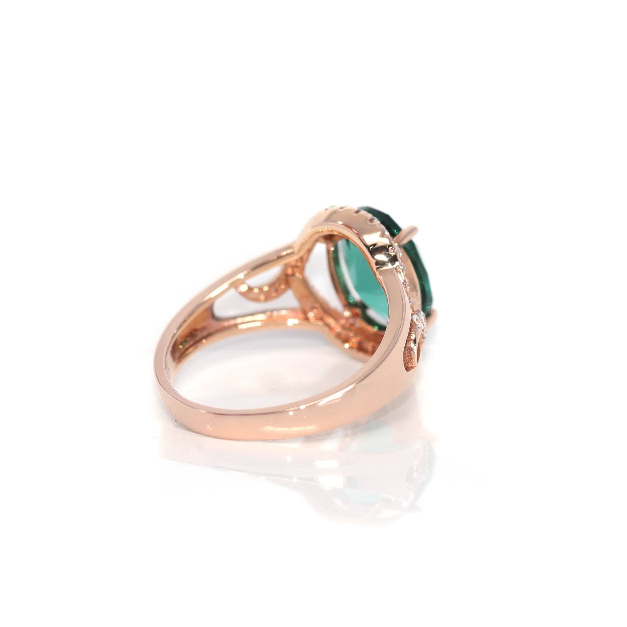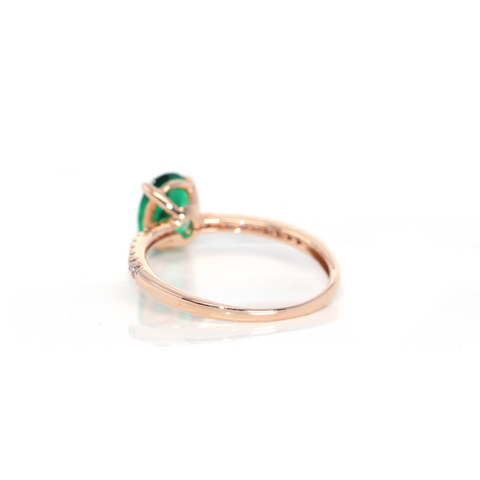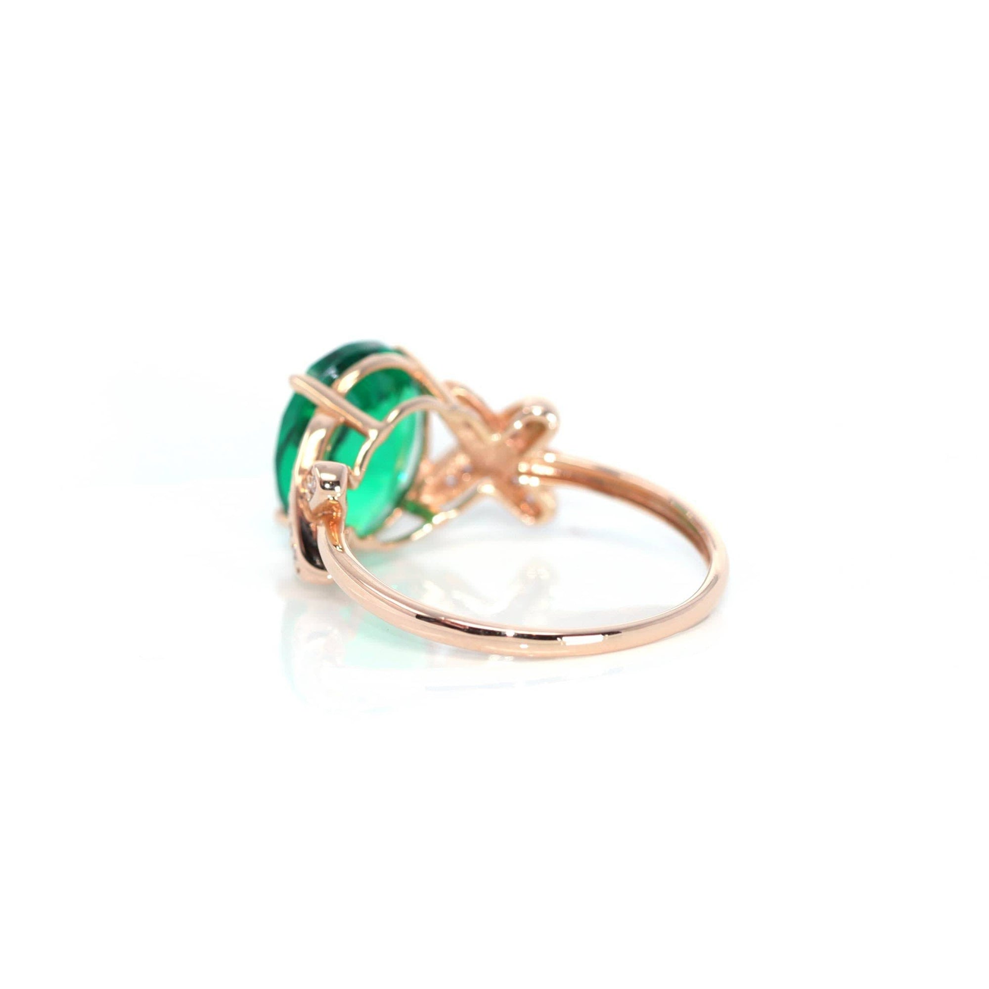 18k Rose Gold Lab-Created Emerald Ring With CZ