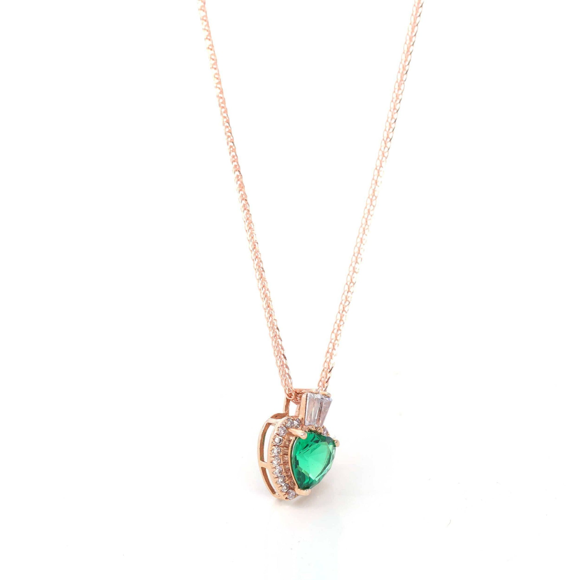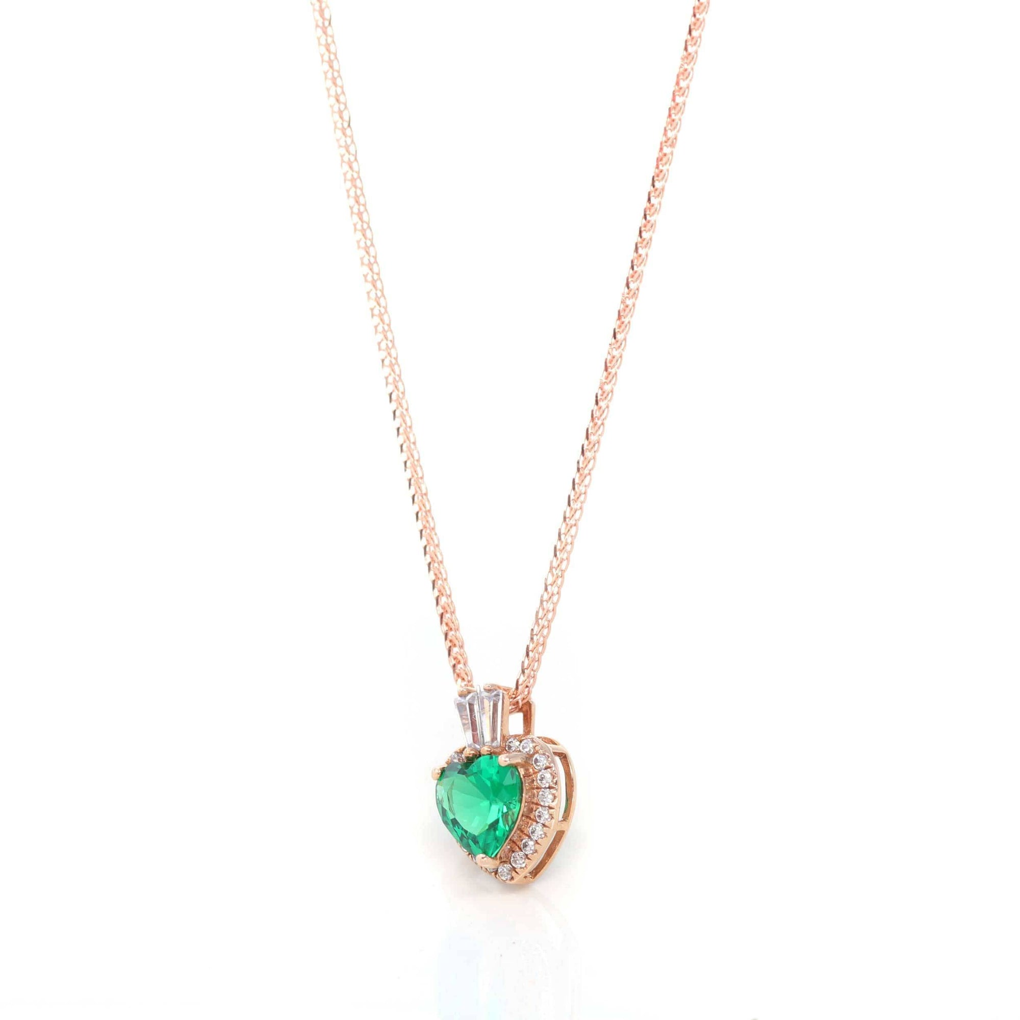 18k Rose Gold Lab. Created Emerald & CZ Pendant Necklace