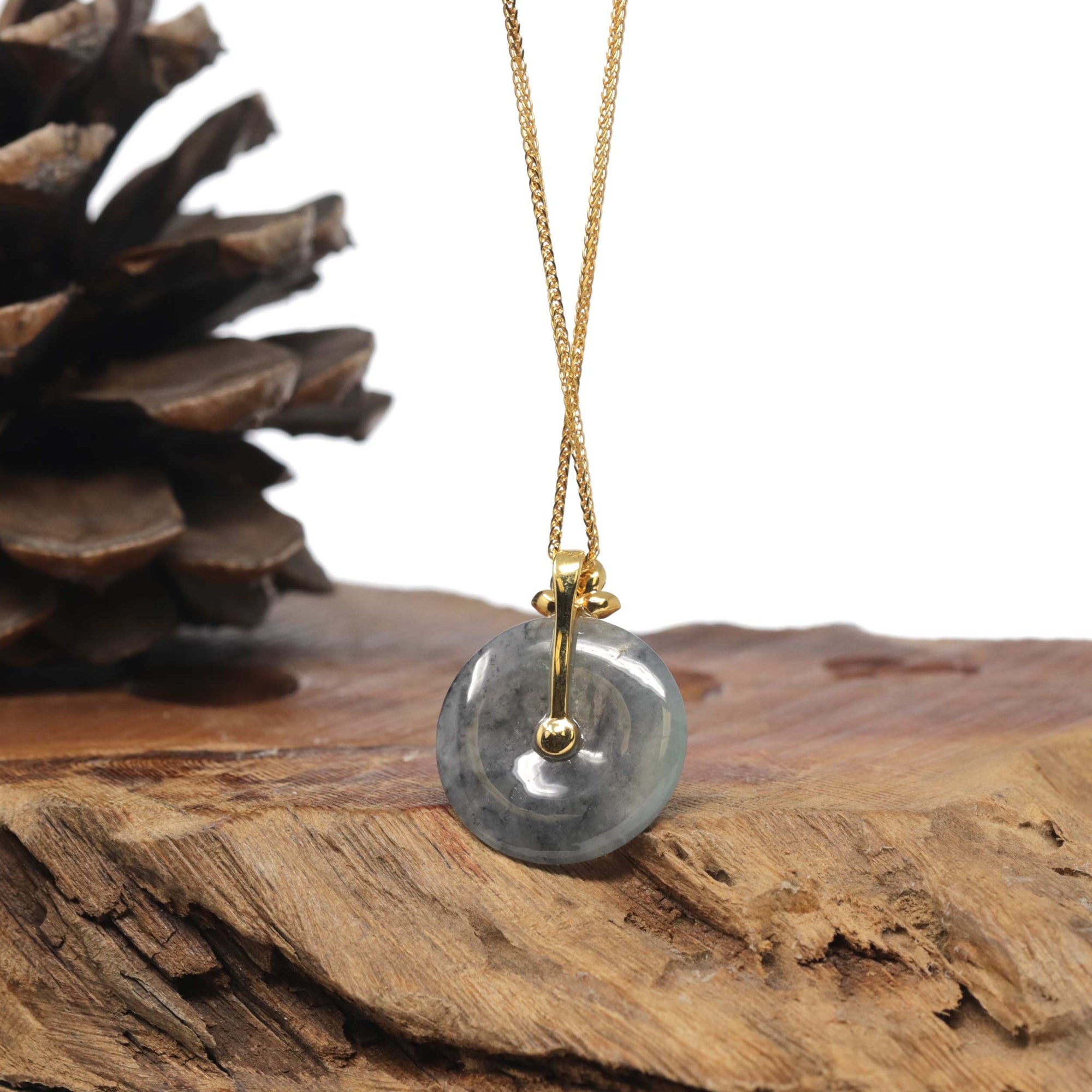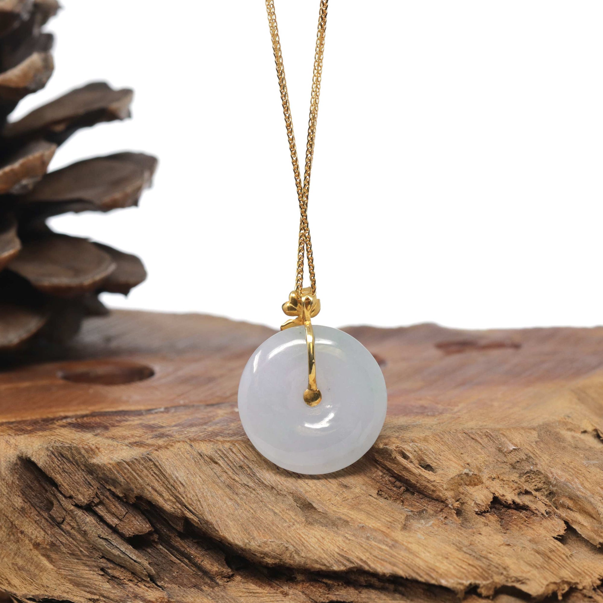 Baikalla Lavender Ping An Kou (Good Luck Button) Jadeite Jade Pendant W/ 18K Yellow Gold "RuYi" Bail