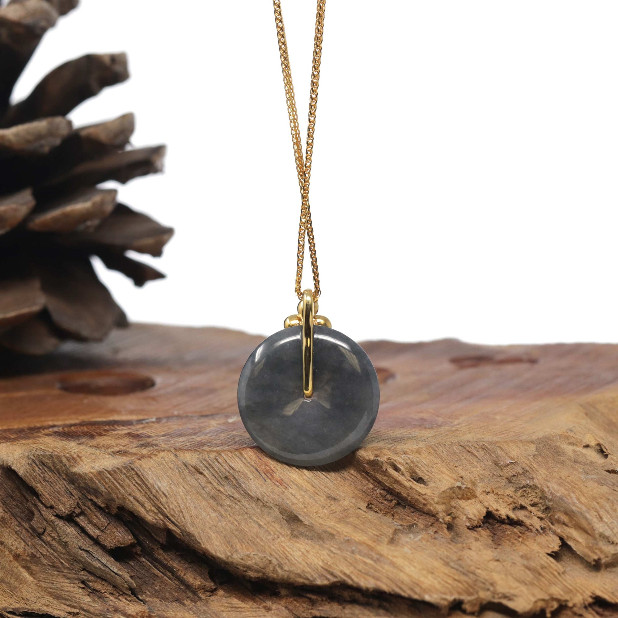 Baikalla 18K Yellow Gold "Ping An Kou" (Good Luck Button) Natural Icy Black Wuji Jadeite Jade Pendant W/ Natural Diamonds