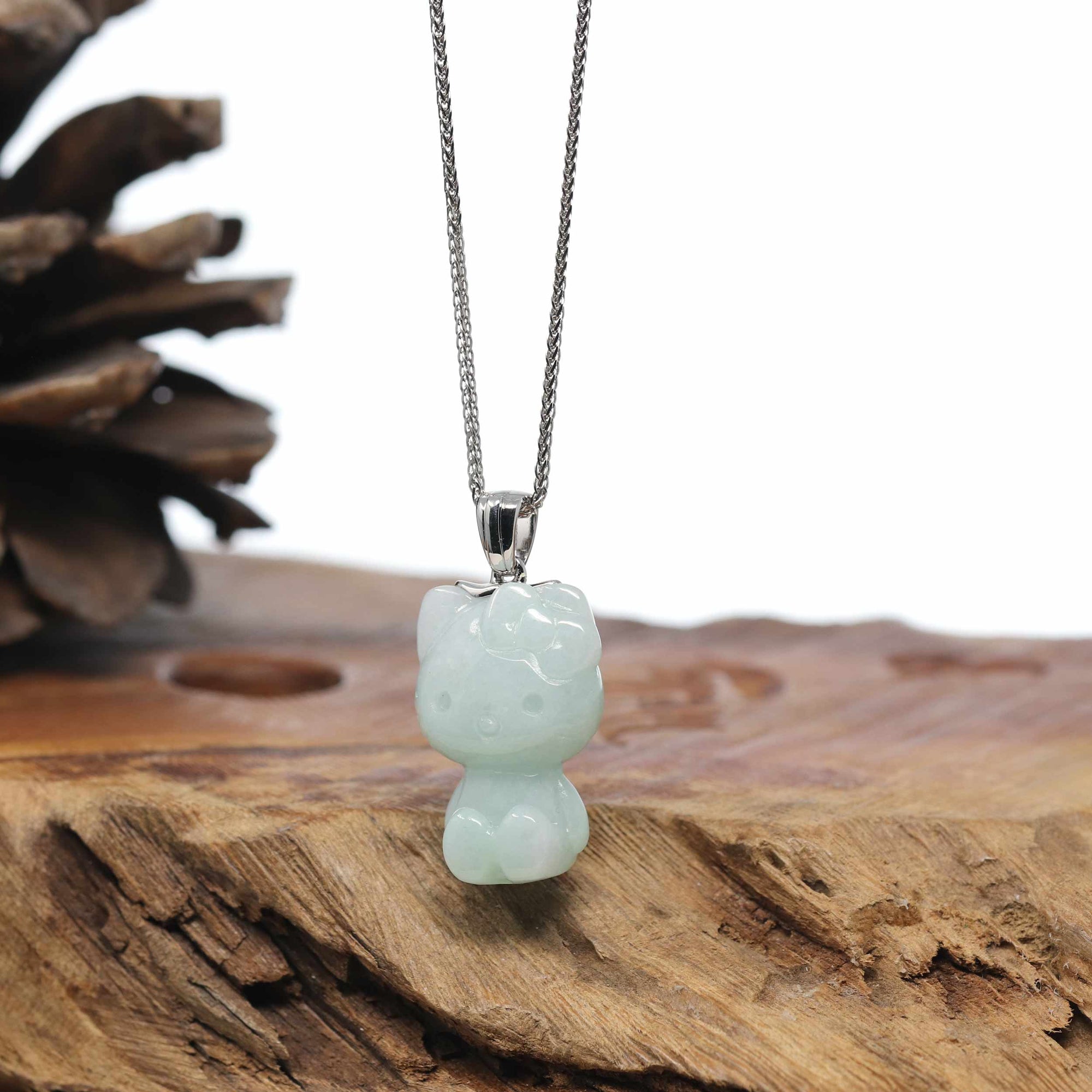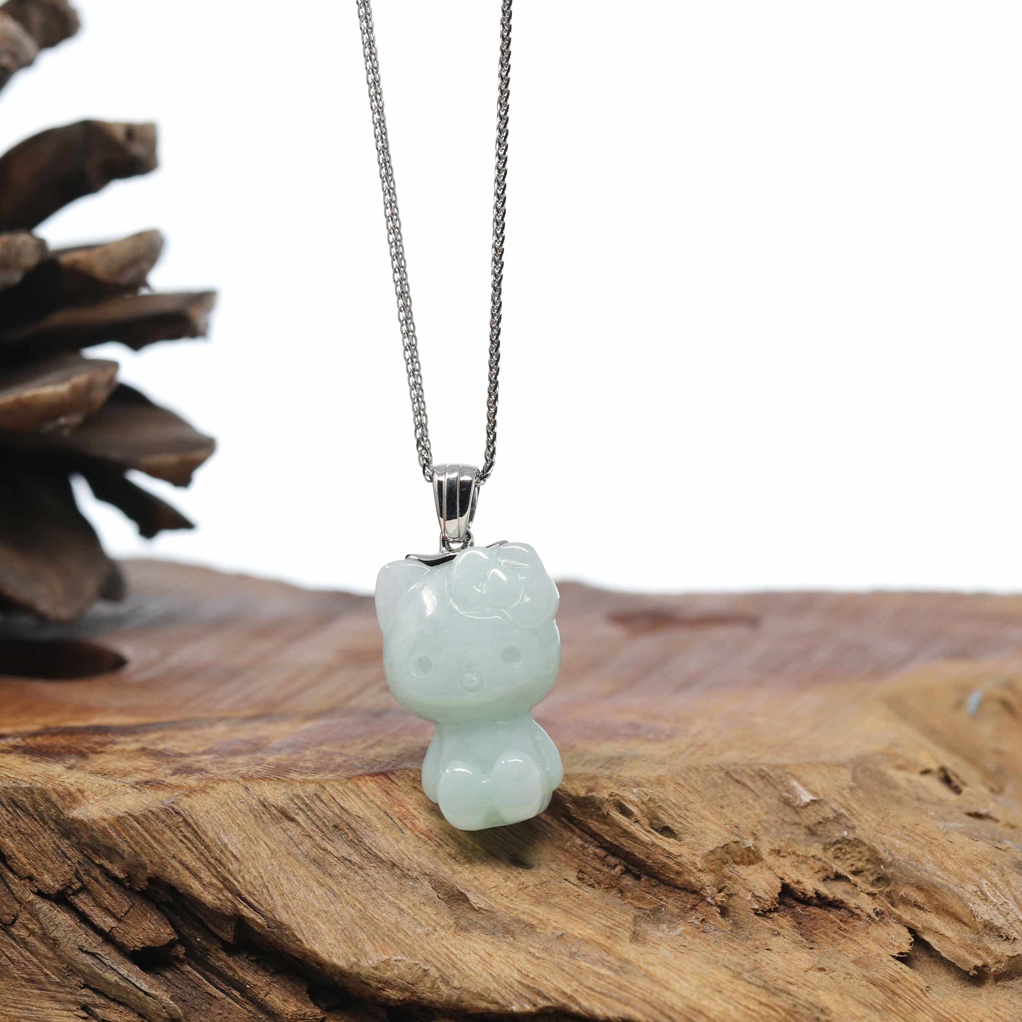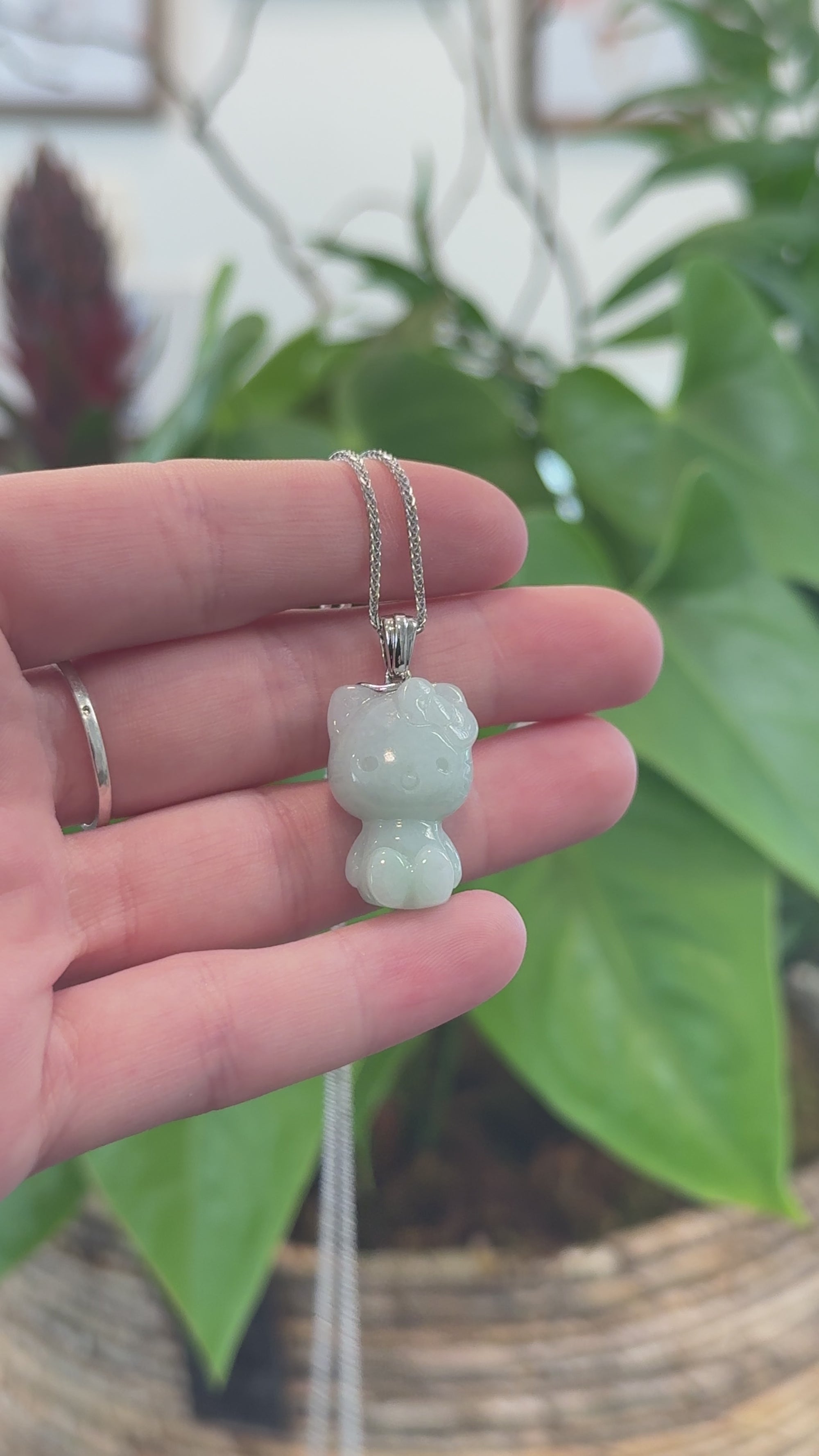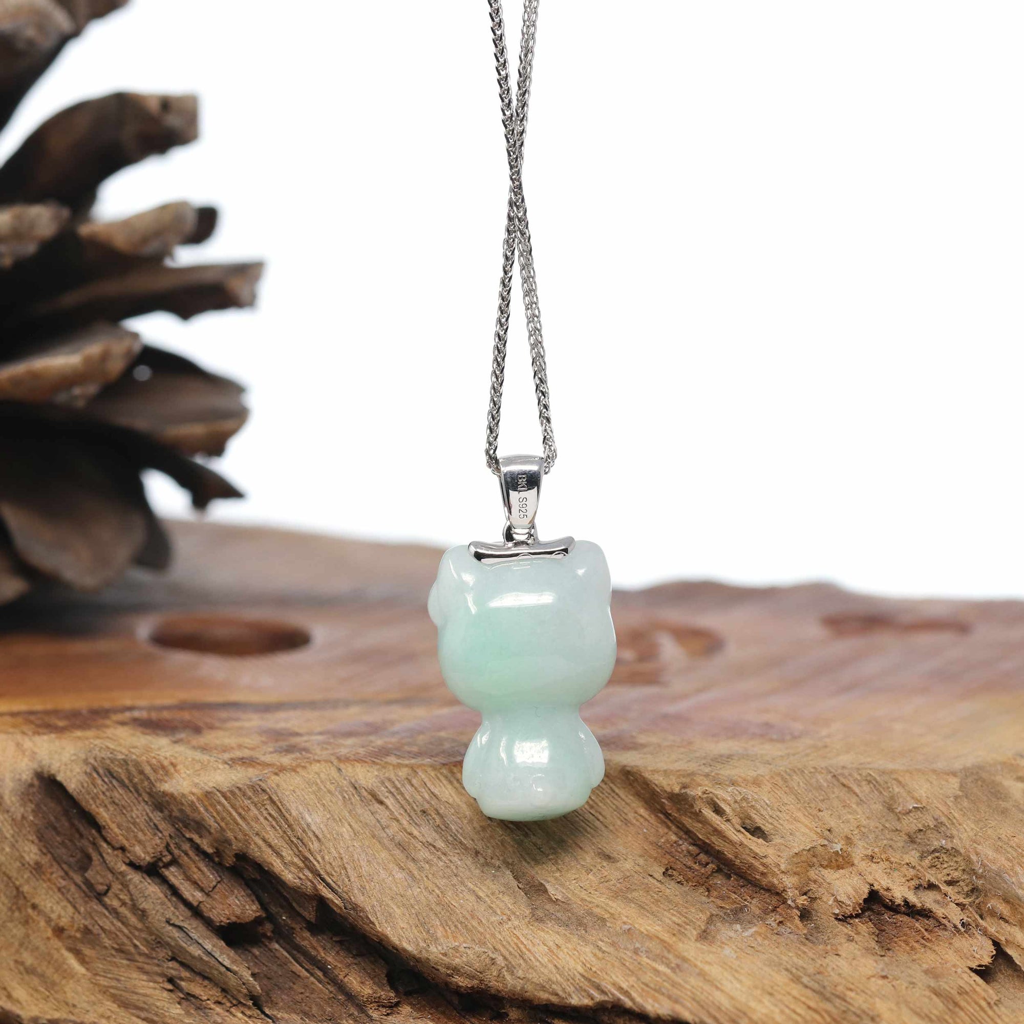Baikalla "Lucky Kitten" White Jadeite Jade Pendant Necklace With Silver Bail