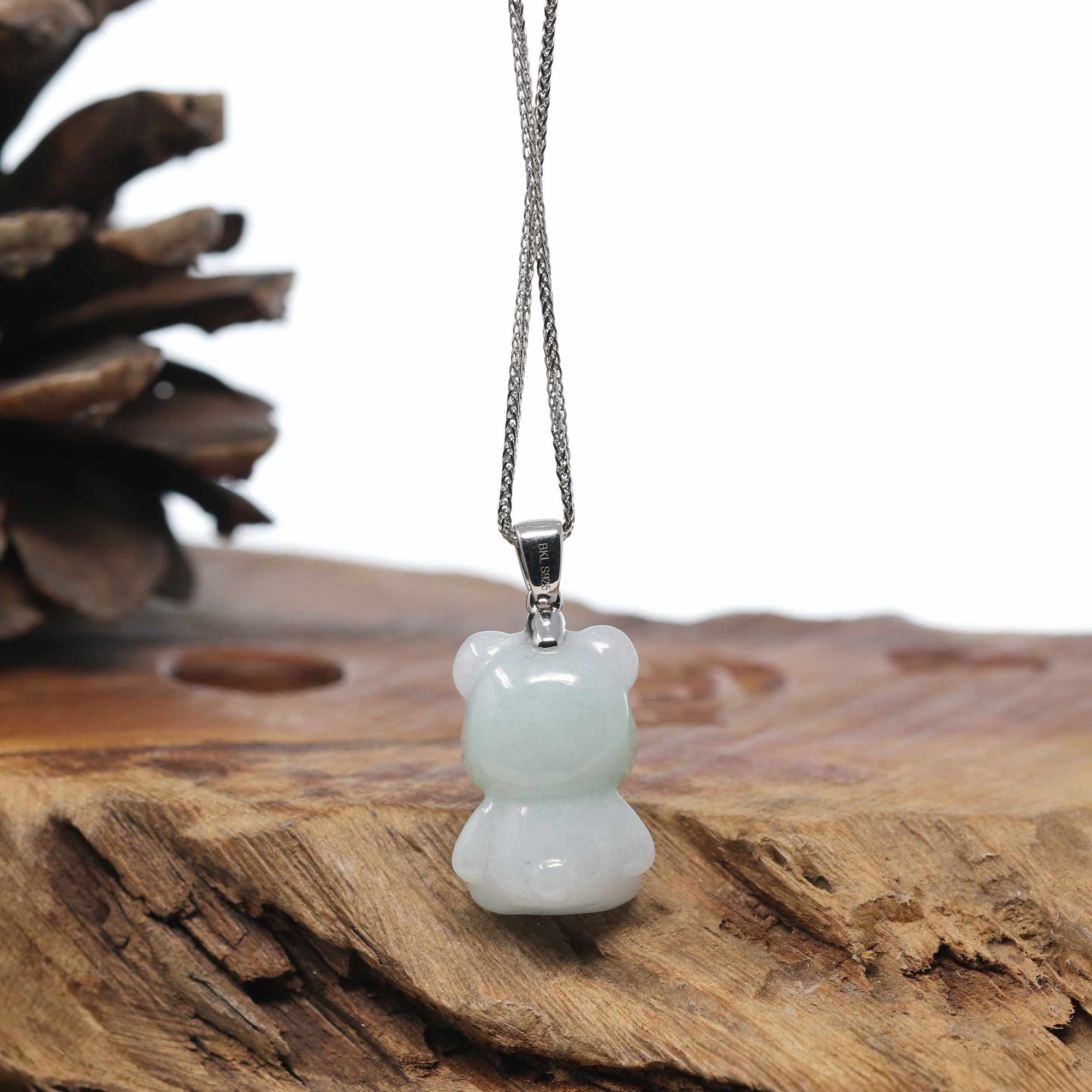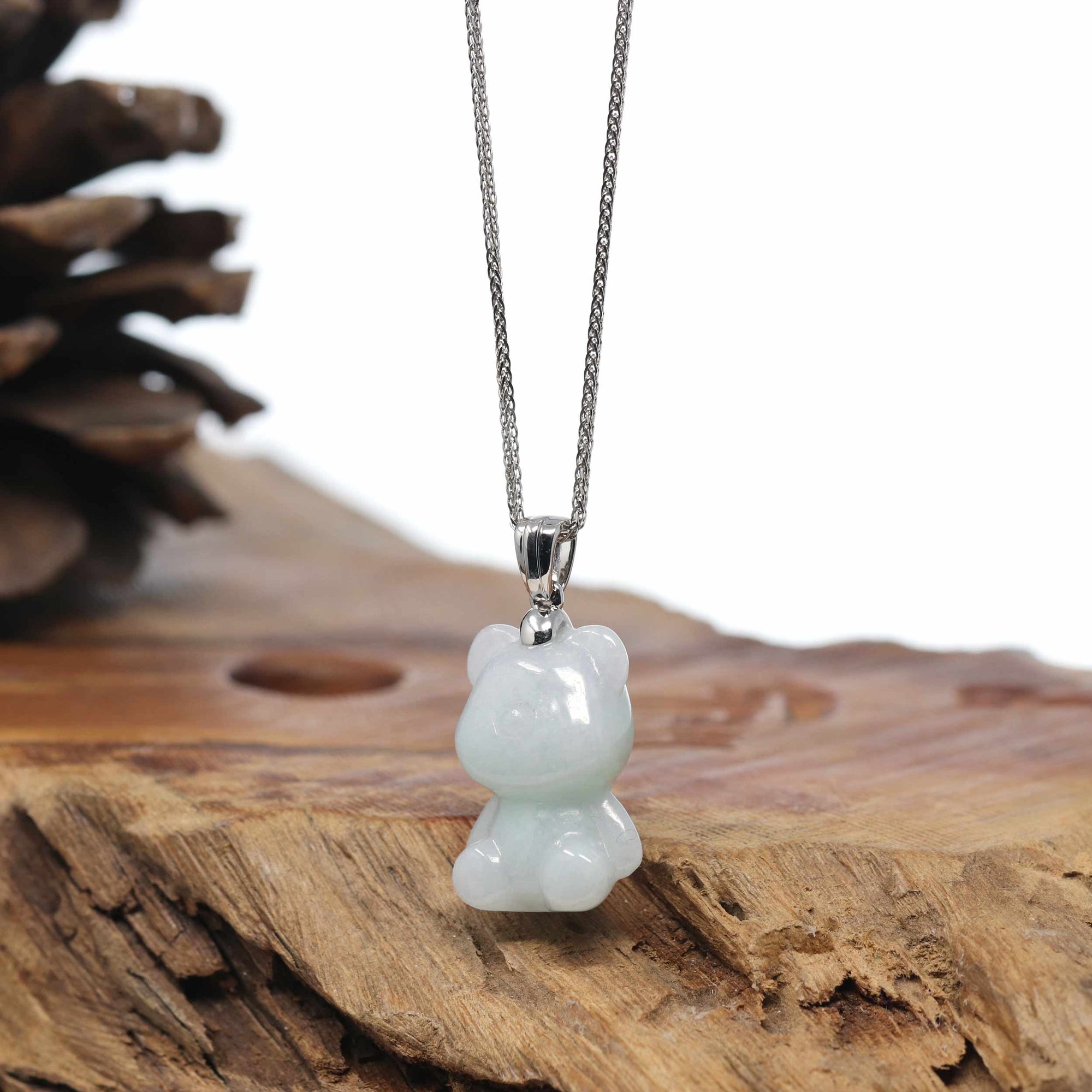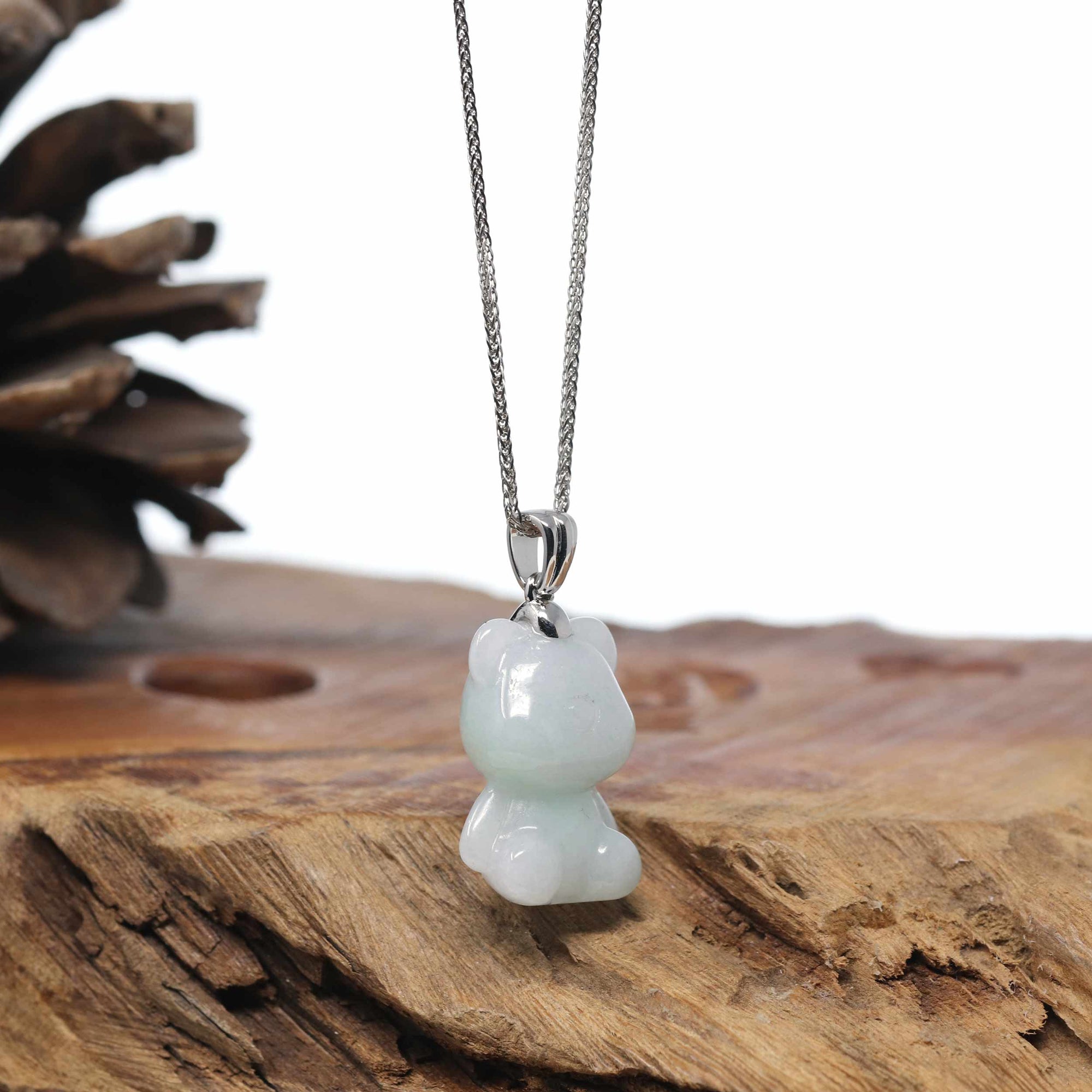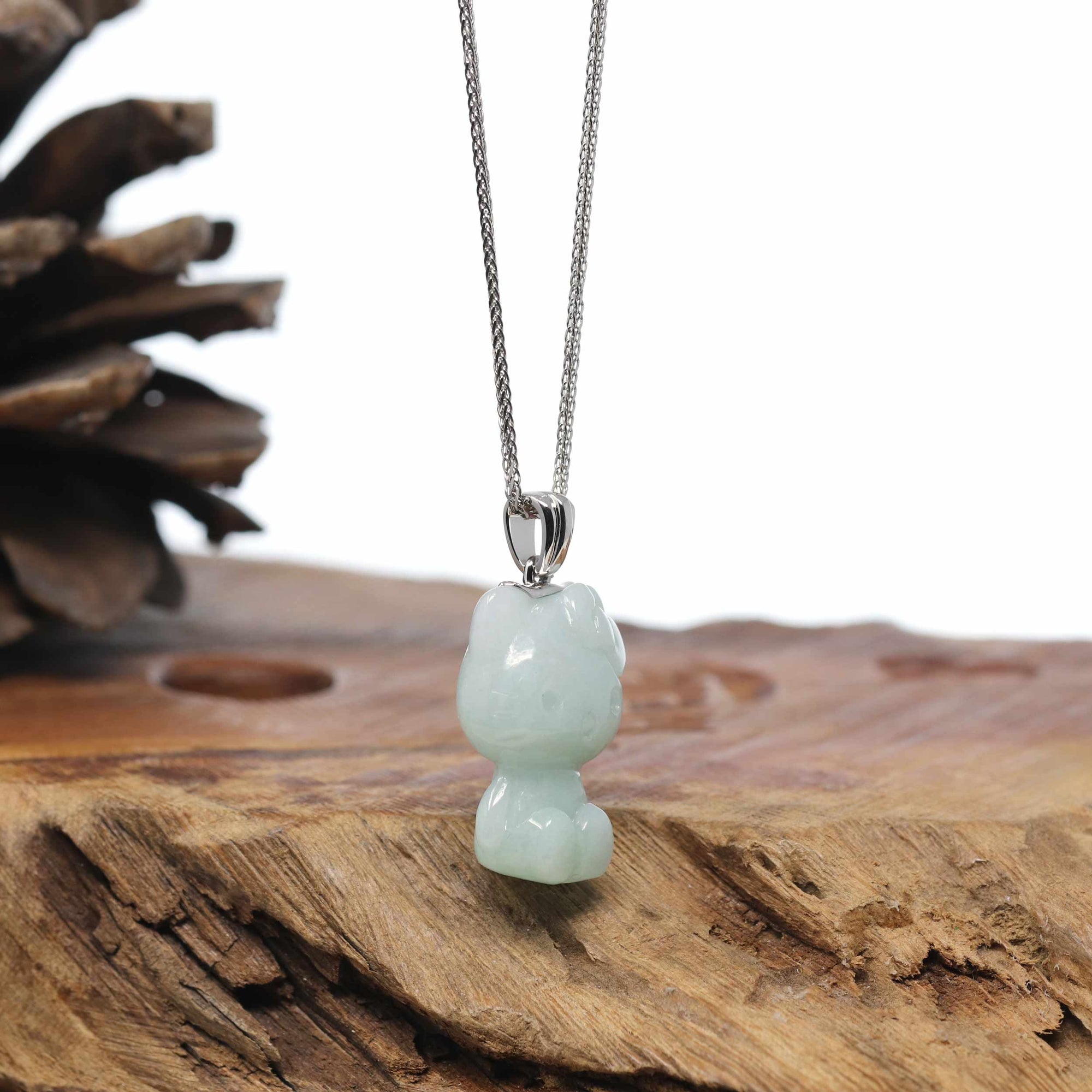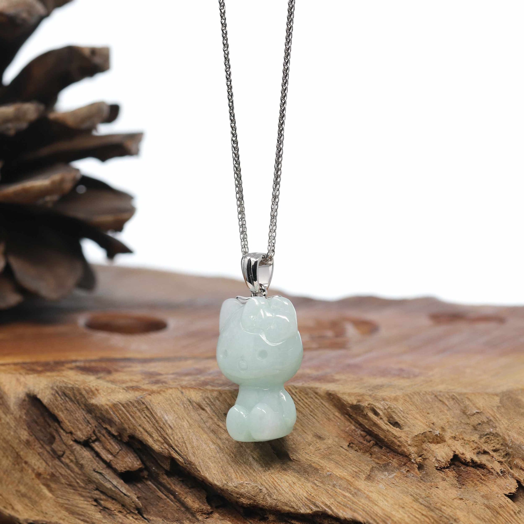 Baikalla "Lucky Kitten" White Jadeite Jade Pendant Necklace With Silver Bail