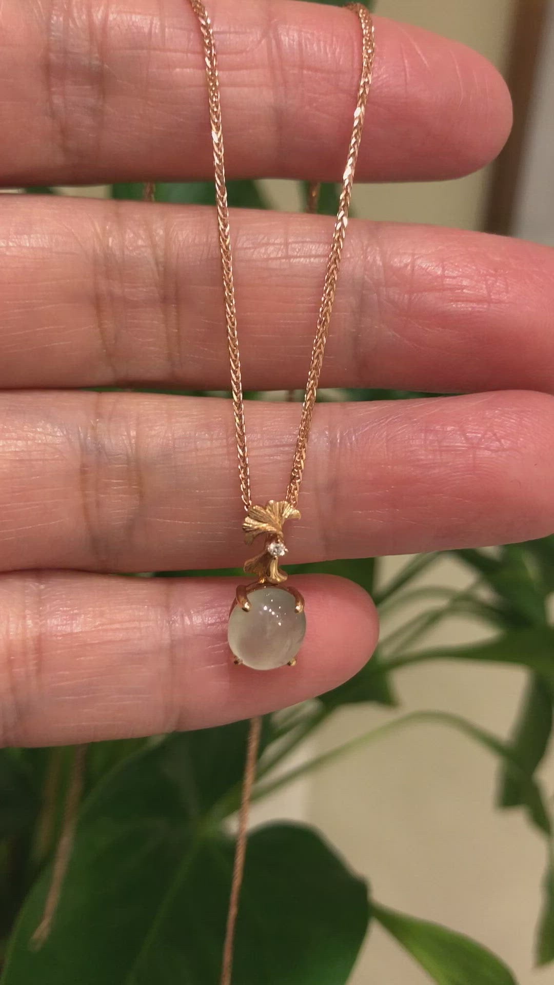 Baikalla Jewelry 18k Gold Jadeite Necklace 18K Rose Gold "Tear-Drop" Ice Jadeite Jade Cabochon Necklace with Diamonds
