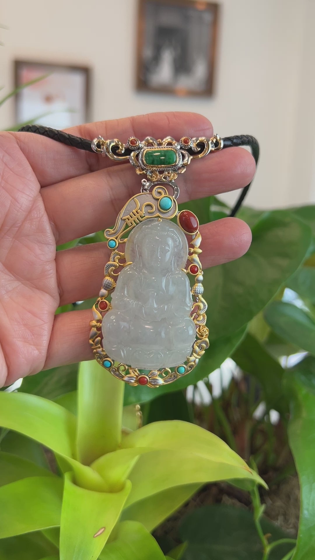 "Goddess of Compassion" Genuine Burmese Jadeite Jade Guanyin Necklace With Good Luck Design