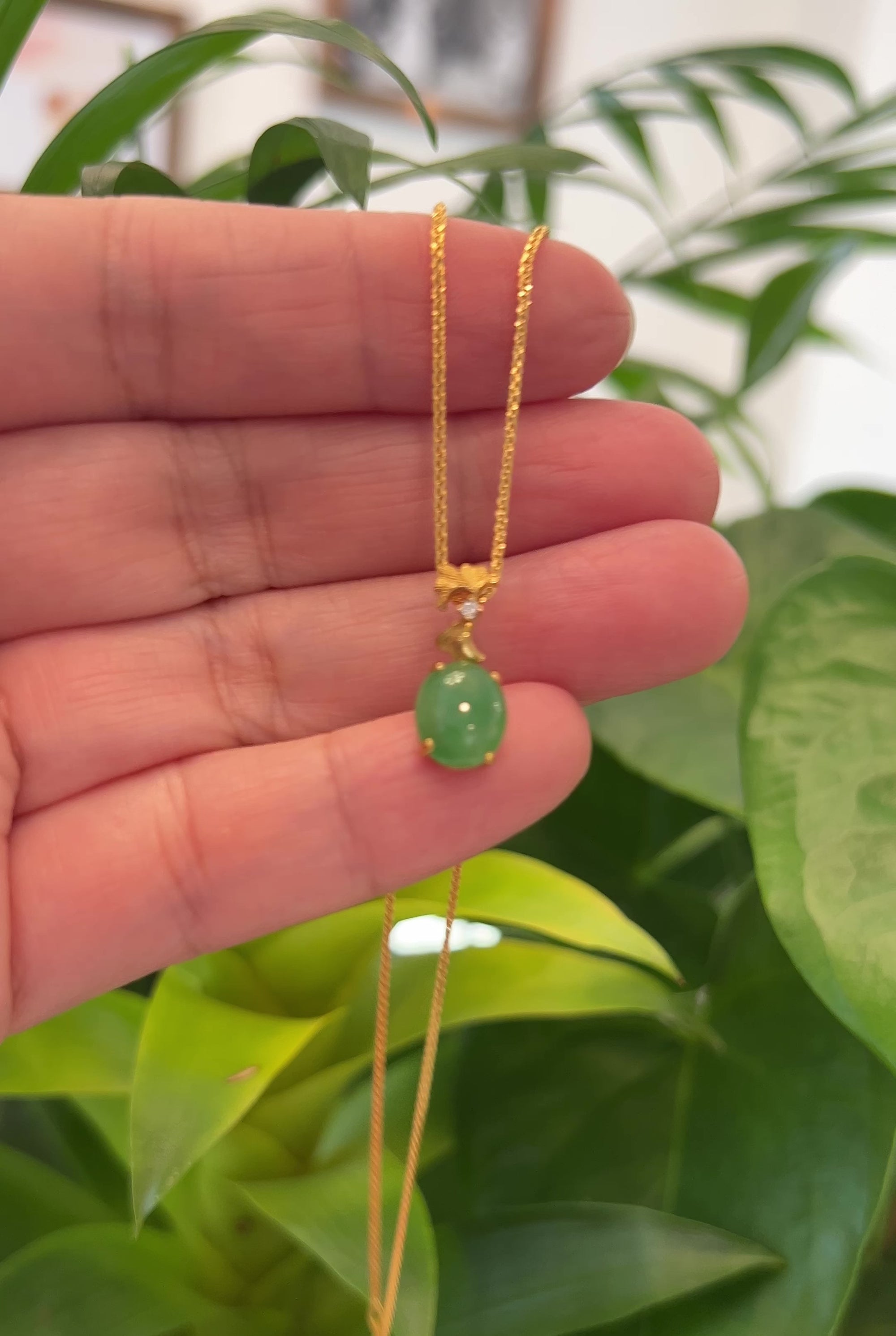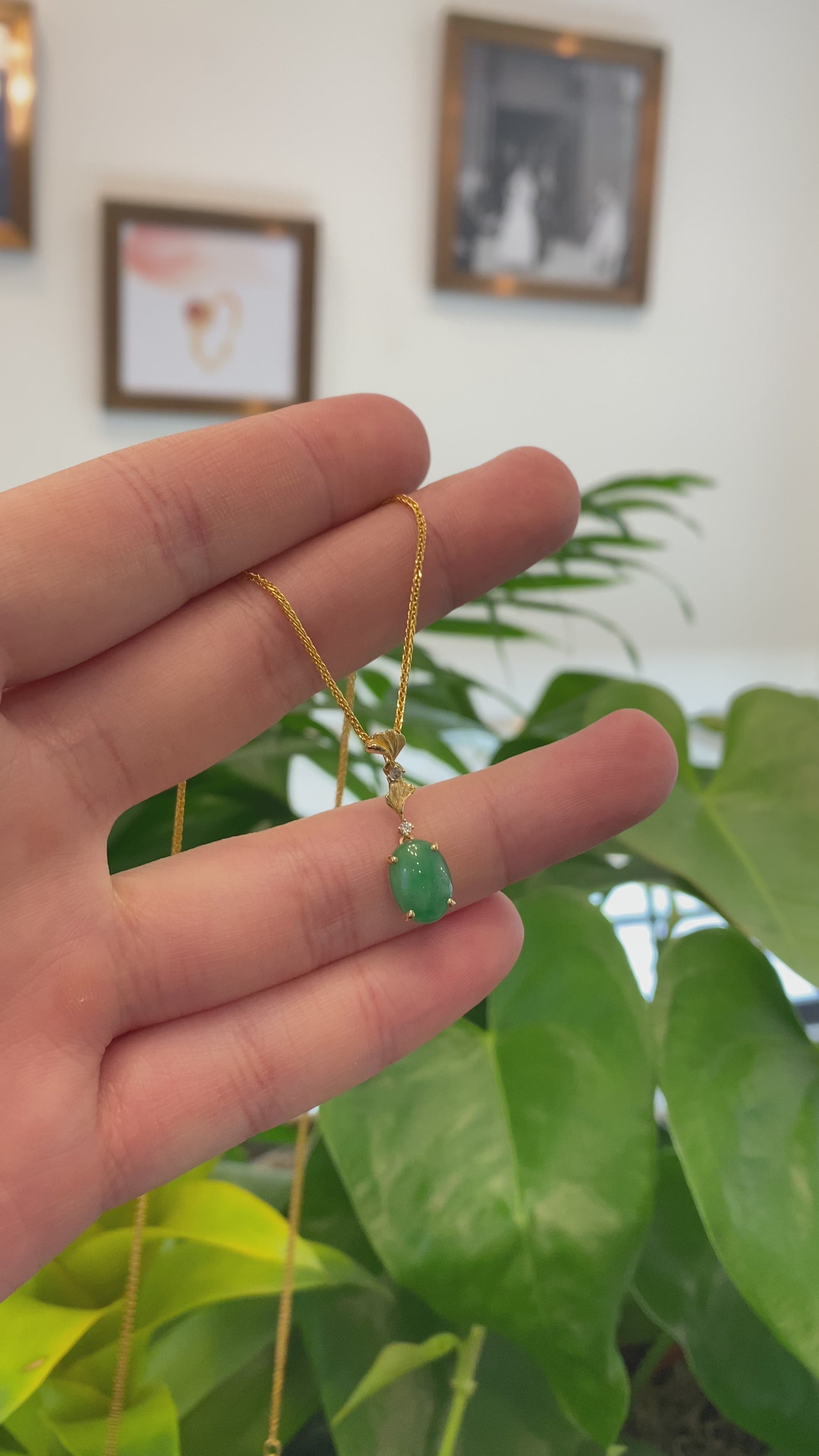 Experience opulence with our Natural Imperial Jadeite Jade Necklace featuring setting gold and diamonds. Each jadeite bead is a symbol of rare beauty, accentuated by the brilliance of diamonds, creating enduring elegance.