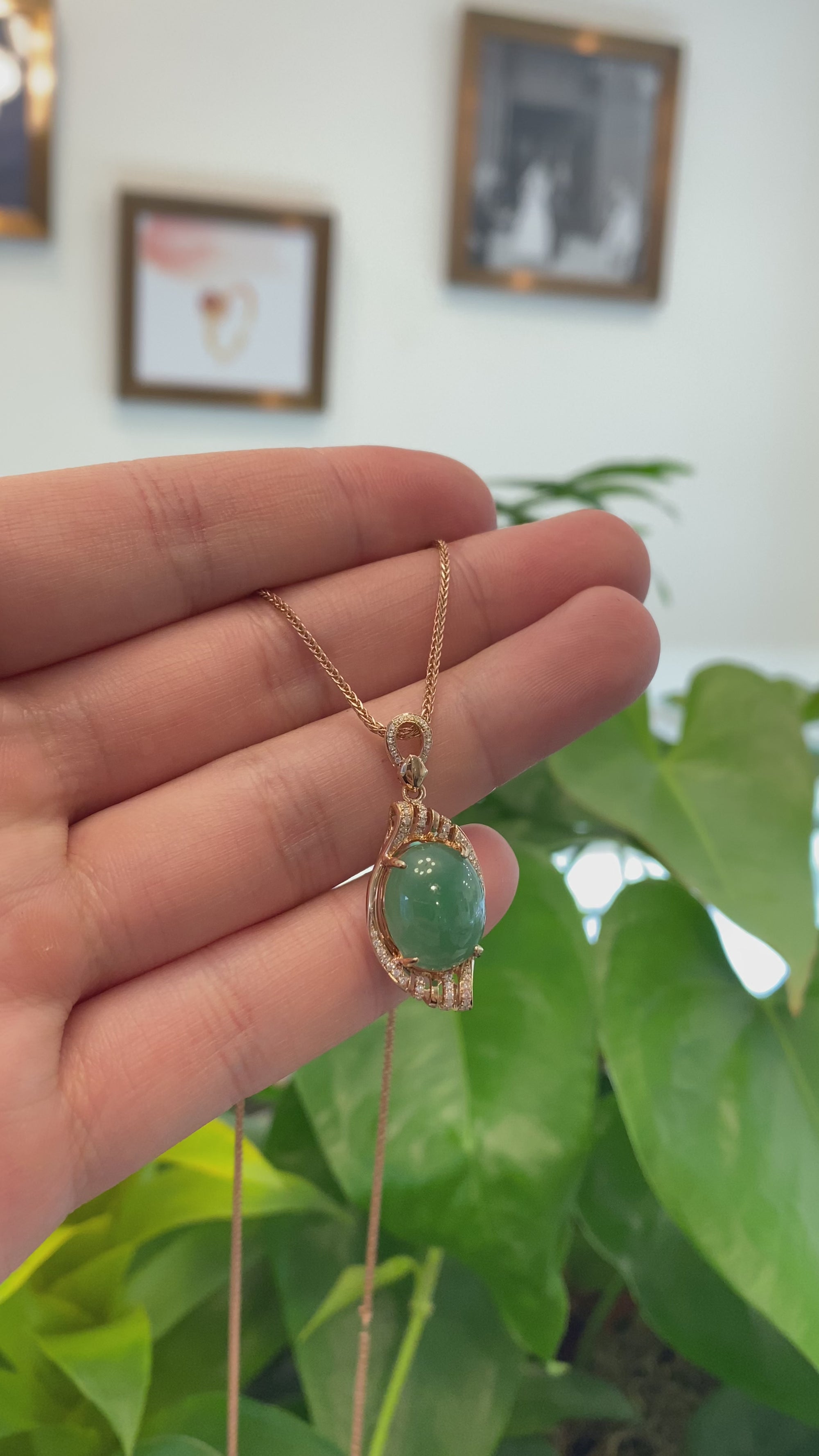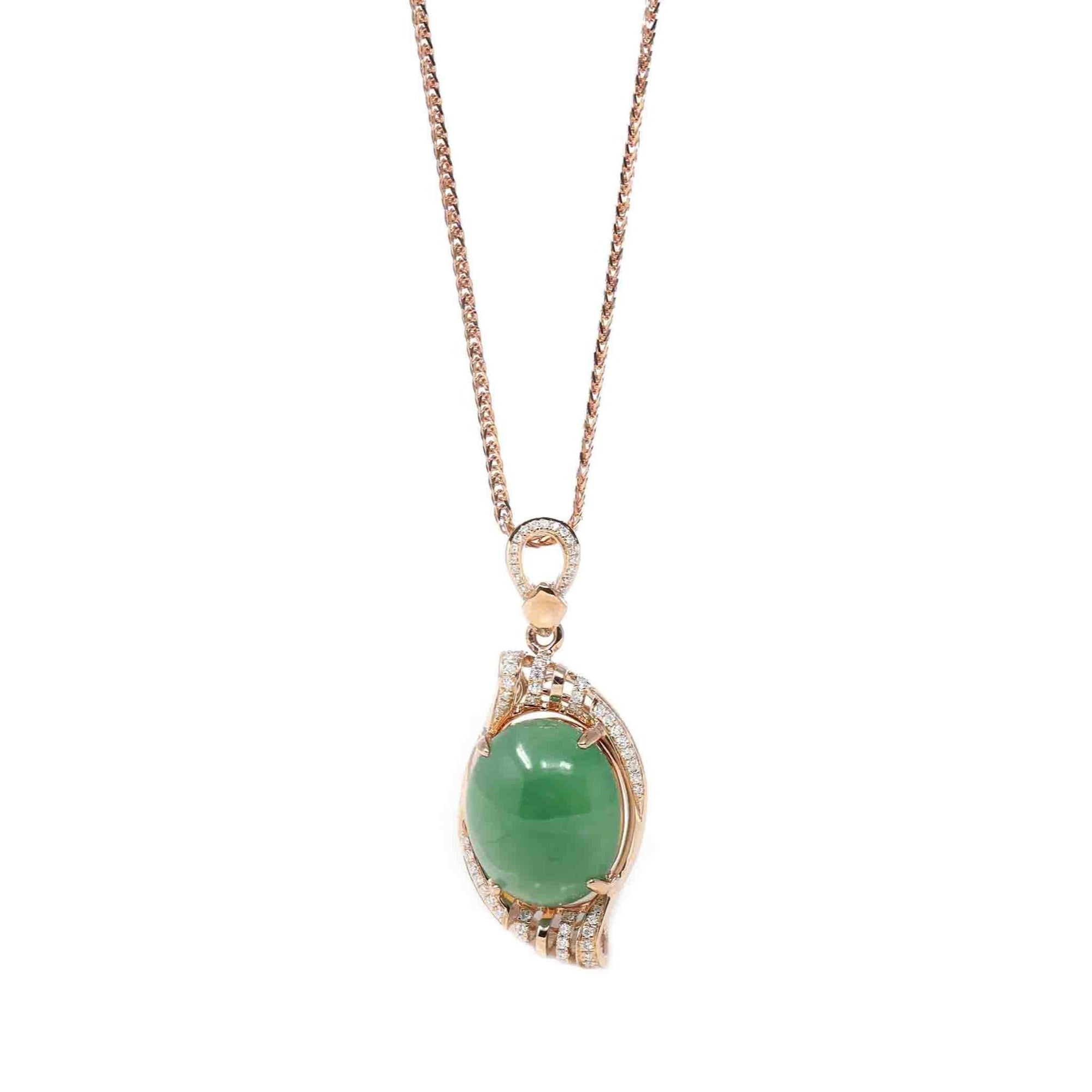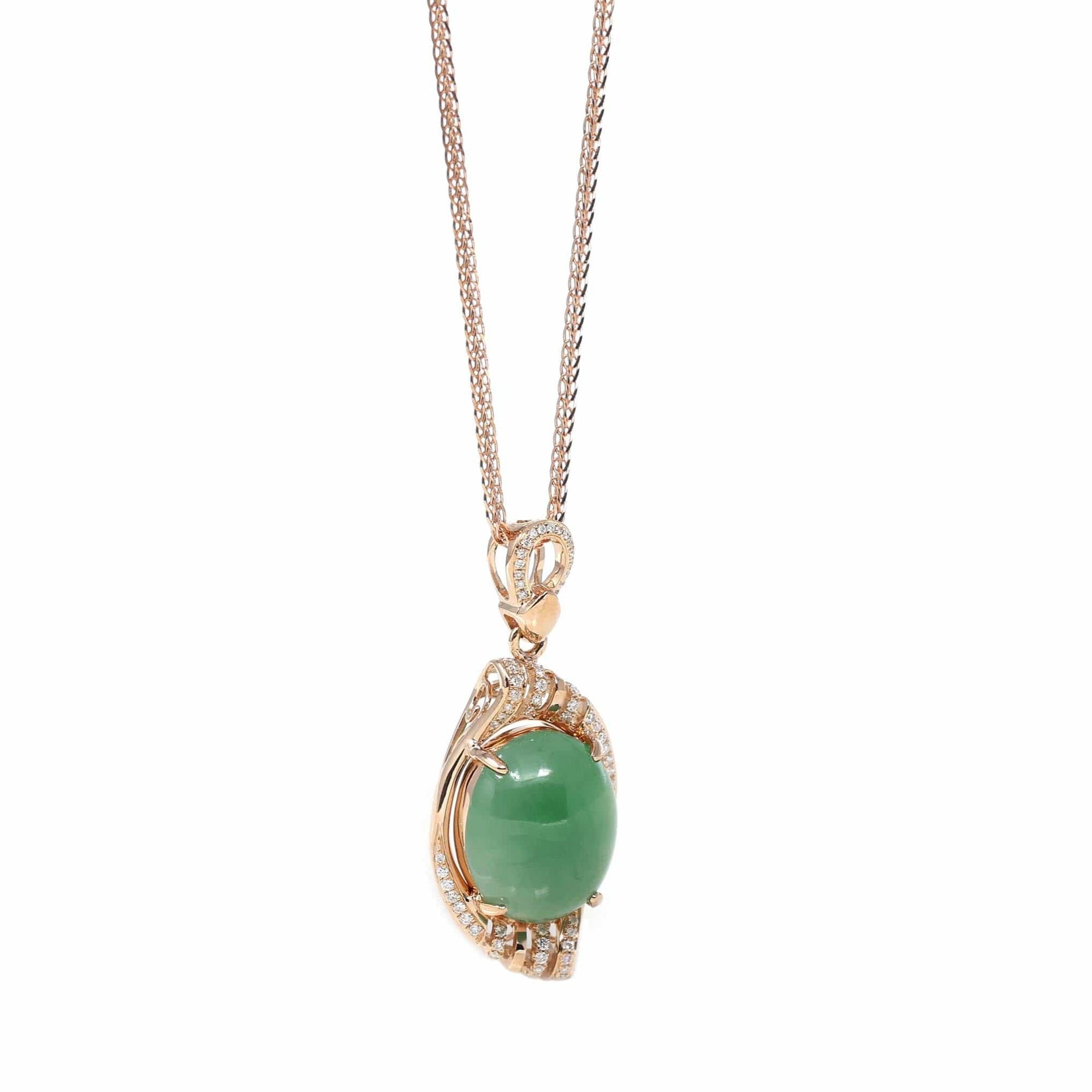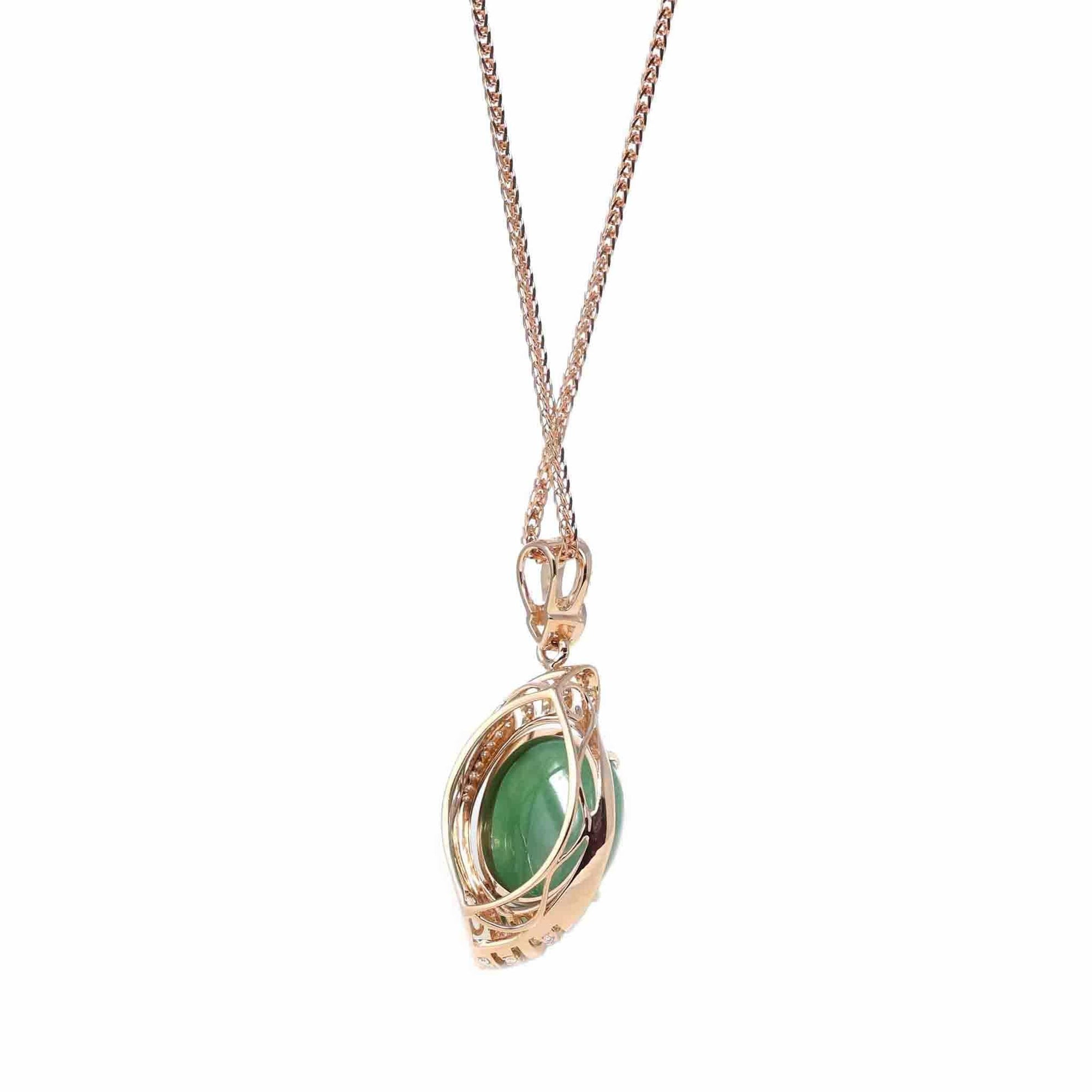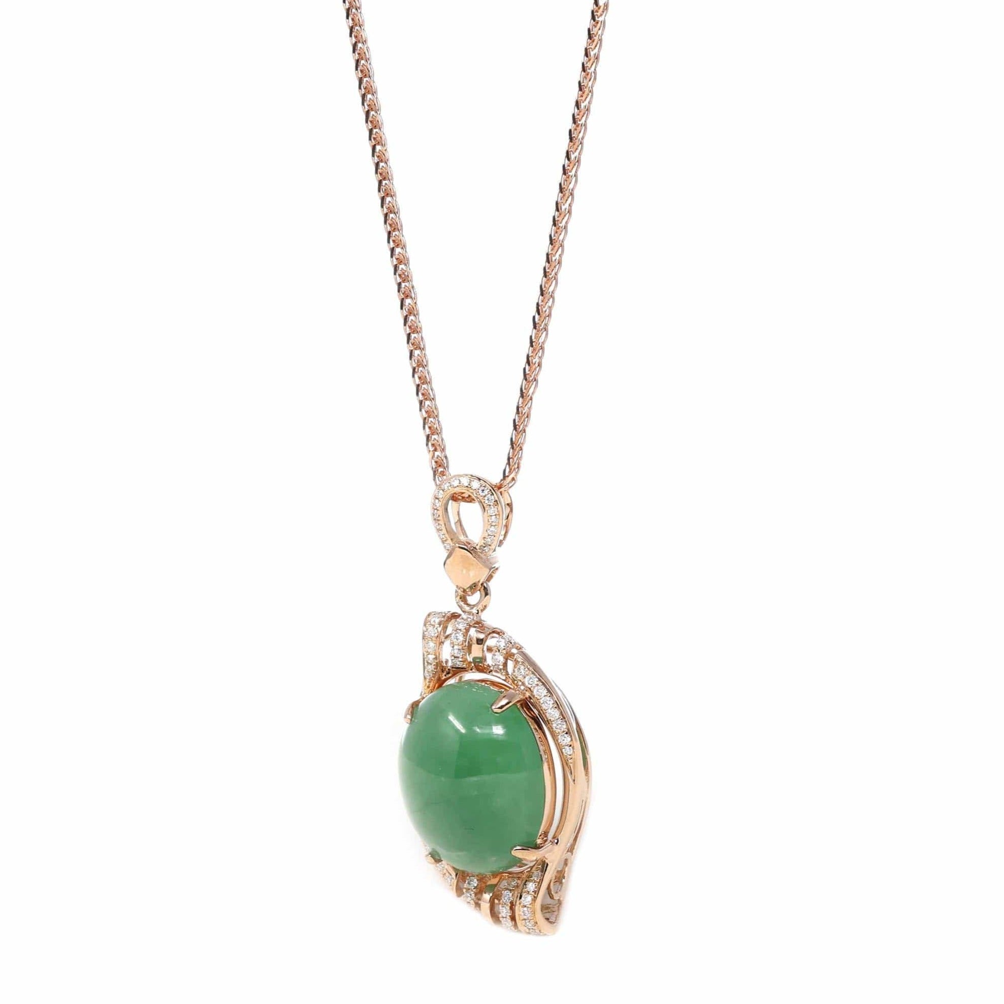 18K Rose Gold Oval Imperial Jadeite Jade Phoenix Style Necklace with Diamonds