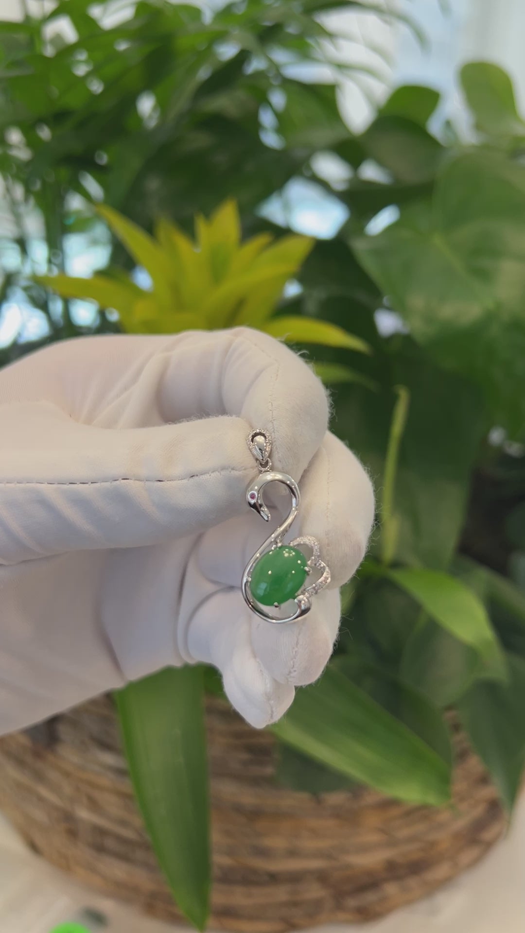 18K White Gold High-End Imperial Jadeite Jade "Ping An Wu Shi Pai" Necklace with Diamonds