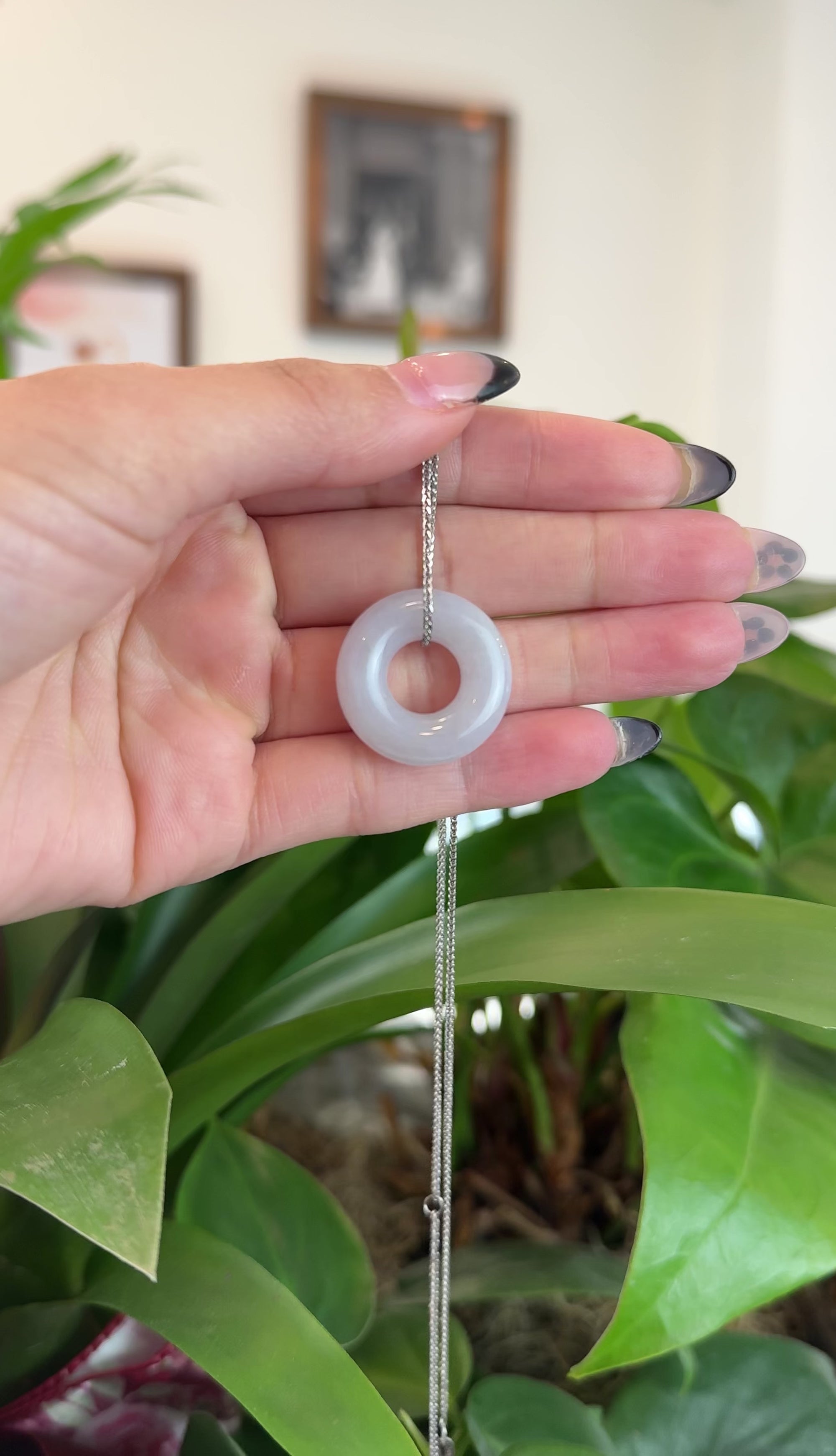 Baikalla "Good Luck Button" Necklace Lavender Green Jadeite Jade Lucky Ping An Kou Pendant
