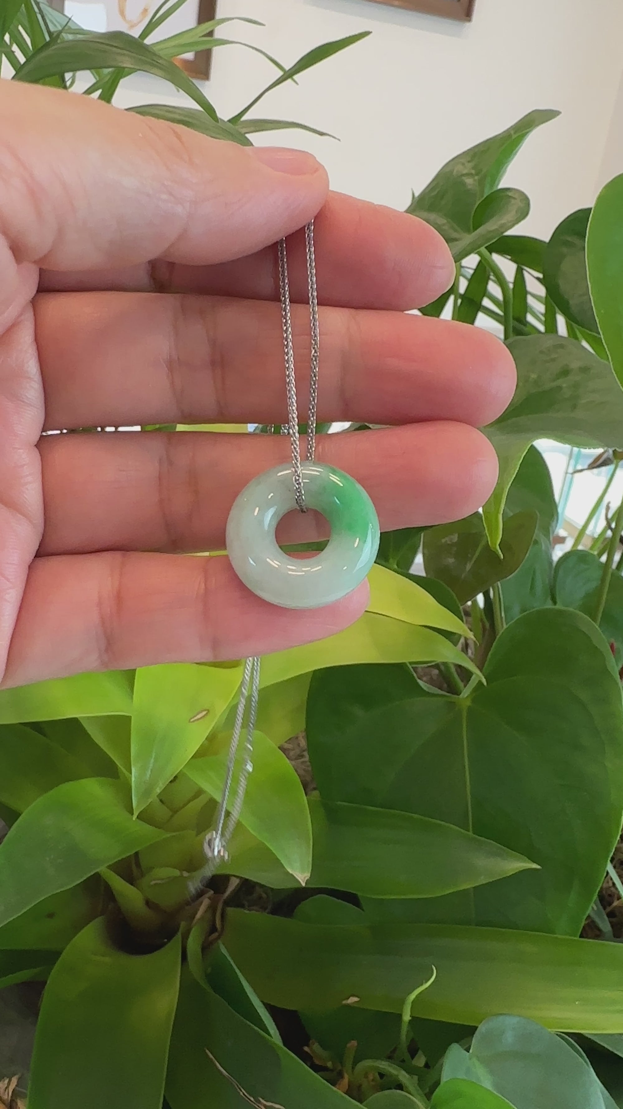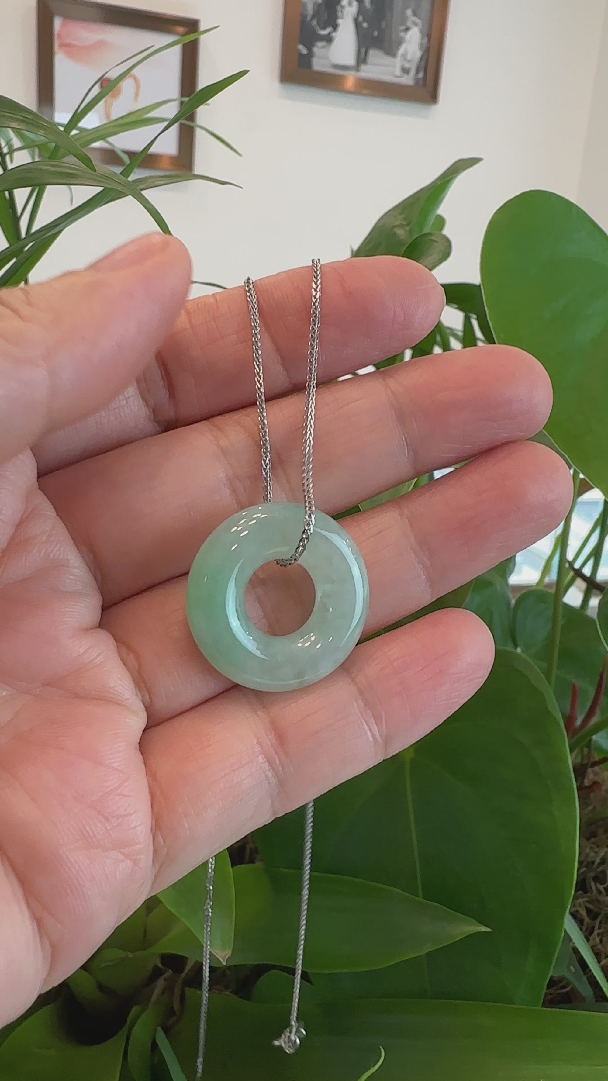 Baikalla "Good Luck Button" Necklace Ice Green Jadeite Jade Lucky Ping An Kou Pendant