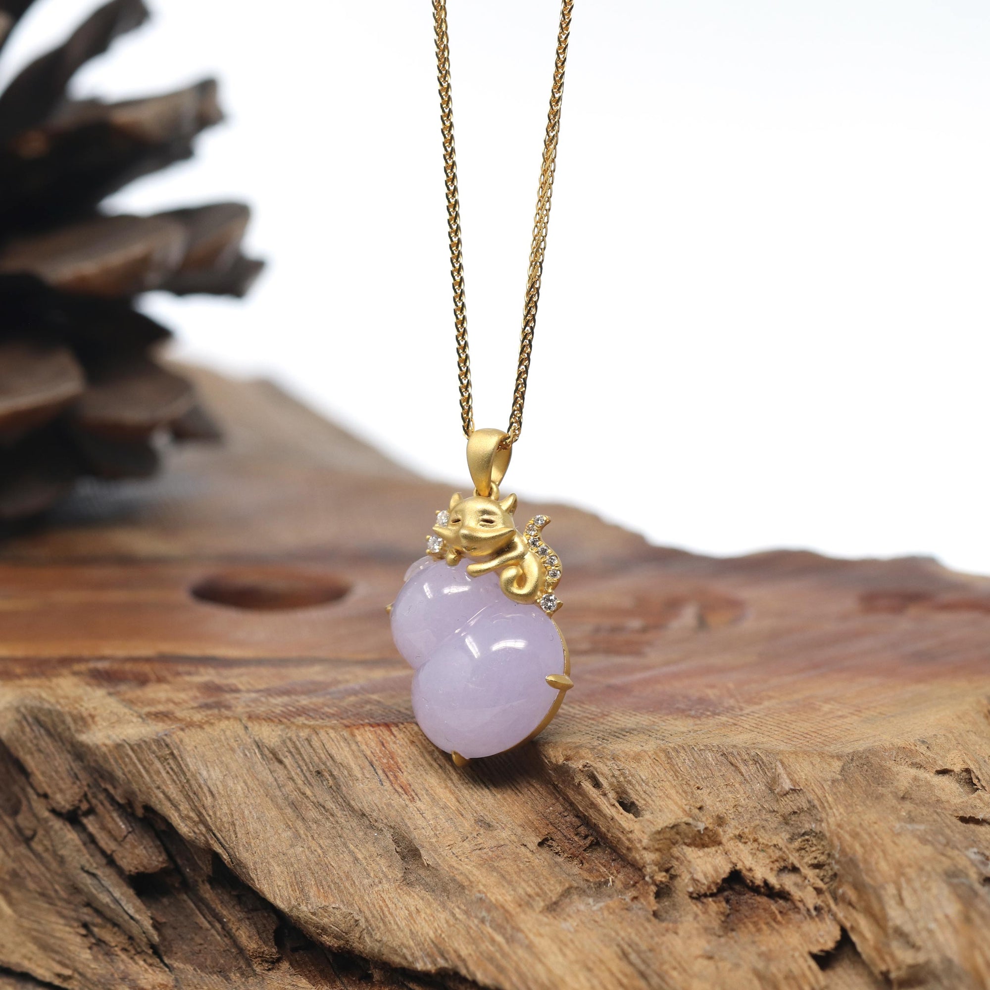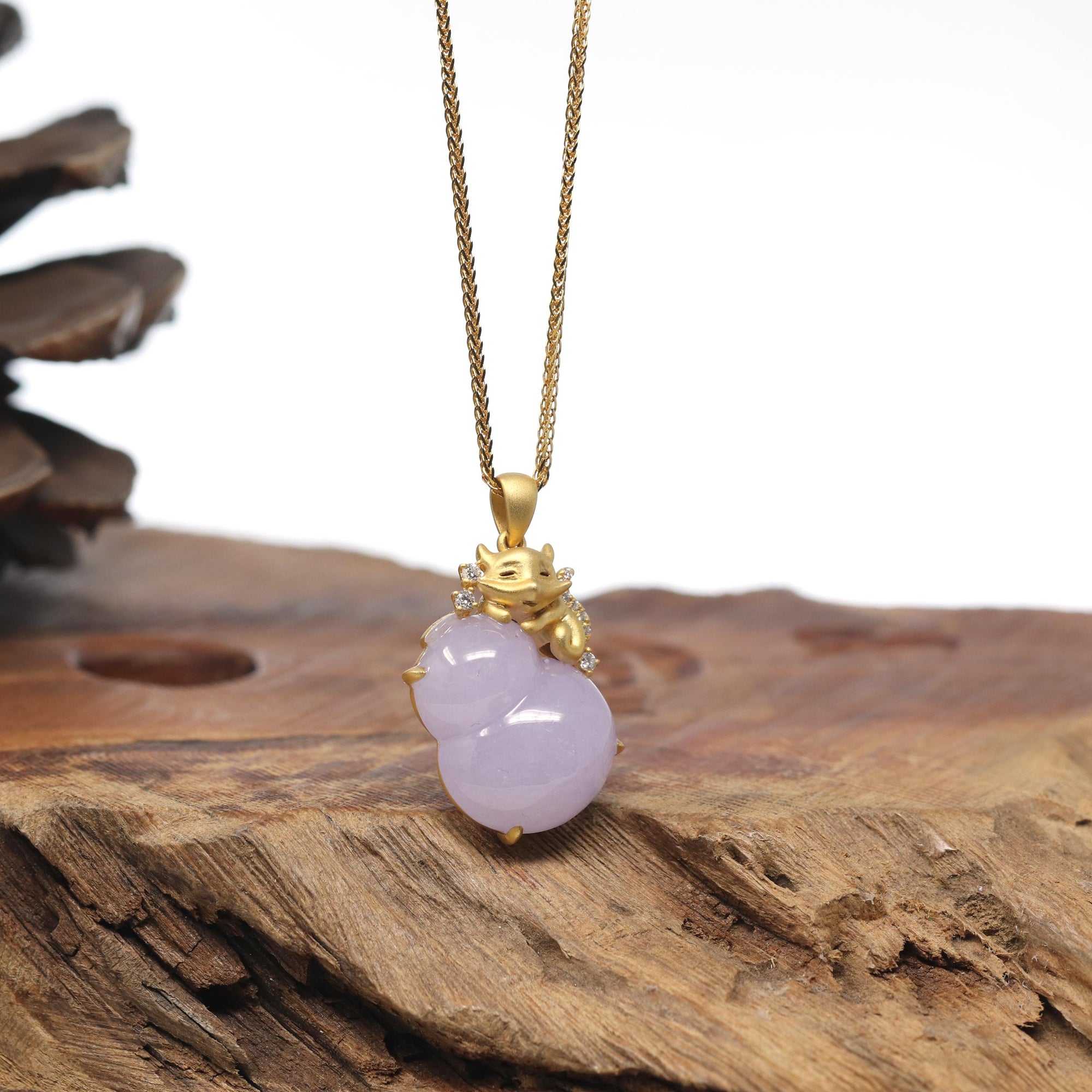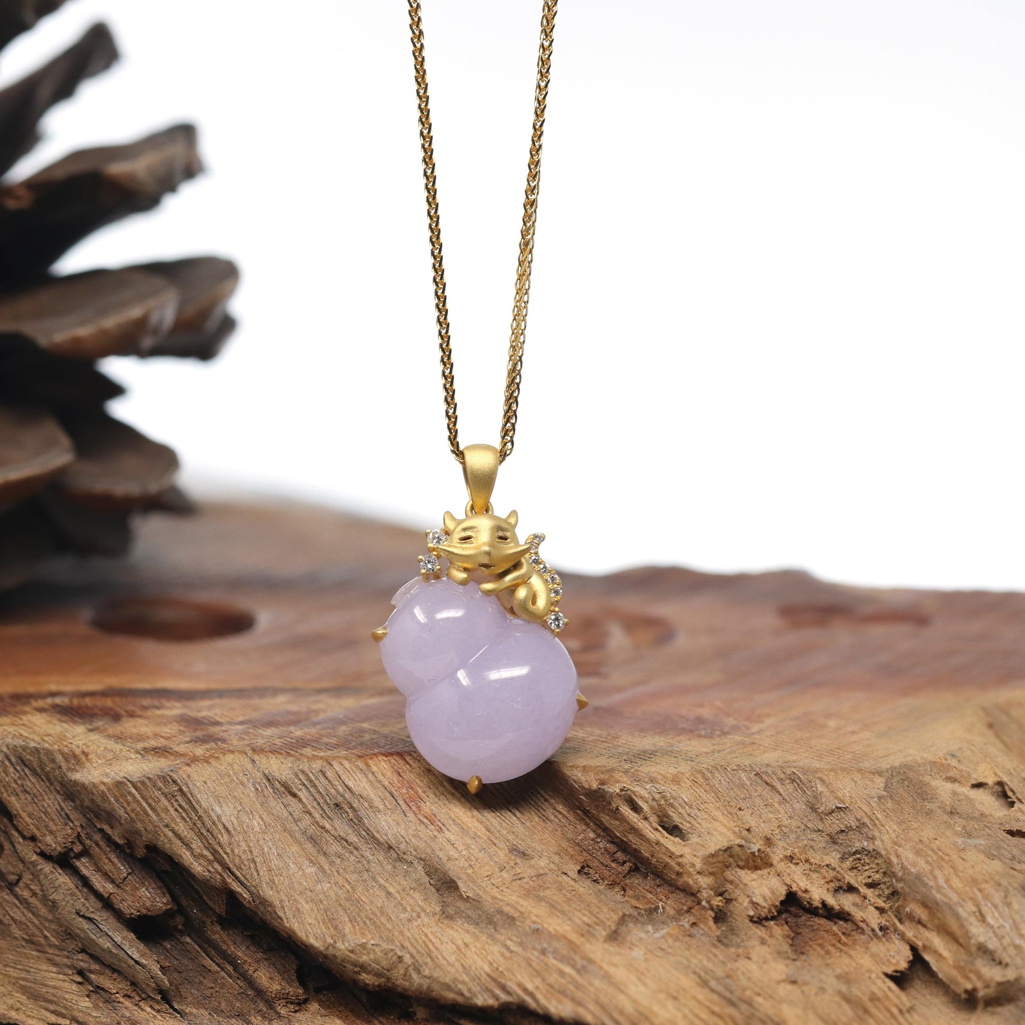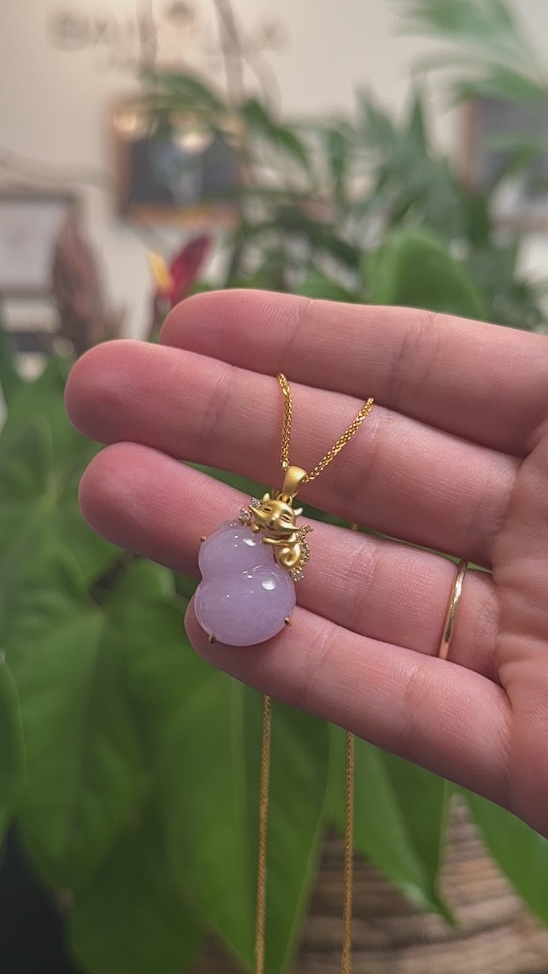 Baikalla "Hulu" 18K Yellow Gold Lavender Jadeite Jade Pendant W/ Diamonds & Fox Bail
