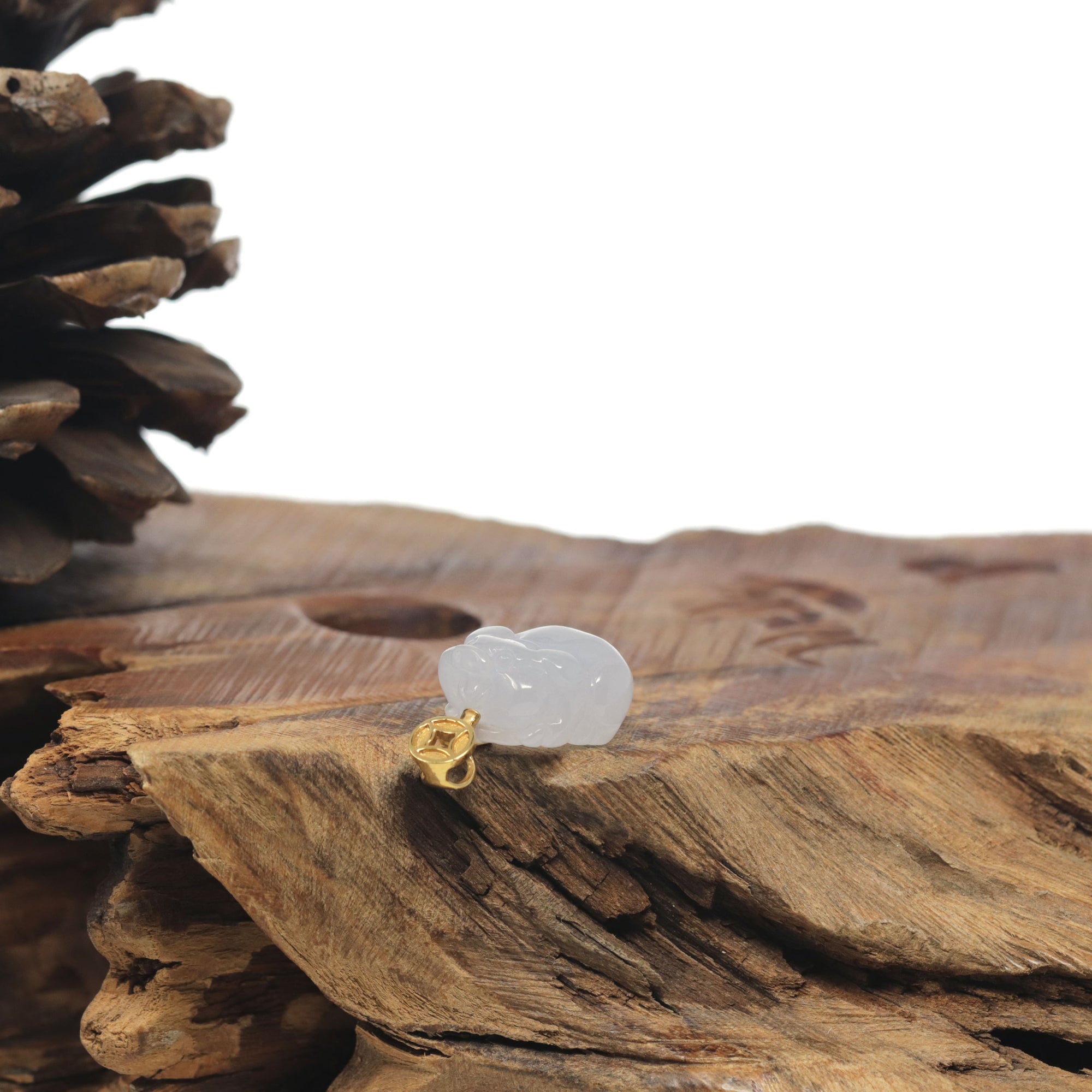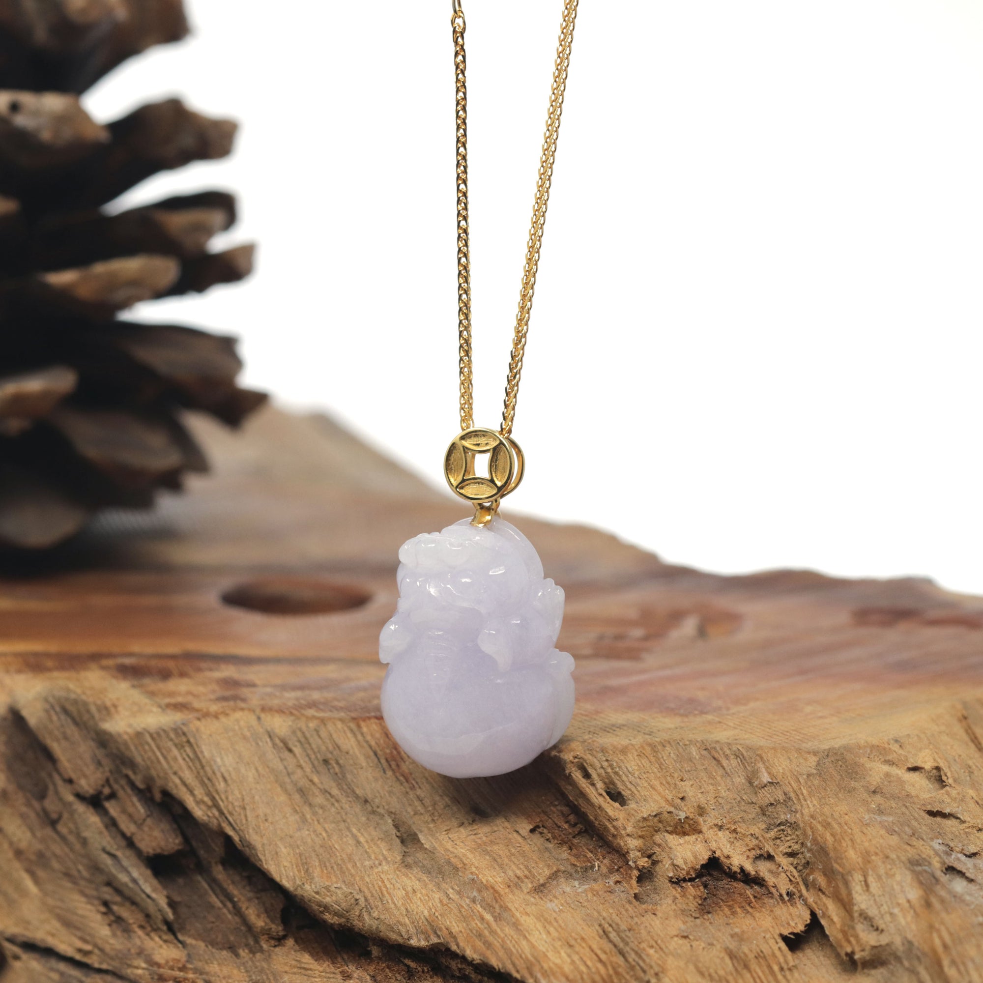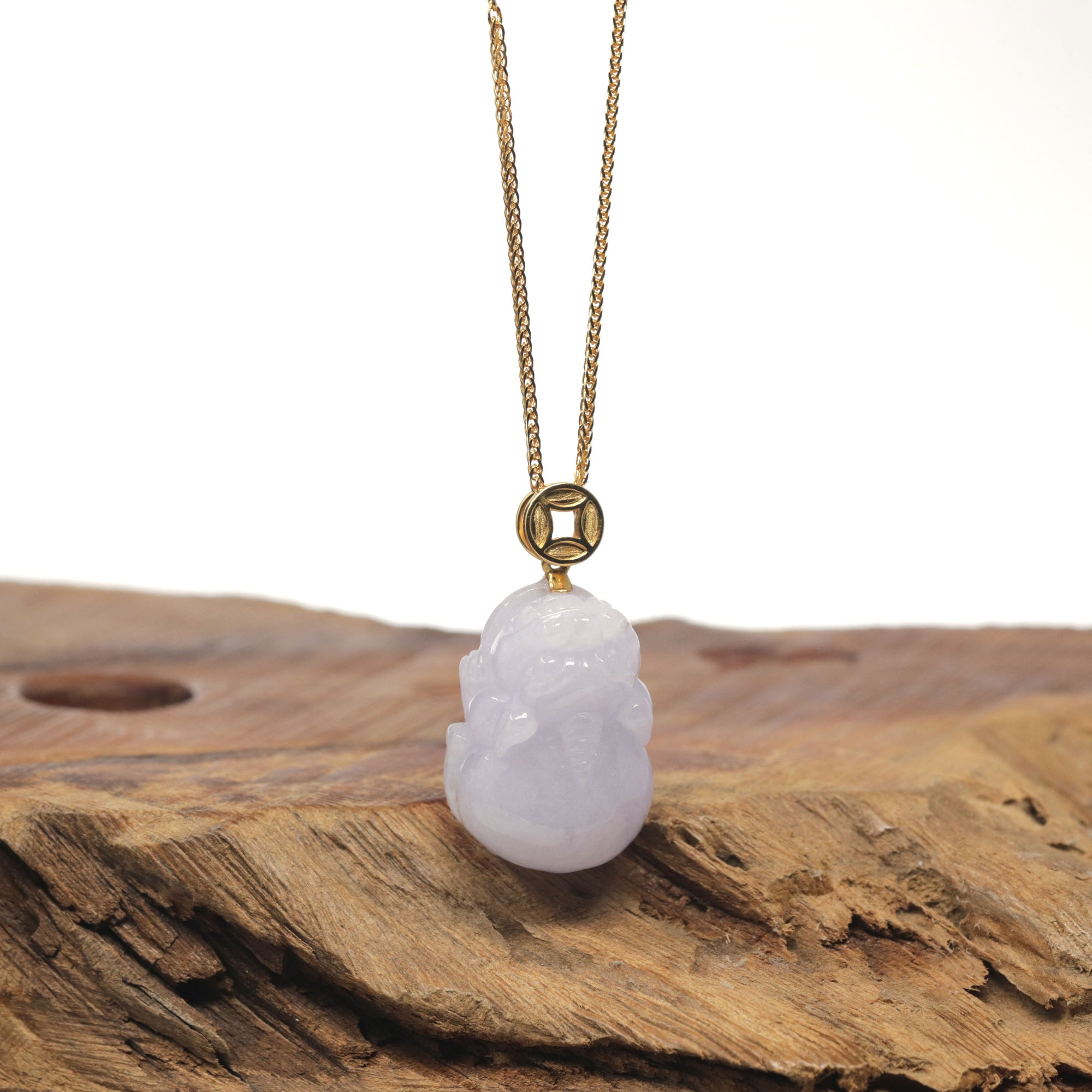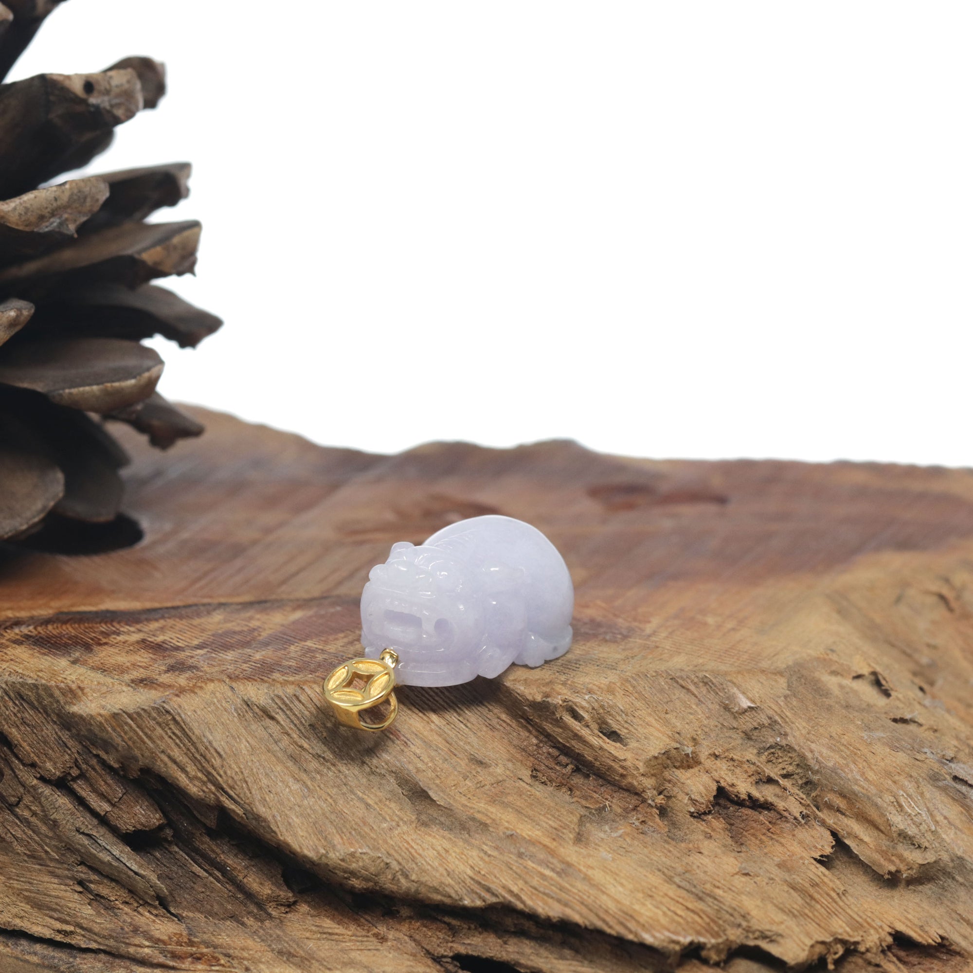 Baikalla Lavender "PiXiu" (Fortune Beast) Jadeite Jade Pendant W/ 18K Yellow Gold Bail