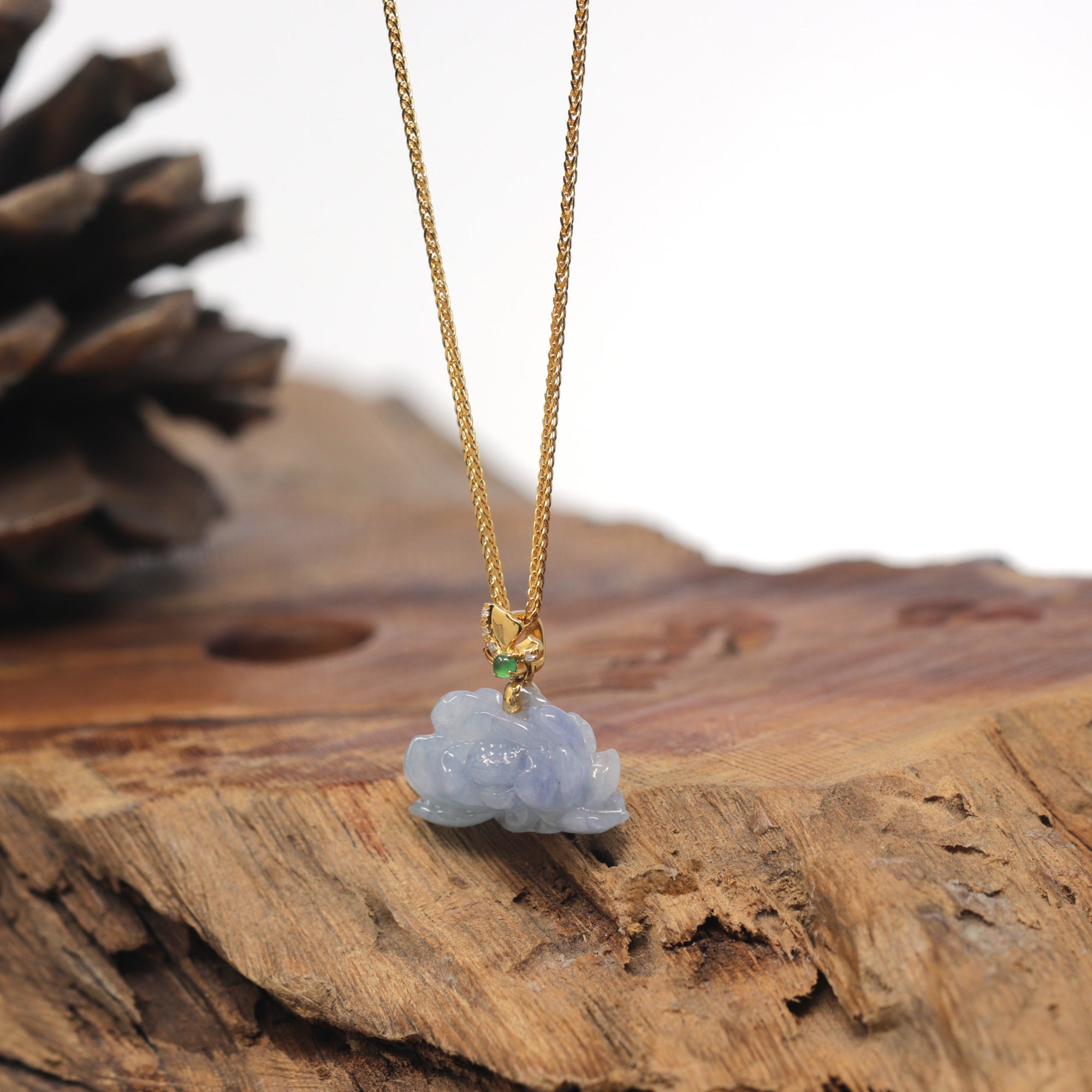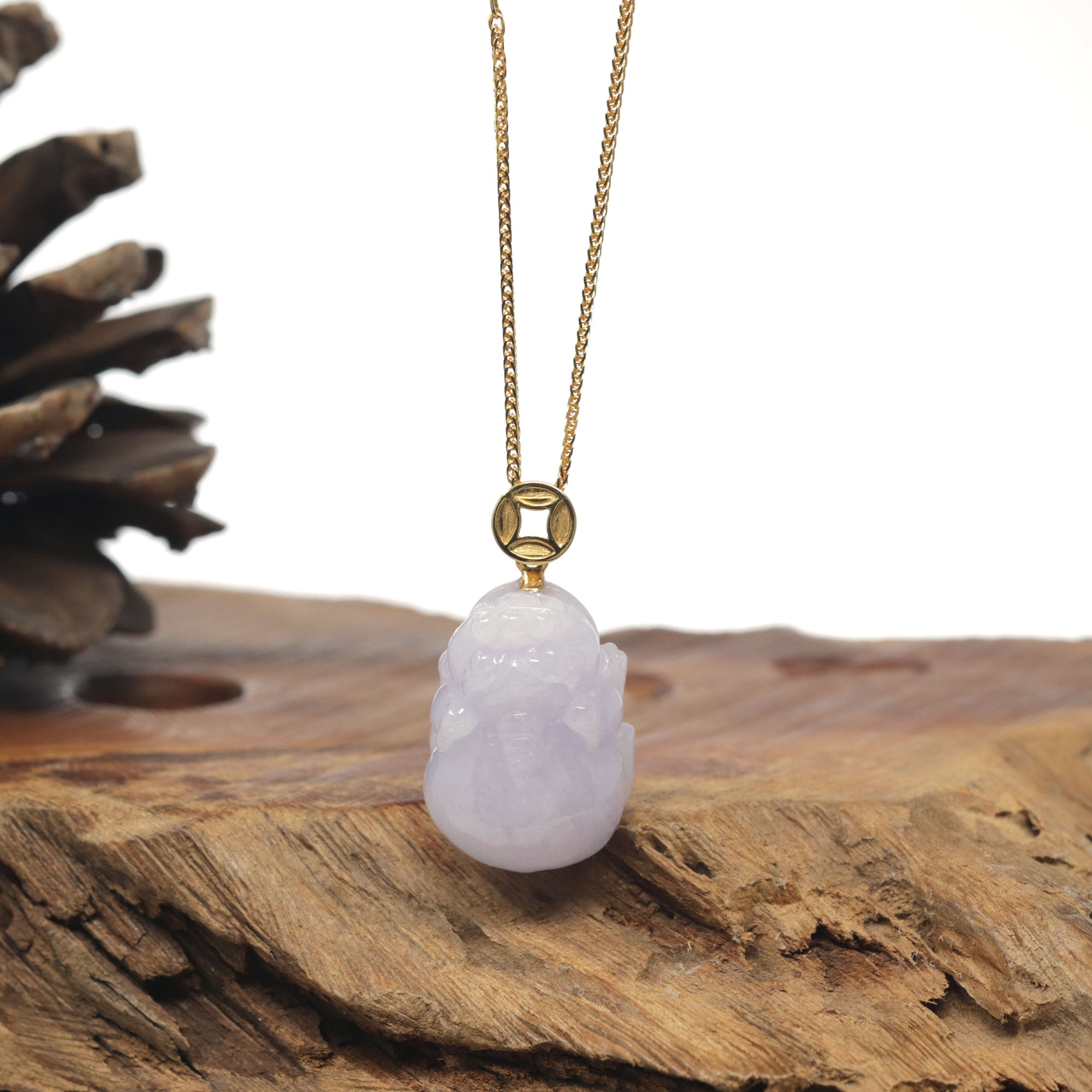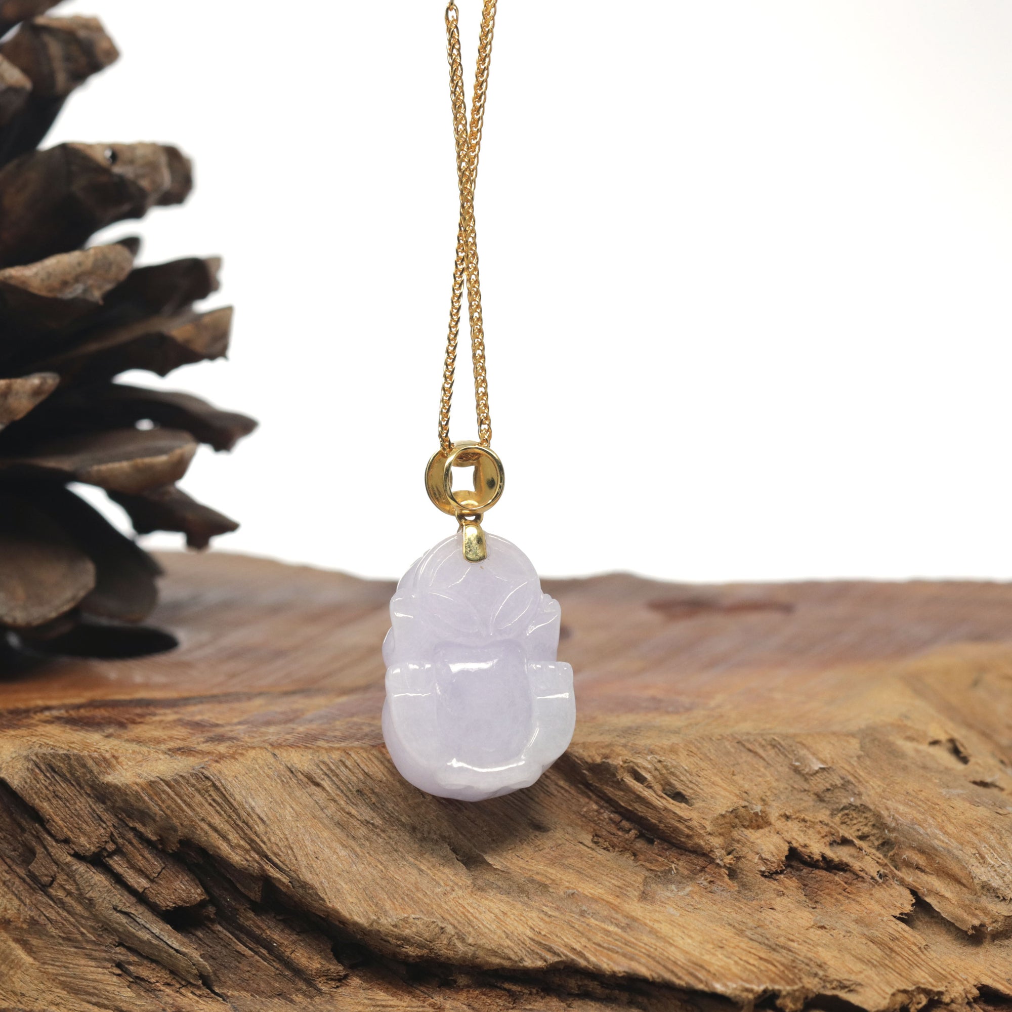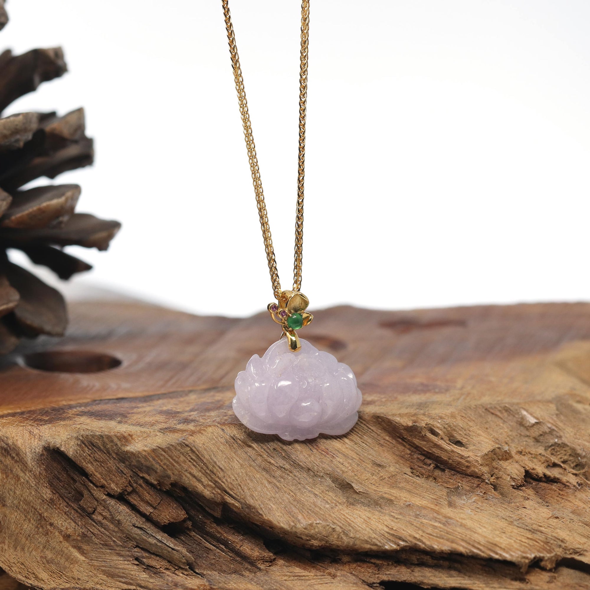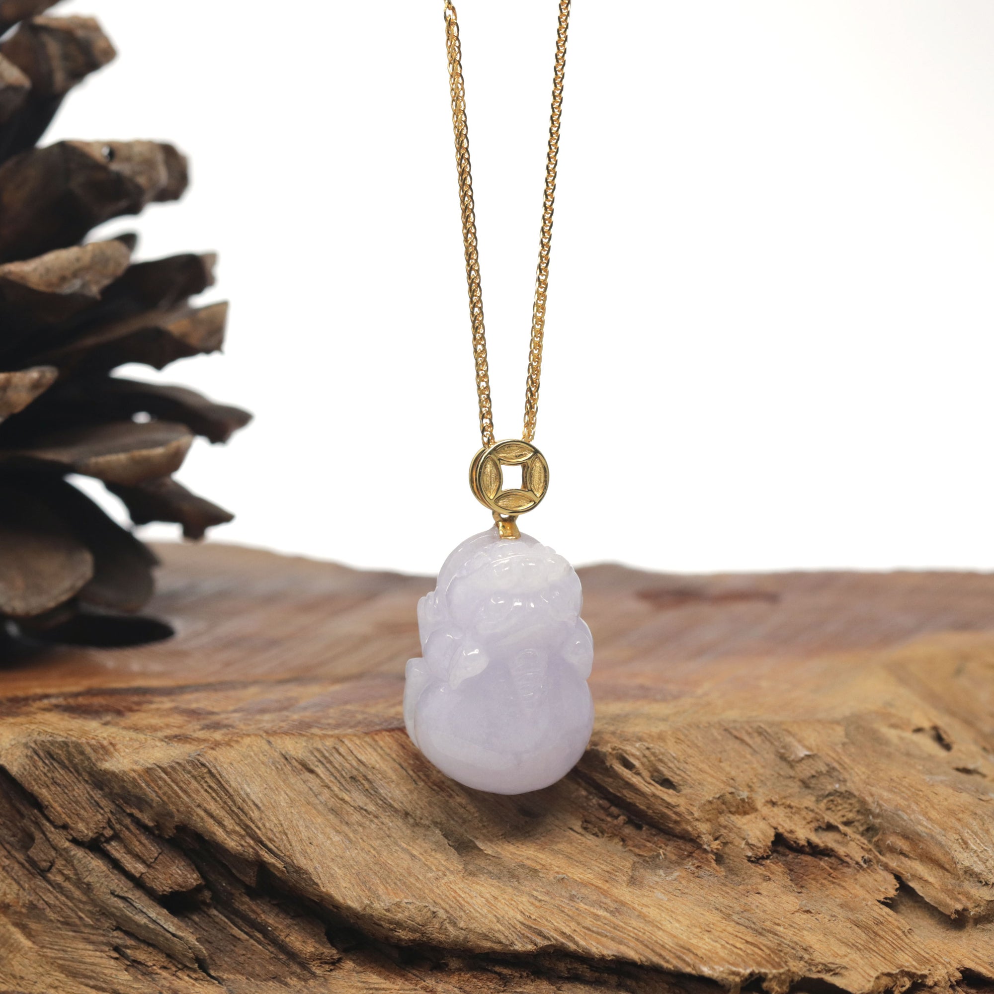 Baikalla Lavender "PiXiu" (Fortune Beast) Jadeite Jade Pendant W/ 18K Yellow Gold Bail